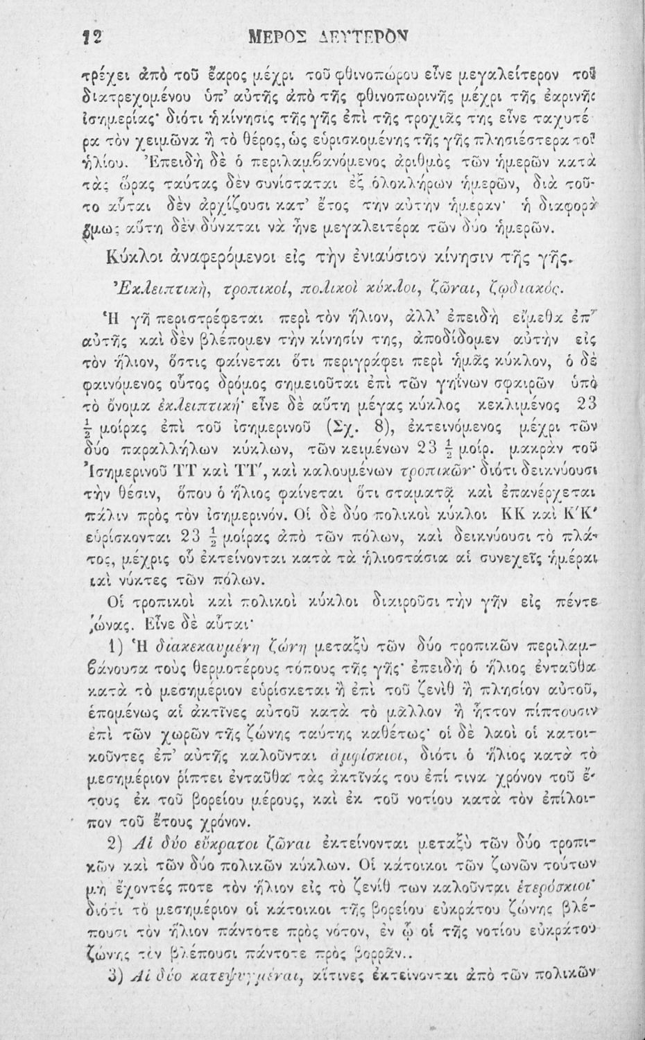 Σχολικό εγχειρίδιο Γεωγραφίας για τα Ελληνικά Σχολεία που περιλαμβάνει εισαγωγή στις βασικές έννοιες και ορισμούς της επιστήμης, και στοιχεία μαθηματικής, φυσικής και πολιτικής γεωγραφίας των πέντε ηπείρων.