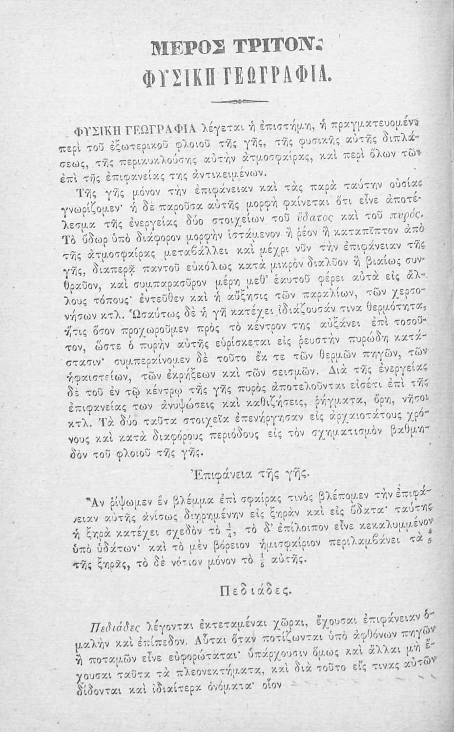 Τίτλος: Στοιχειώδης γεωγραφία πολιτική, μαθηματική και φυσική προς χρήσιν της εν τοις ελληνικοίς σχολείοις σπουδαζούσης νεολαίας