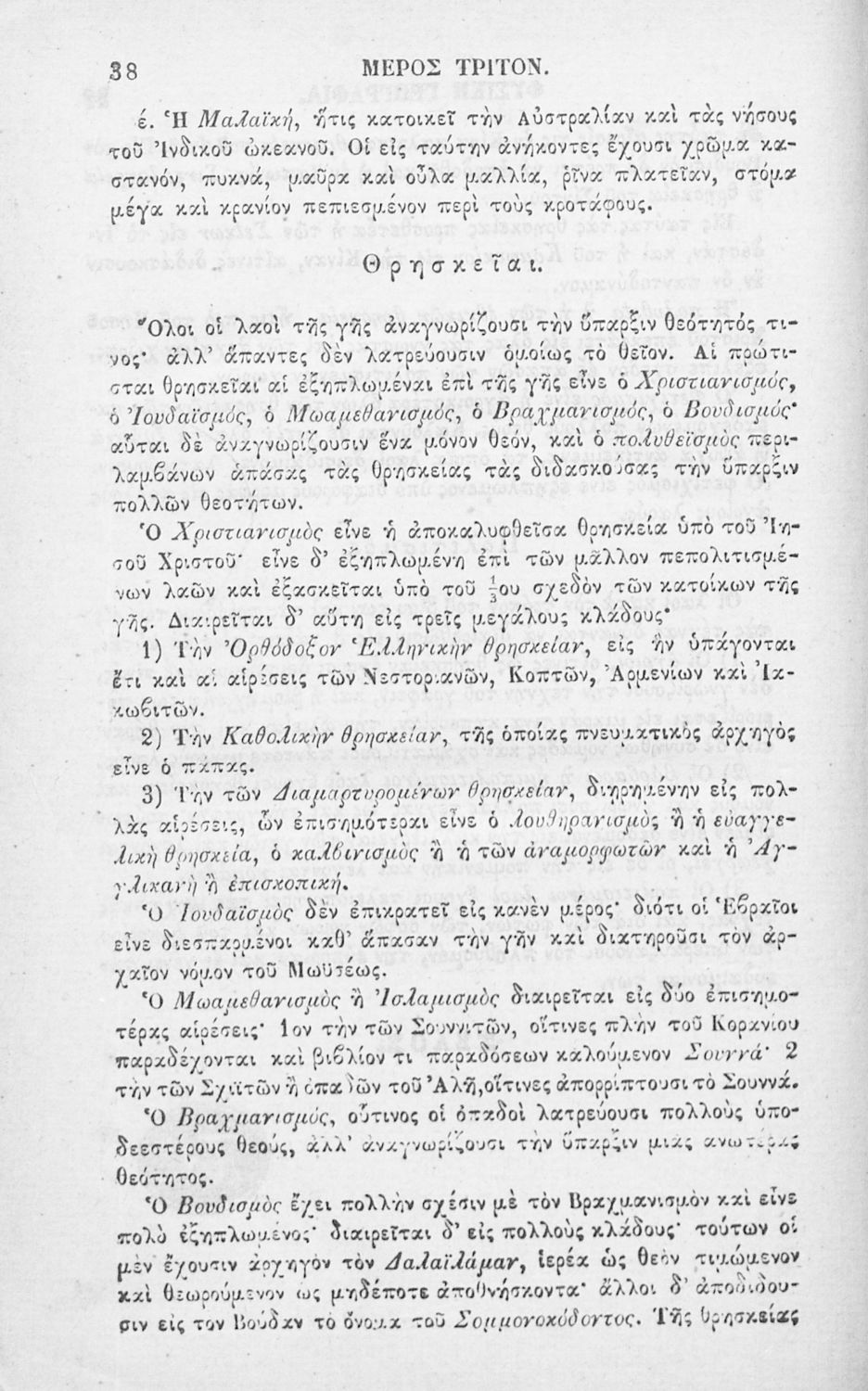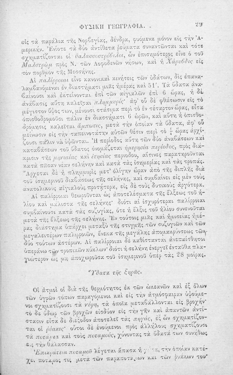 Σχολικό εγχειρίδιο Γεωγραφίας για τα Ελληνικά Σχολεία που περιλαμβάνει εισαγωγή στις βασικές έννοιες και ορισμούς της επιστήμης, και στοιχεία μαθηματικής, φυσικής και πολιτικής γεωγραφίας των πέντε ηπείρων.