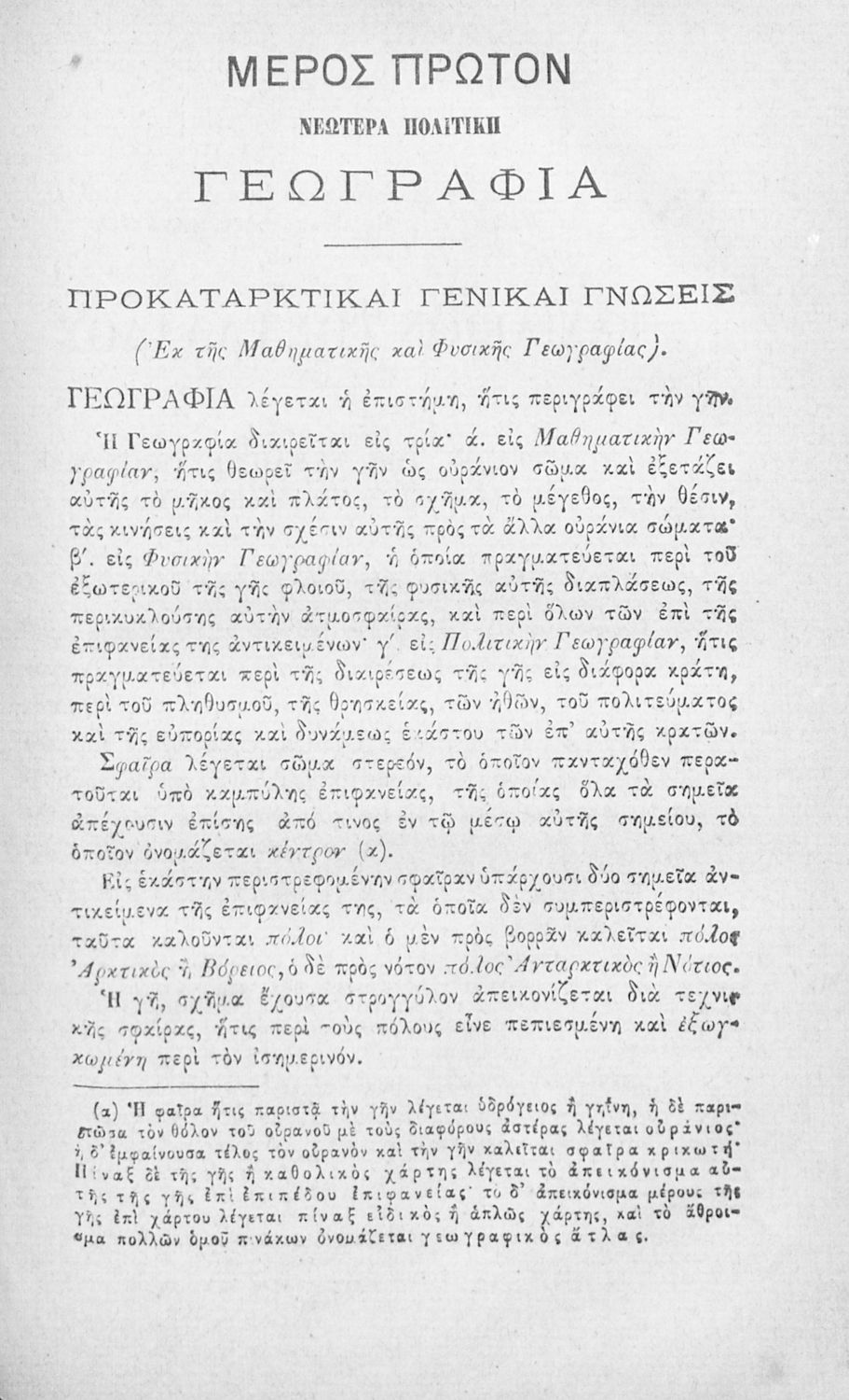 Στοιχειώδης γεωγραφία πολιτική, μαθηματική και φυσική προς χρήσιν της εν τοις ελληνικοίς σχολείοις σπουδαζούσης νεολαίας