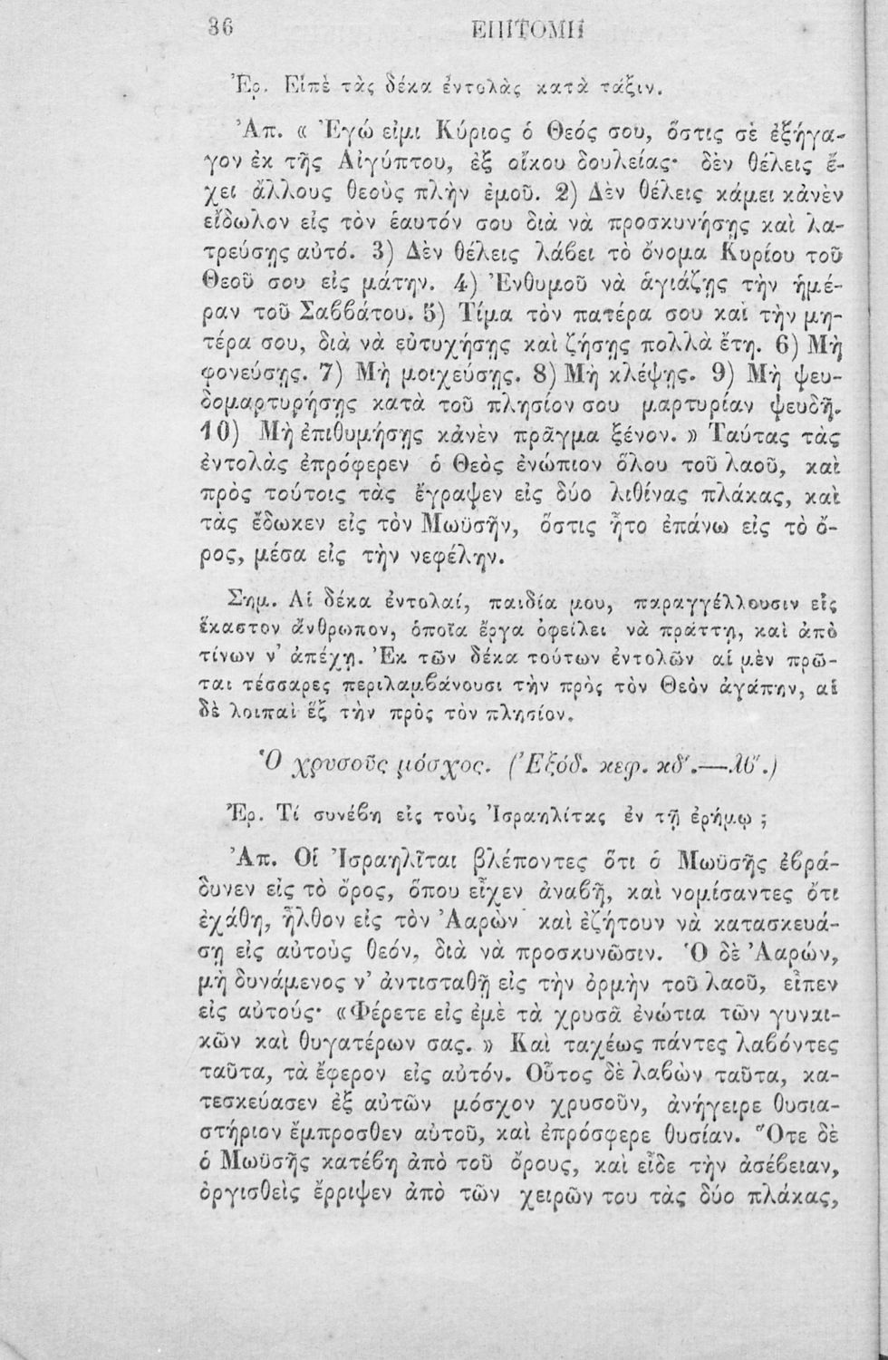 Τίτλος: Επιτομή της Παλαιάς και Νέας Διαθήκης εκ διαφόρων θείων γραφών ερανισθείσα. Προς χρήσιν των Δημοτικών Σχολείων