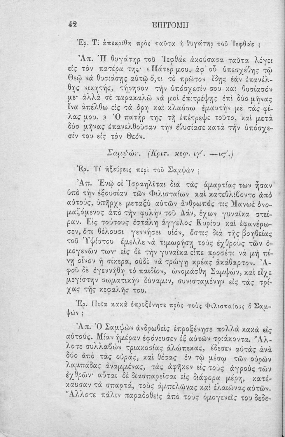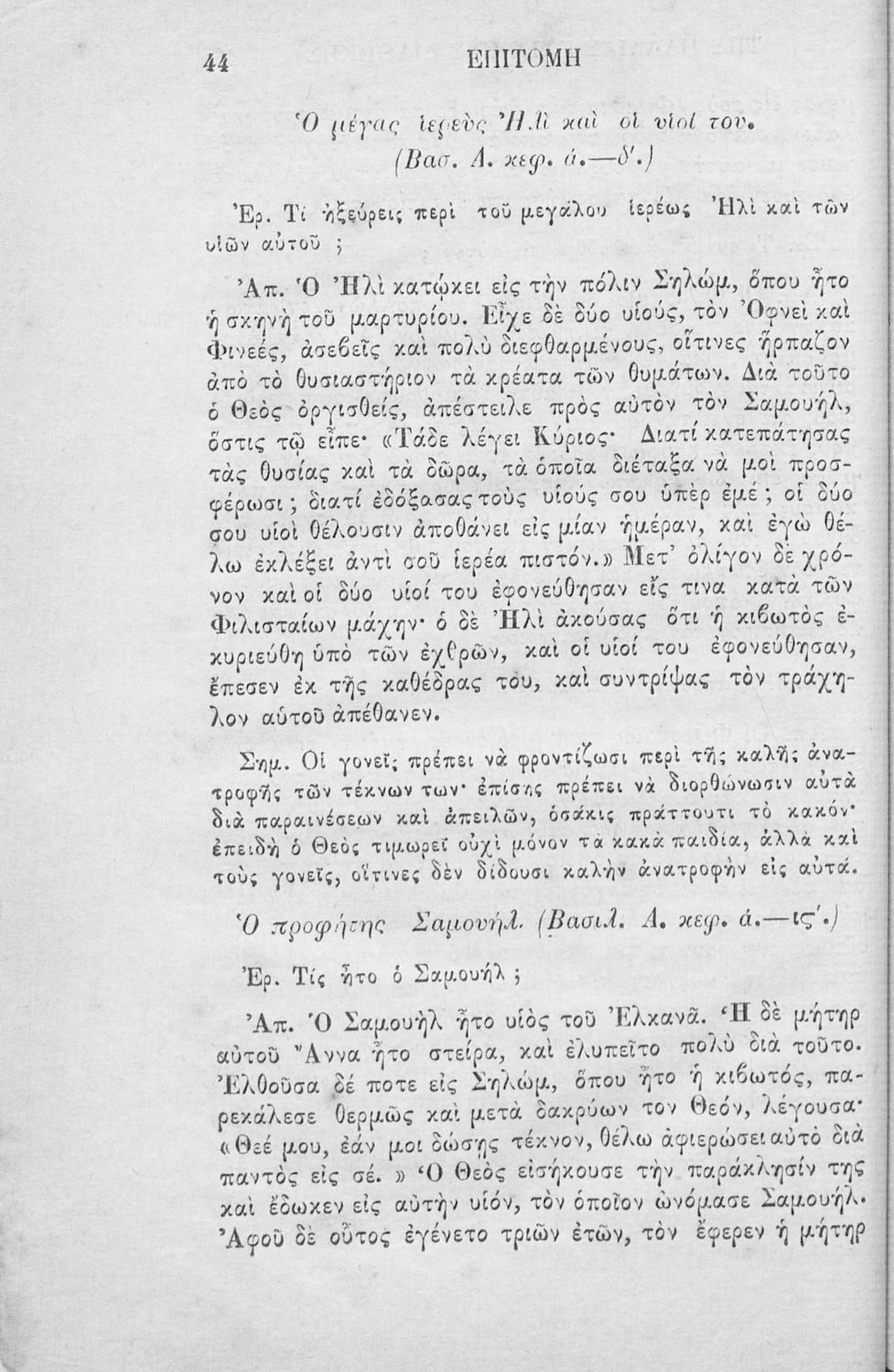 Επιτομή της Παλαιάς και Νέας Διαθήκης εκ διαφόρων θείων γραφών ερανισθείσα. Προς χρήσιν των Δημοτικών Σχολείων