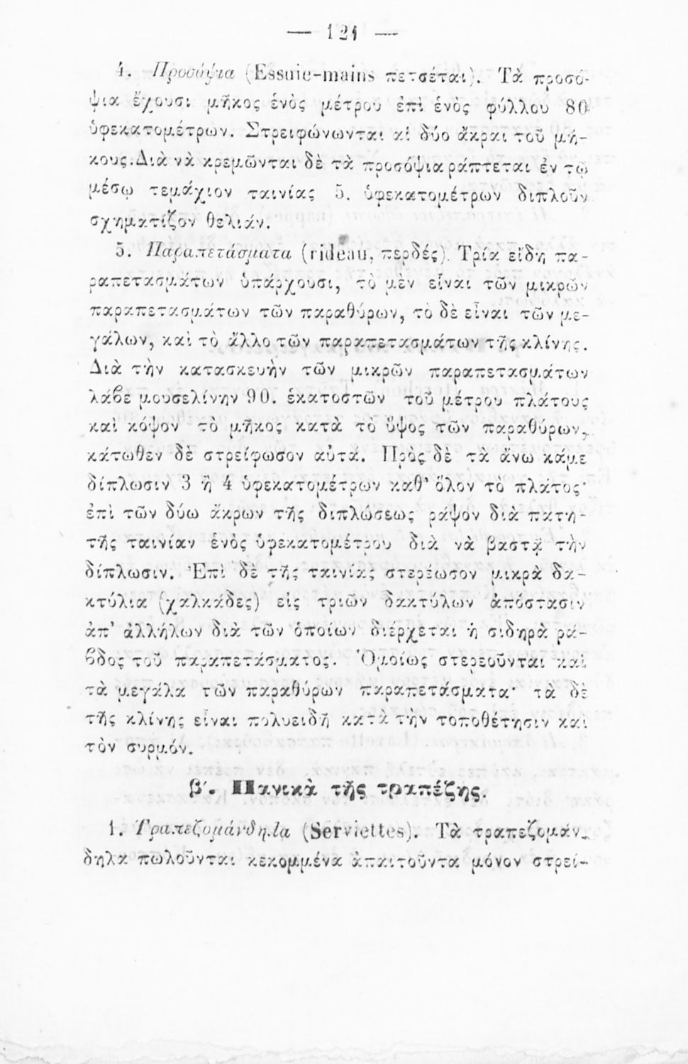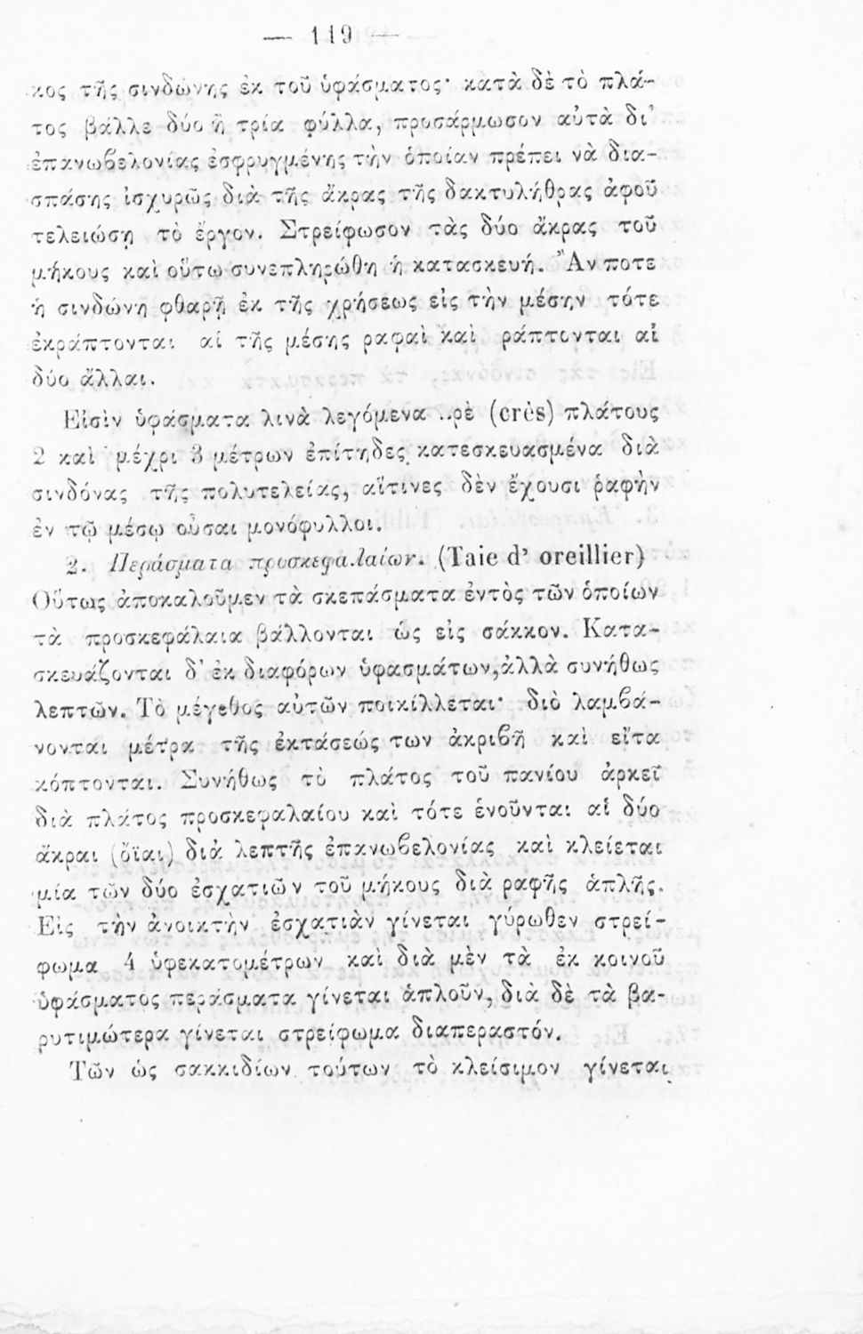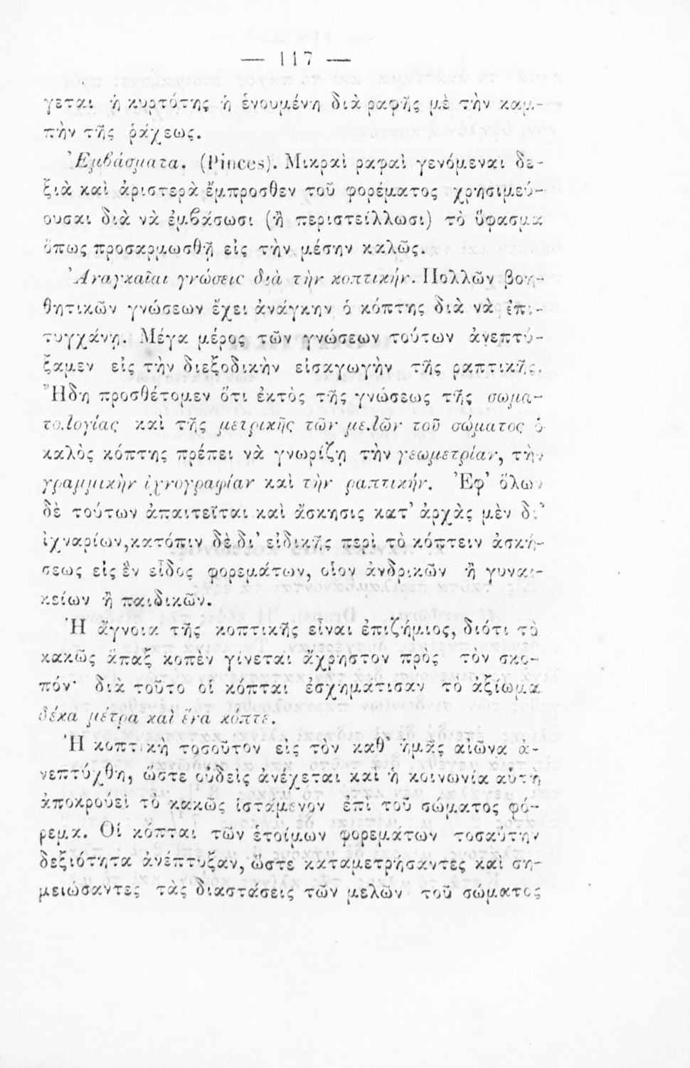 Σχολικό εγχειρίδιο Ραπτικής για τα Δημοτικά Παρθεναγωγεία που παρουσιάζει τα σύνεργα και τους τρόπους ραψίματος.
