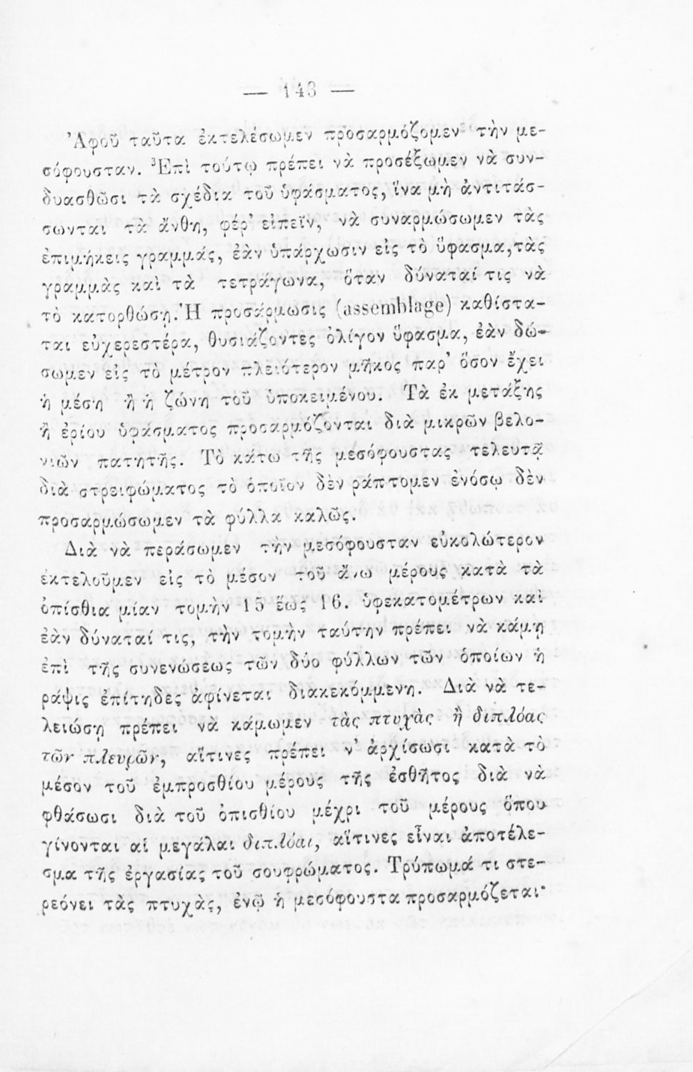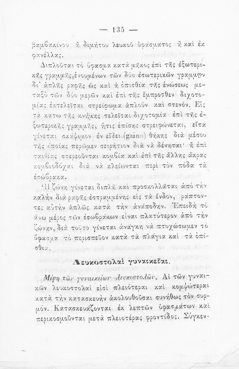 Σχολικό εγχειρίδιο Ραπτικής για τα Δημοτικά Παρθεναγωγεία που παρουσιάζει τα σύνεργα και τους τρόπους ραψίματος.