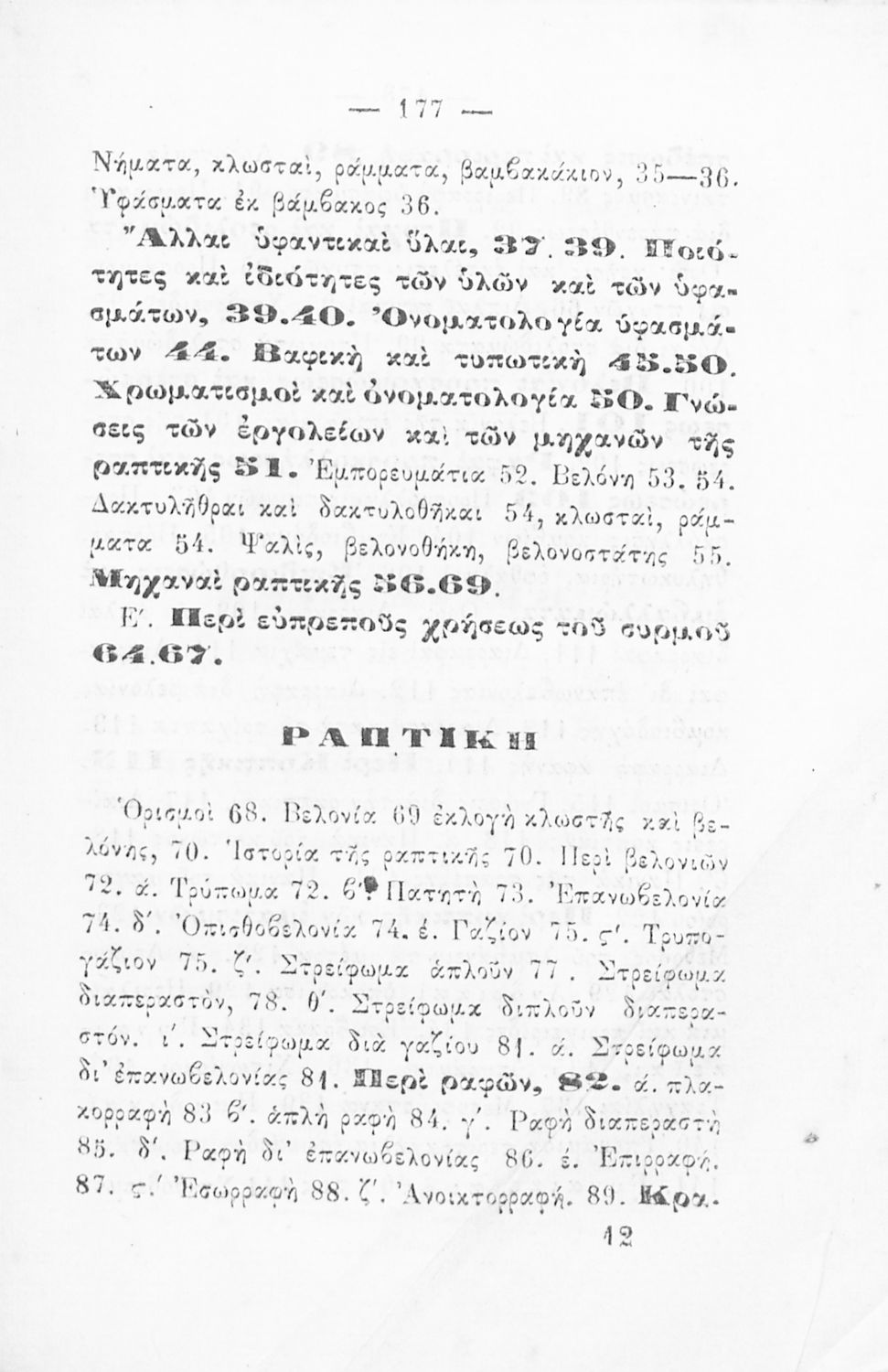 Σχολικό εγχειρίδιο Ραπτικής για τα Δημοτικά Παρθεναγωγεία που παρουσιάζει τα σύνεργα και τους τρόπους ραψίματος.