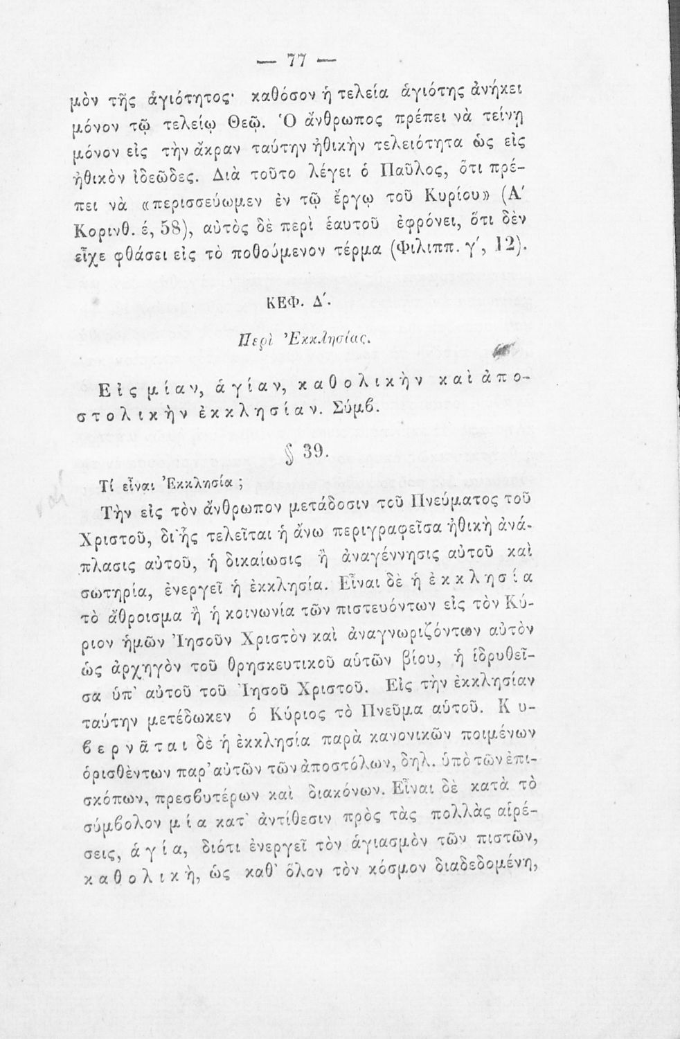 Σχολικό εγχειρίδιο Θρησκευτικών για τα Ελληνικά Σχολεία και Παρθεναγωγεία που εστιάζει σε θέματα χριστιανικής ηθικής και σε δογματικά και ηθικά ζητήματα της ορθόδοξης κατήχησης.