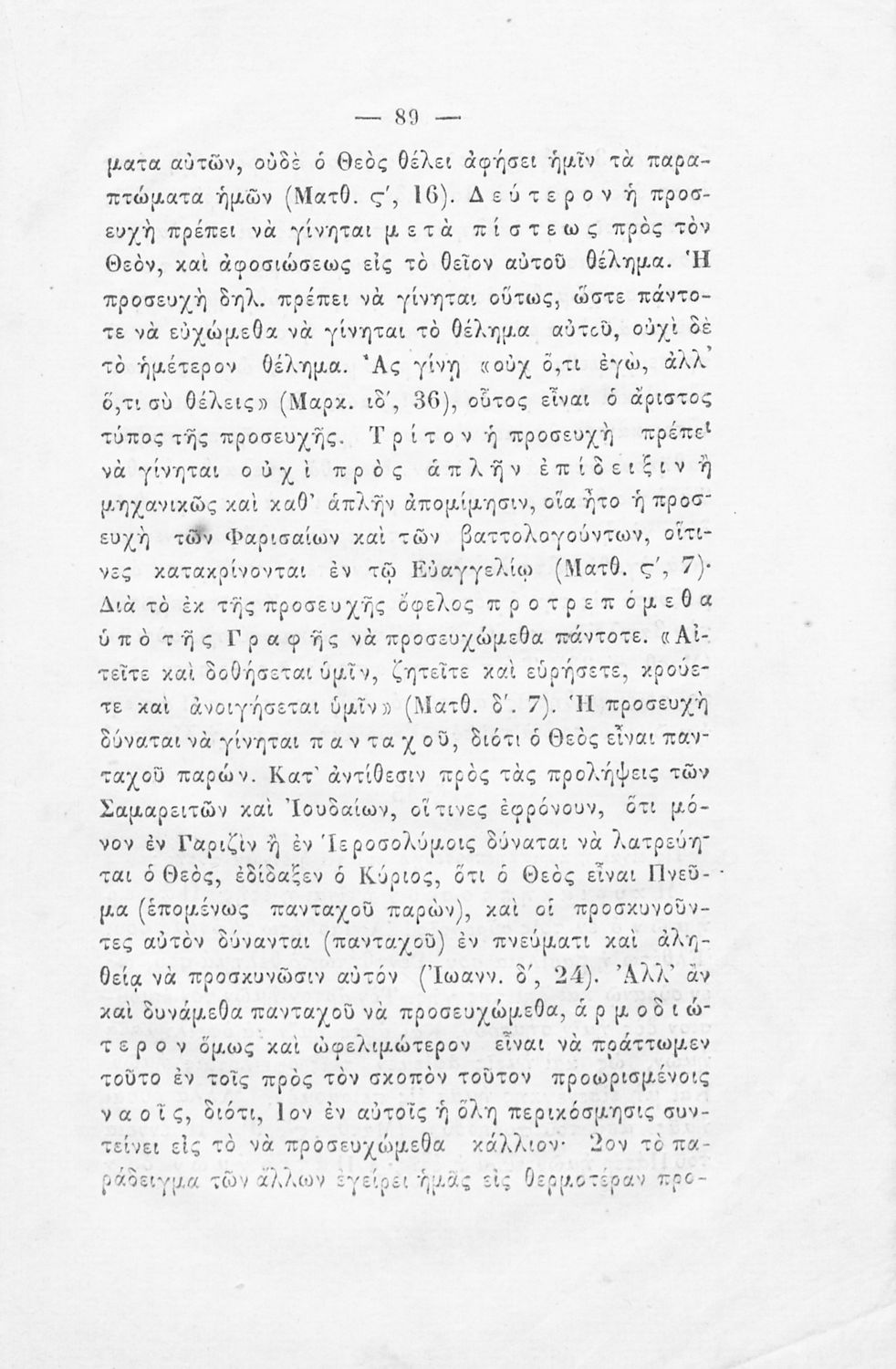 Βαθμίδα εκπαίδευσης: Δευτεροβάθμια Τάξη: Παρθεναγωγείο Μάθημα: Θρησκευτικά Γλώσσα: Καθαρεύουσα Παρουσίαση περιεχομένου: Σχολικό εγχειρίδιο Θρησκευτικών για τα Ανώτερα Παρθεναγωγεία που περιλαμβάνει εισαγωγή στην Παλαιά και Καινή Διαθήκη και παρουσιάζει ζητήματα χριστιανικής κατήχησης και ηθικής με έμφαση στα μυστήρια και τις δέκα εντολές. |