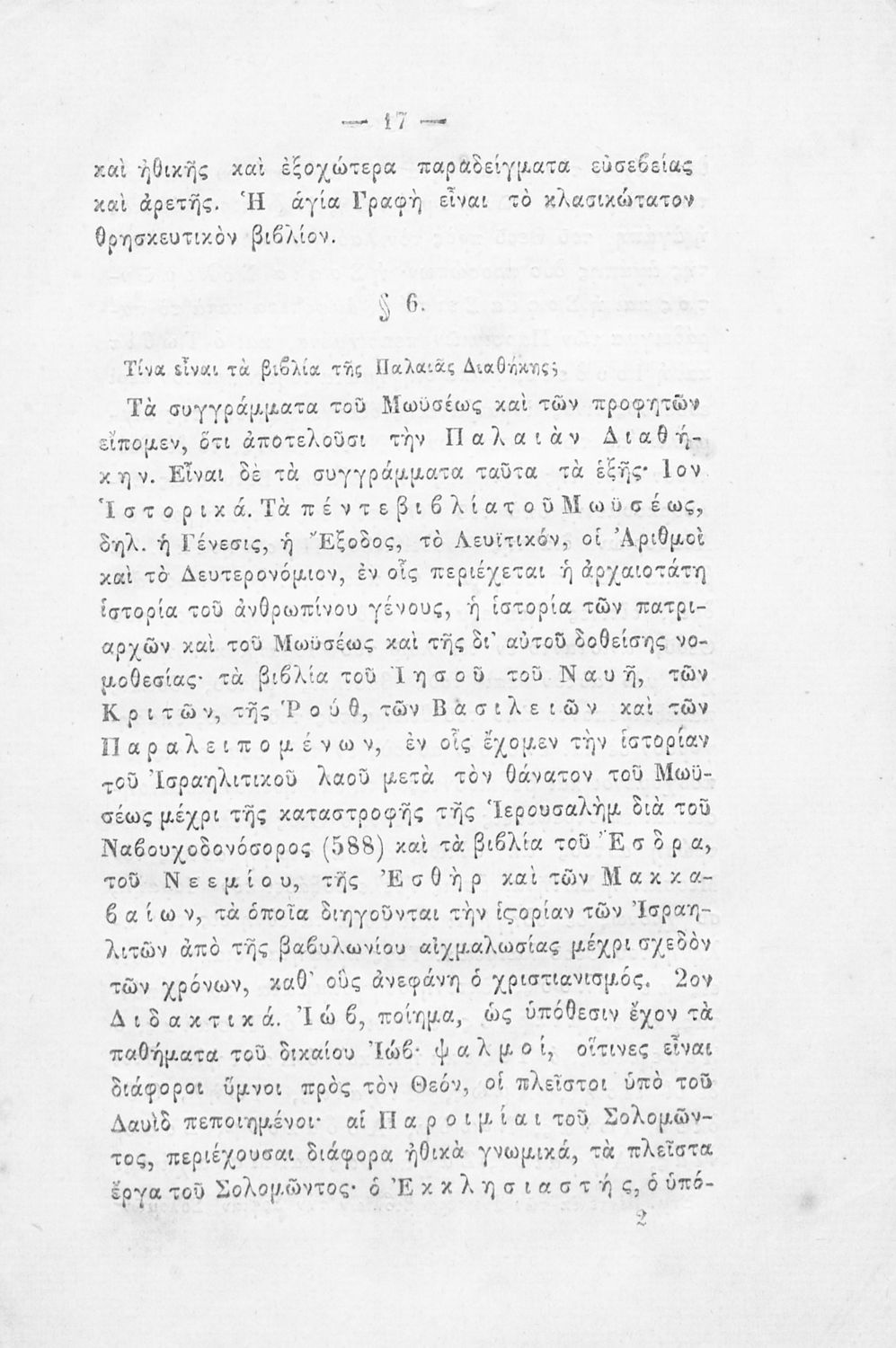520 ## _aΣχολικό εγχειρίδιο Θρησκευτικών για τα Ανώτερα Παρθεναγωγεία που περιλαμβάνει εισαγωγή στην Παλαιά και Καινή Διαθήκη και παρουσιάζει ζητήματα χριστιανικής κατήχησης και ηθικής με έμφαση στα μυστήρια και τις δέκα εντολές.