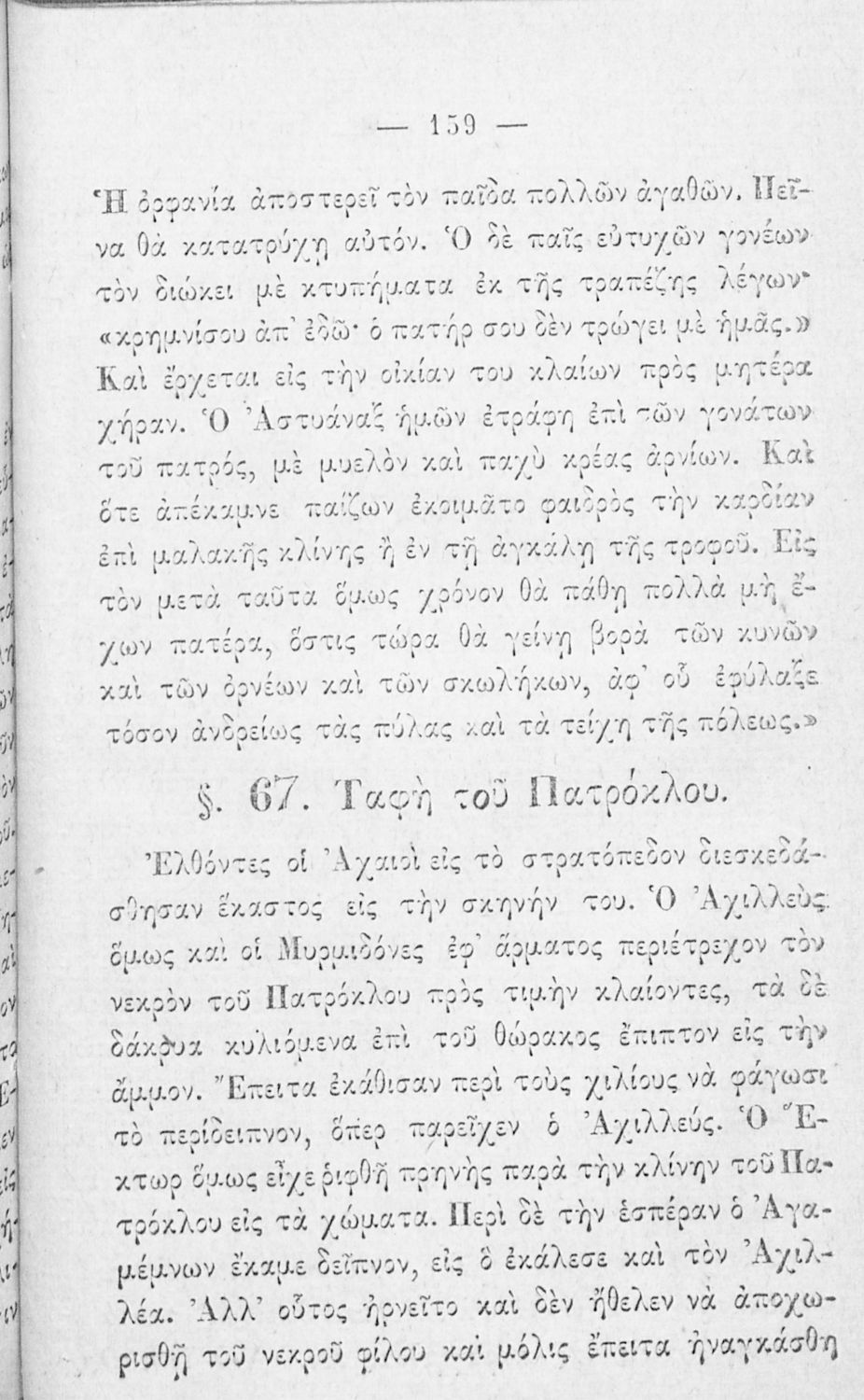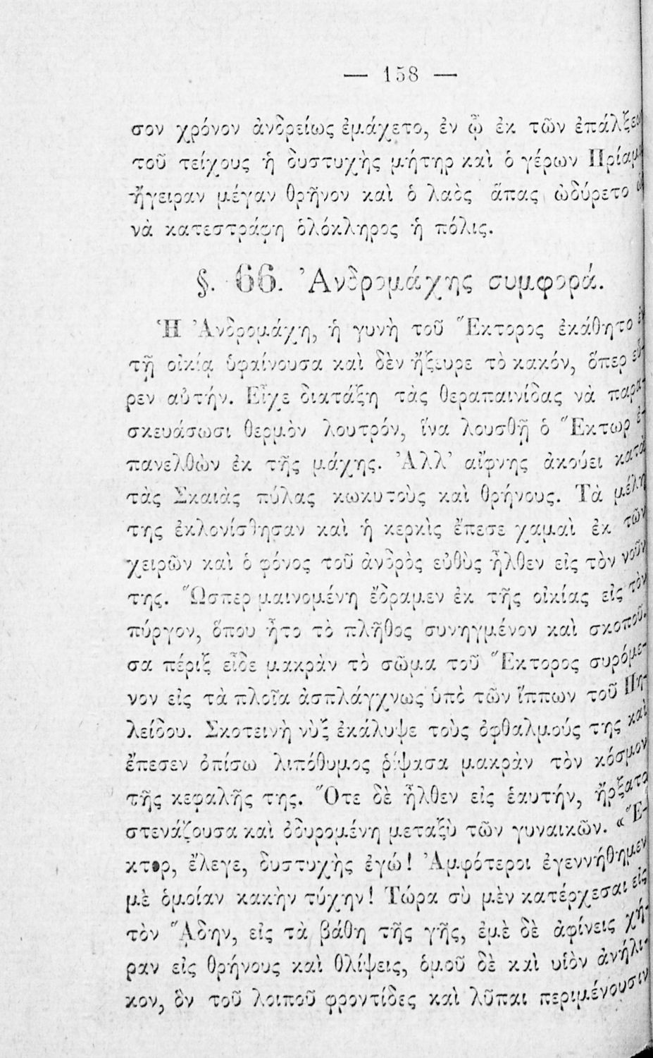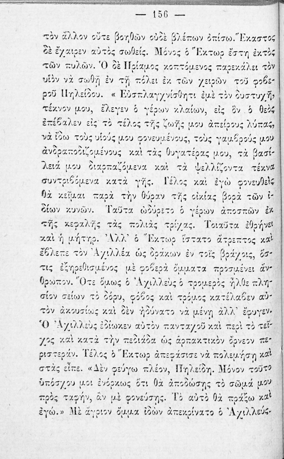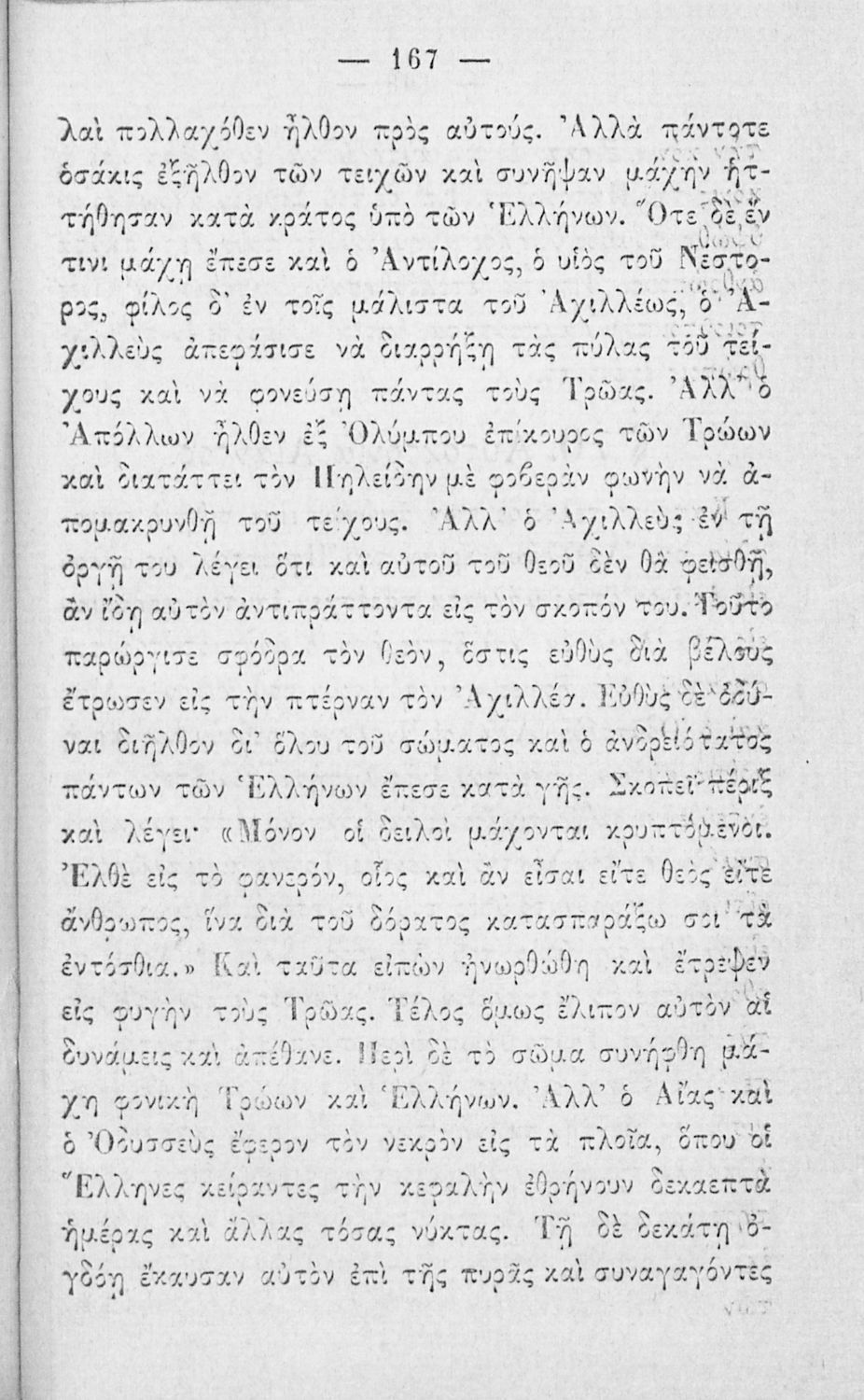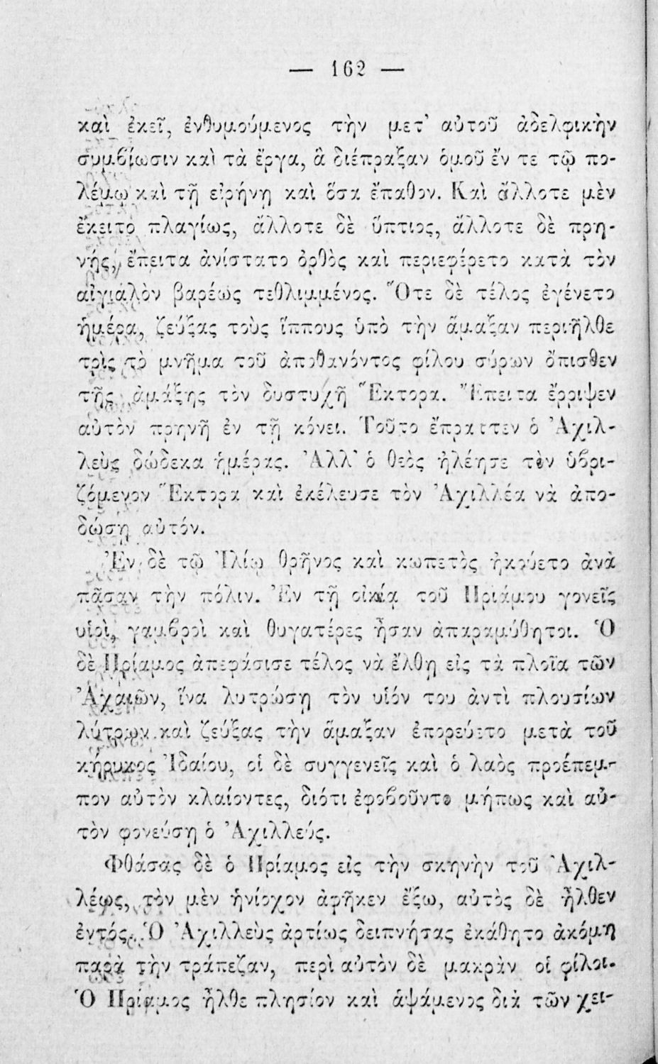 Αναγνωστικό Δημοτικού που περιλαμβάνει διηγήματα εμπνευσμένα από τον Τρωικό Πόλεμο και αποσκοπεί να διδάξει στους ελληνόπαιδες "ότι προς ταις αρεταίς της ειρήνης υπάρχουσι και αρεταίς του πολέμου, η αρετή της ...