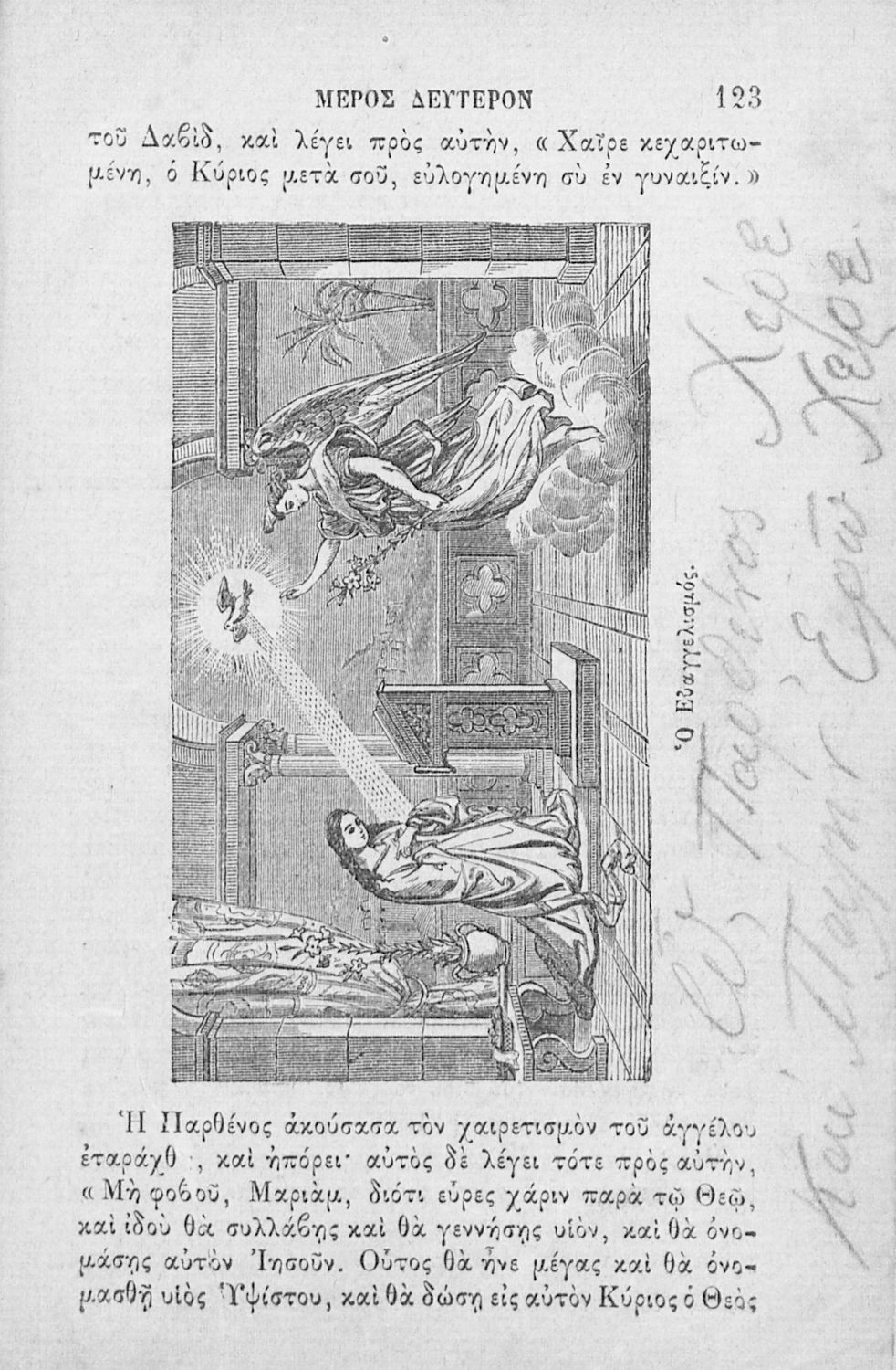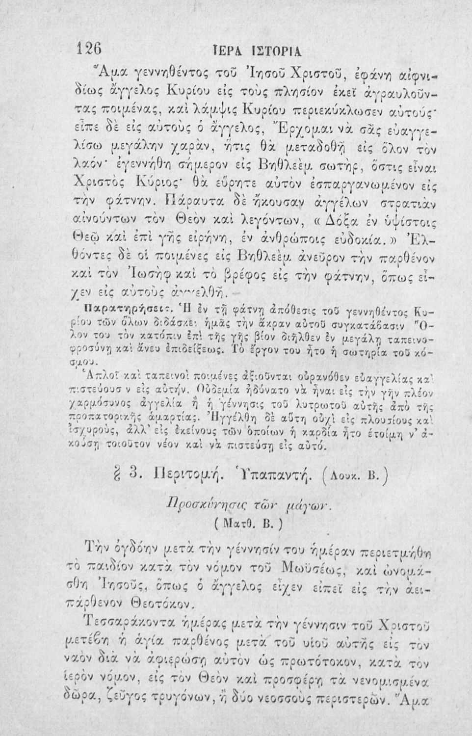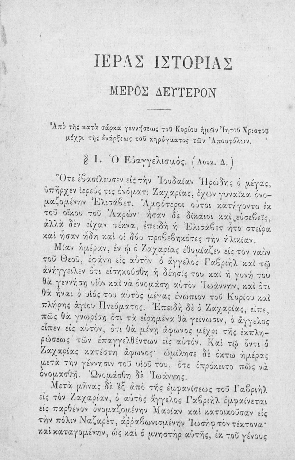 Σχολικό εγχειρίδιο Θρησκευτικών για τα Ελληνικά Σχολεία και Παρθεναγωγεία που συνιστά μία εξιστόρηση της Καινής Διαθήκης από τη γέννηση της Θεοτόκου ως την ανάληψη του Χριστού και τη δράση των Αποστόλων.