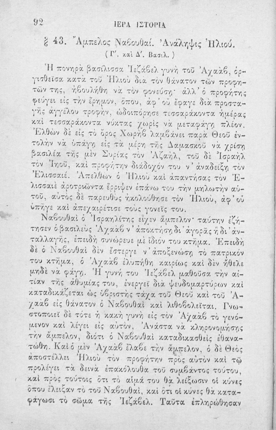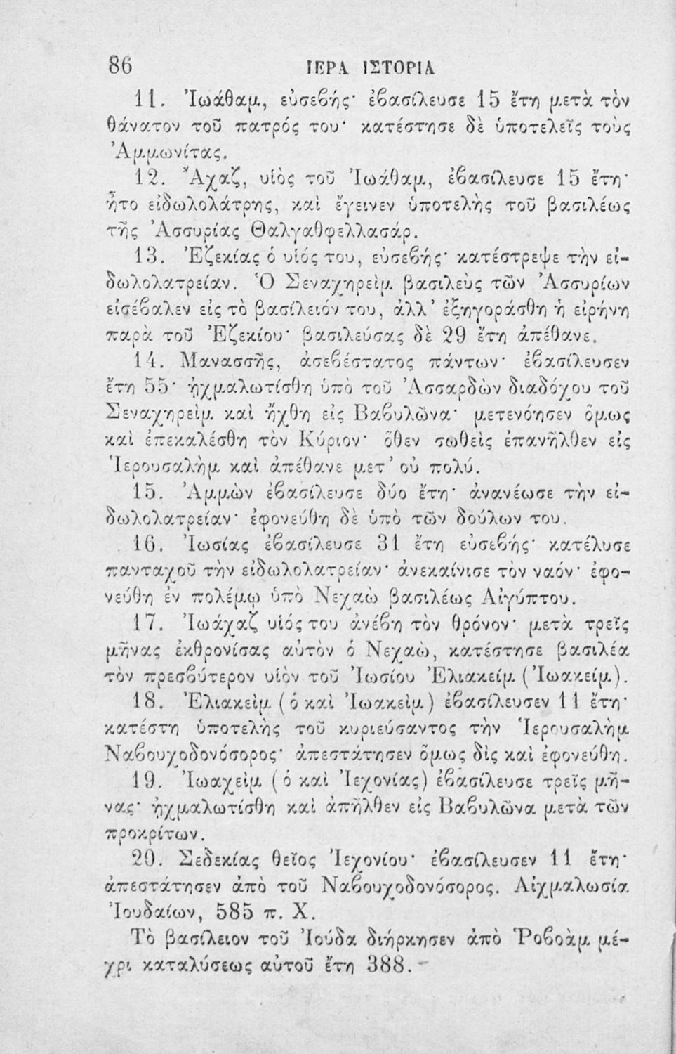 Ιερά ιστορία κατ' επιτομήν συναρμολογηθείσα προς διδασκαλίαν των μαθητών των Ελληνικών Σχολείων
