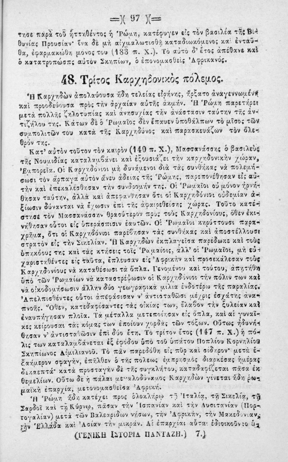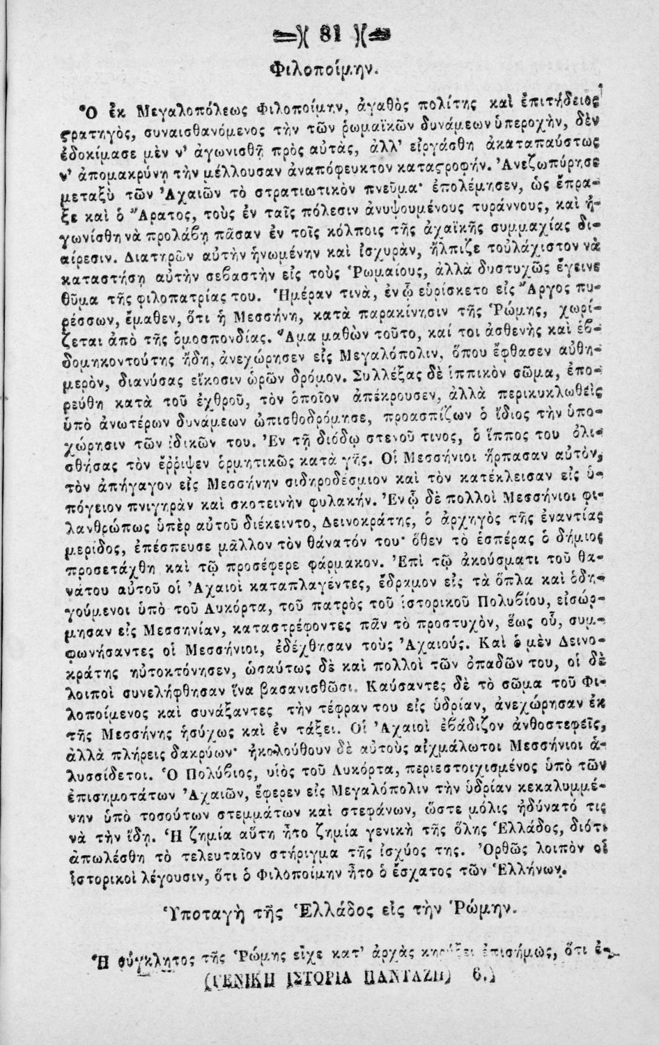 Κωδικός αναγνώρισης: 02-02644 Τίτλος: Σύνοψις γενικής ιστορίας εκτενεστέραν την ελληνικήν περιέχουσα συναρμολογηθείσα προς χρήσιν των μαθητών των Ελληνικών Σχολείων Συγγραφέας: Δ. Πανταζής Μέγεθος και υπόστρωμα: Σχολικό εγχειρίδιο, σκληρό εξώφυλλο, 168 σελίδες. Σκίτσα (ασπρόμαυρα), χάρτες (ασπρόμαυροι). |