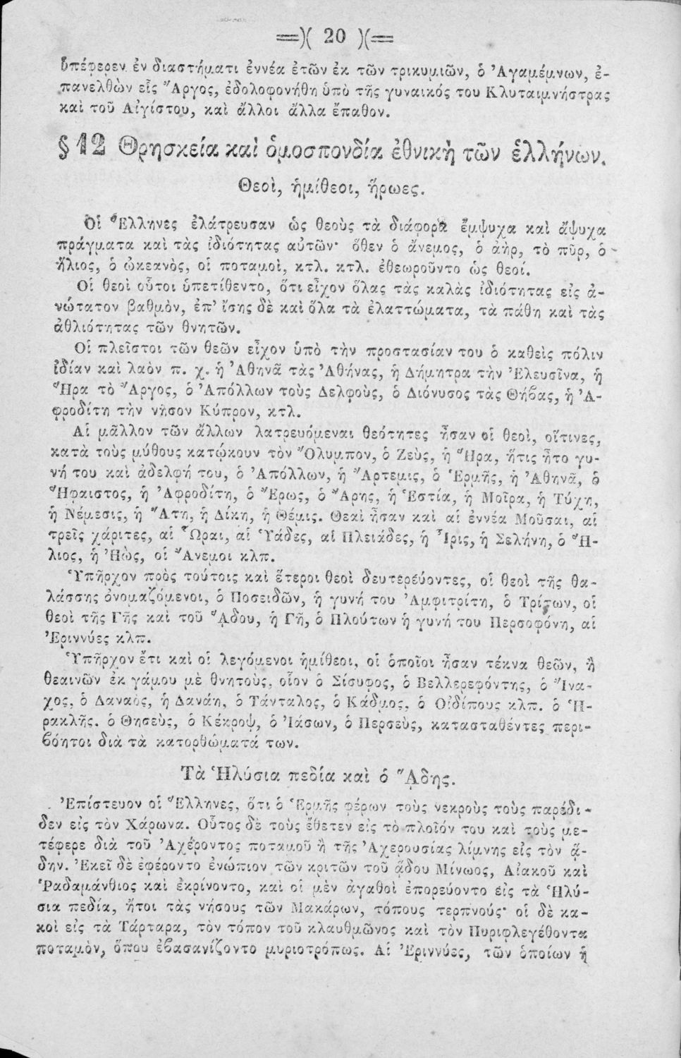 520 ## _aΣχολικό εγχειρίδιο για τις τάξεις του Ελληνικού για το μάθημα της Ιστορίας. Το εγχειρίδιο περιλαμβάνει εισαγωγικά τον ορισμό της γενικής ιστορίας και συνεχίζει την καταγραφή και παρουσίαση των γεγονότων με την ιστορία των αρχαίων ανατολικών λαών, την εμφάνιση των πρώτων Ελλήνων, την ιστορία των μυθικών χρόνων, τους Τρωικούς και Περσικούς πολέμους, την ακμή και αίγλη της Αθήνας του Περικλή, την ηγεμονία της Σπάρτης και της Θήβας, την Μακεδονική Ηγεμονία του Φιλίππου και την συνέχεια του Αλεξάνδρου και των διαδόχων, την υποταγή των Ελλήνων στους Ρωμαίους και συνεχίζει συνοπτικά με την ιστορία της Ευρώπης μέχρι και την Γαλλική και Ελληνική Επανάσταση.