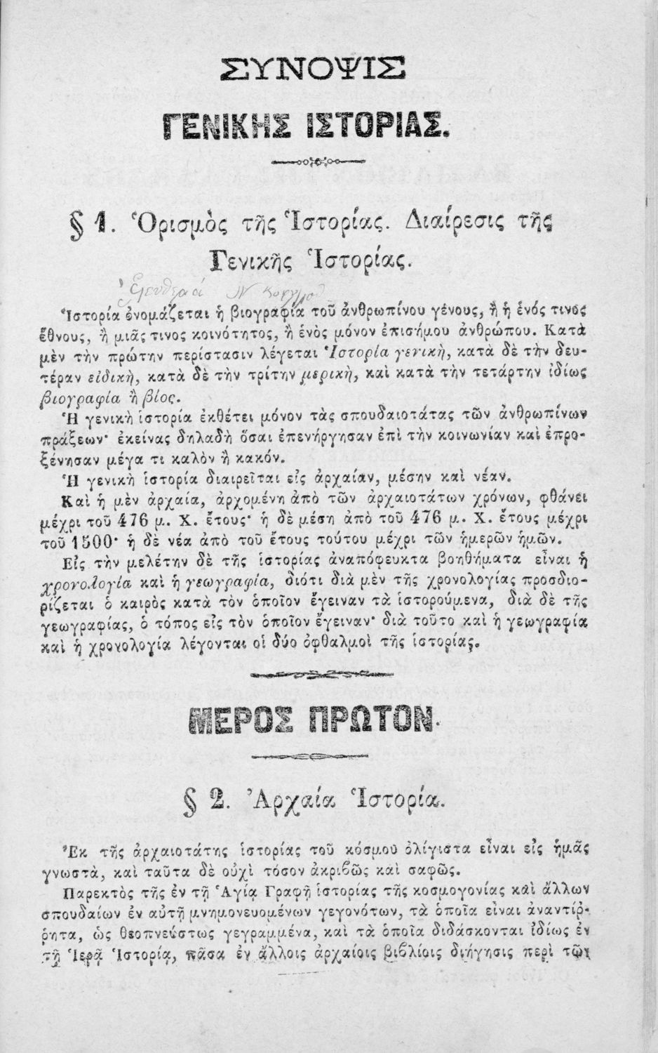 245 0# _aΣύνοψις γενικής ιστορίας εκτενεστέραν την ελληνικήν περιέχουσα συναρμολογηθείσα προς χρήσιν των μαθητών των Ελληνικών Σχολείων