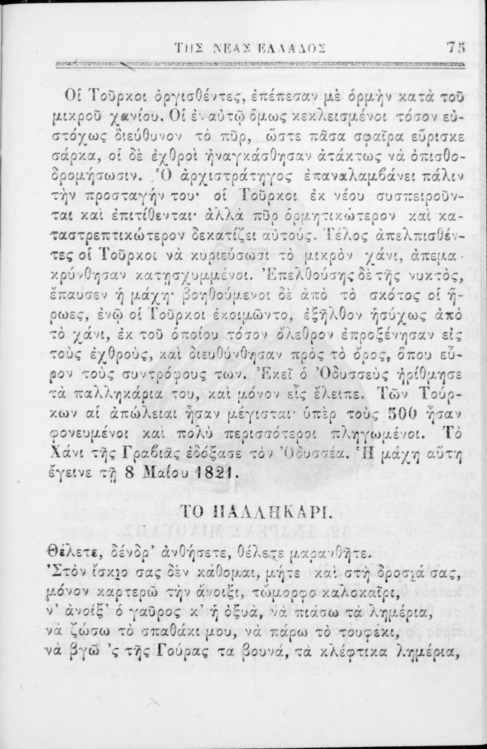 Παρουσίαση περιεχομένου: Μαθητικό βοήθημα Ιστορίας για τα Δημοτικά και Παρθεναγωγεία που αναφέρεται στη ζωή, τη δράση και τον ηρωικό αγώνα των Ελλήνων της Επανάστασης του 1821. Περιέχει εικόνες των ηρώων και τραγούδια.