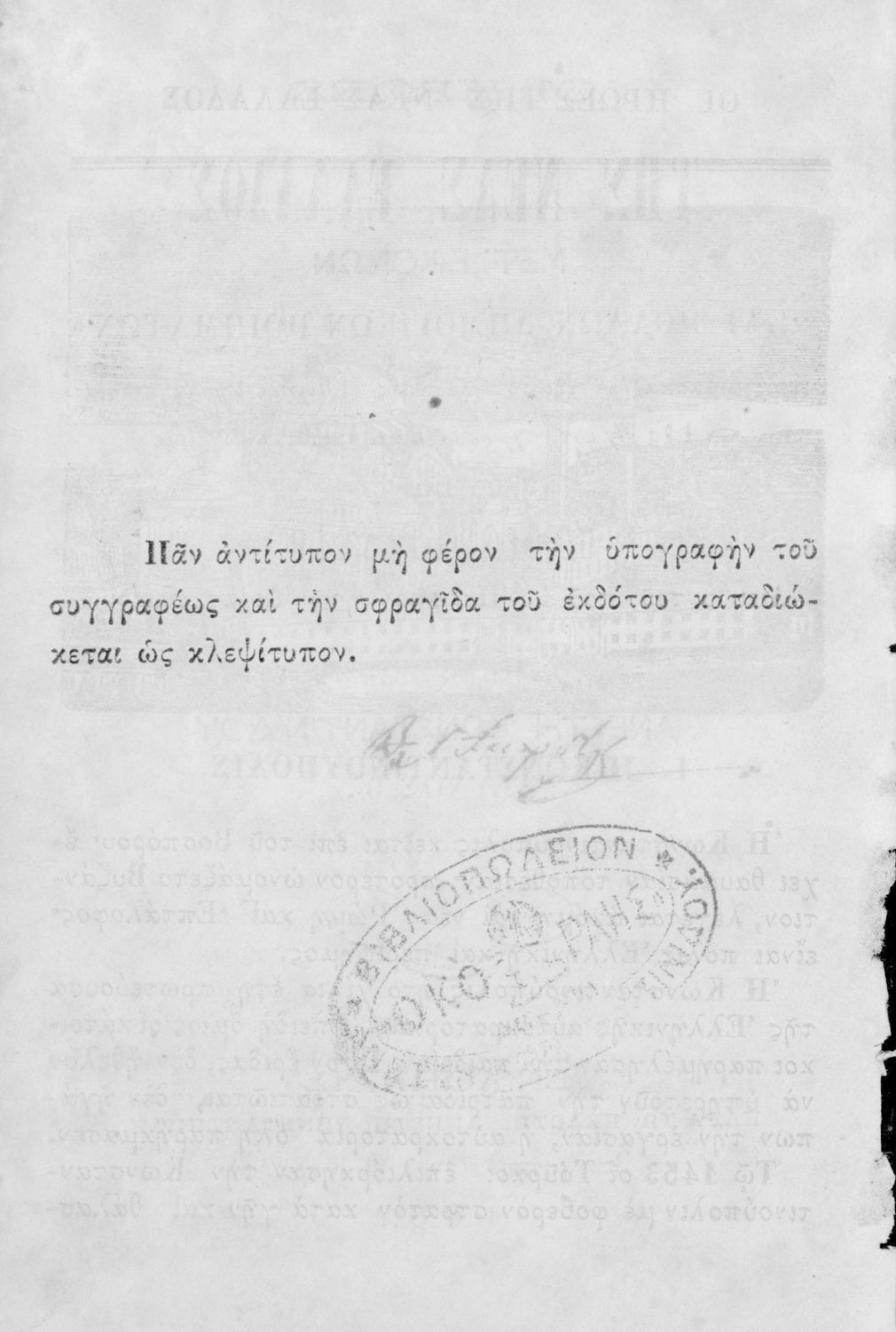 Εντοπισμός πρωτοτύπου: Ελληνικό Λογοτεχνικό και Ιστορικό Αρχείο Κωδικός βιβλιοθήκης: 2651 |