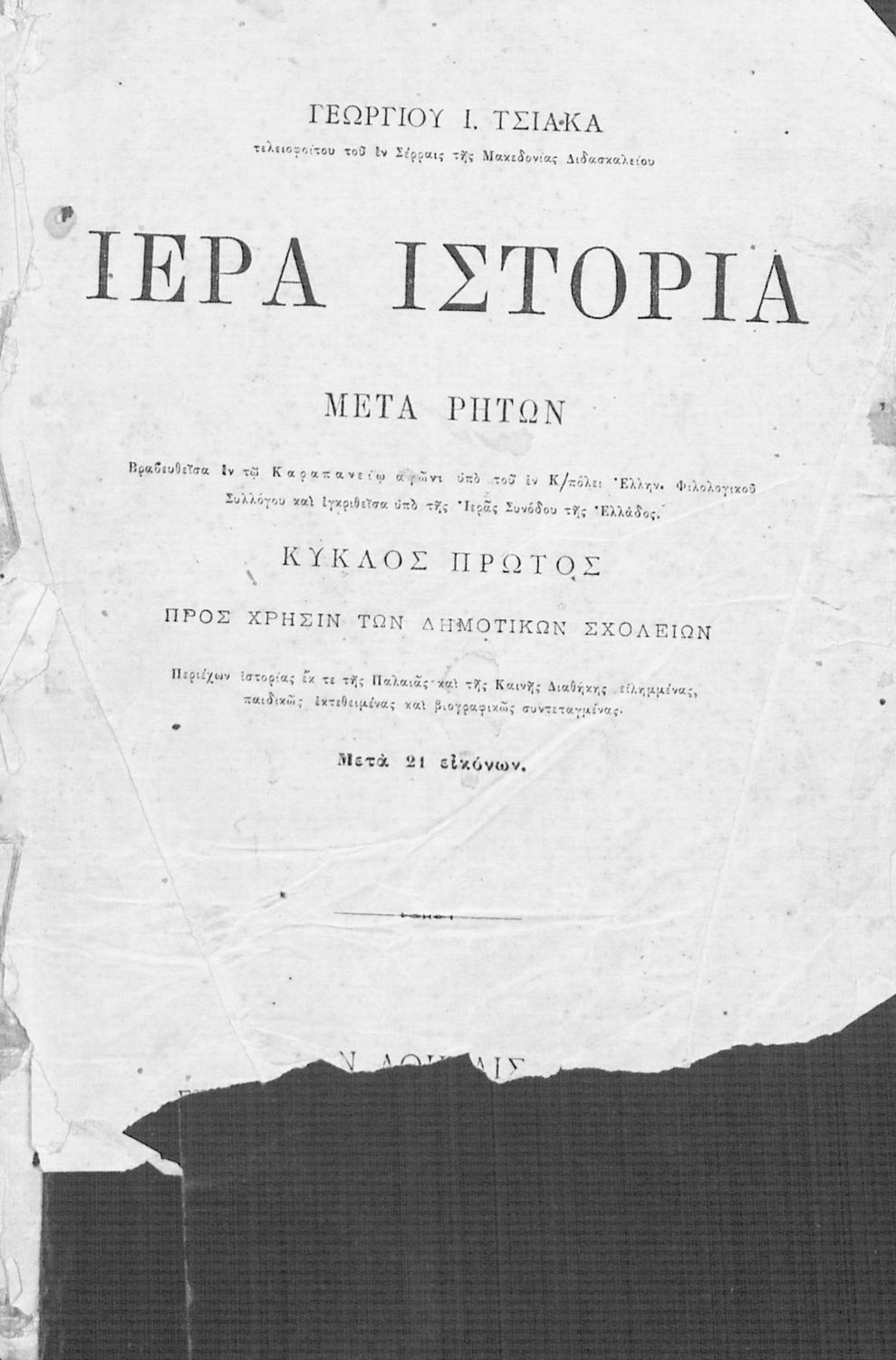 Κωδικός αναγνώρισης: 02-02653 Τίτλος: Ιερά Ιστορία μετά ρητών. Προς χρήσιν των Δημοτικών Σχολείων Συγγραφέας: Γεωρ. Ι. Τσιάκας Μέγεθος και υπόστρωμα: Σχολικό εγχειρίδιο, σκληρό εξώφυλλο, 50 σελίδες. Σκίτσα, εικόνες (ασπρόμαυρα). |