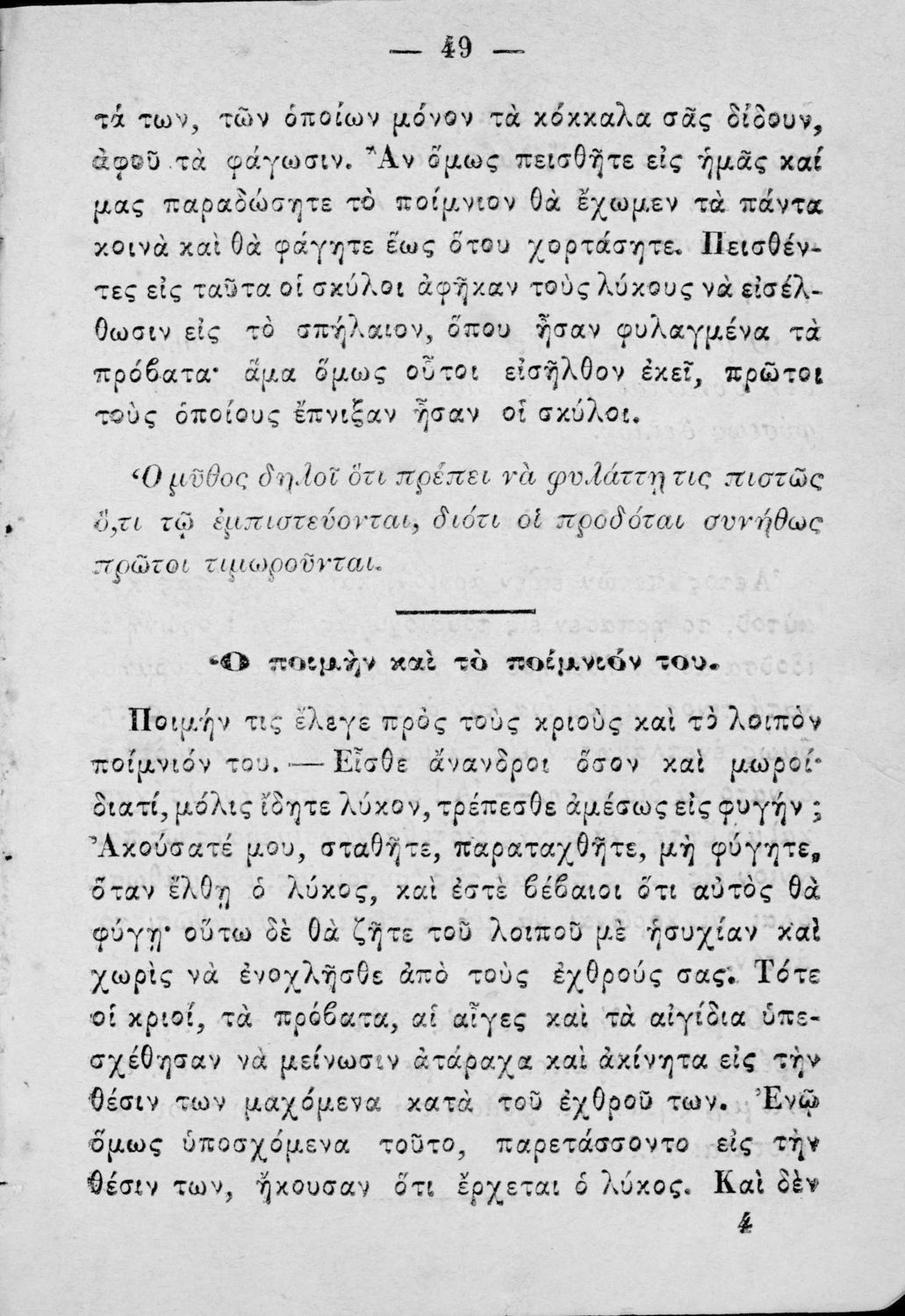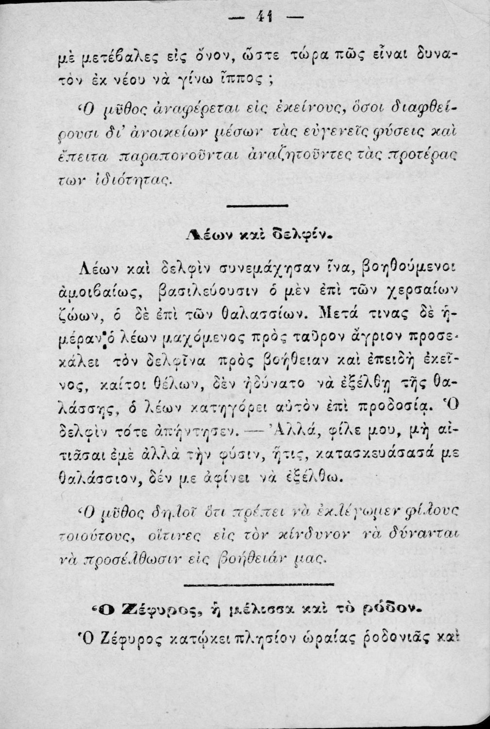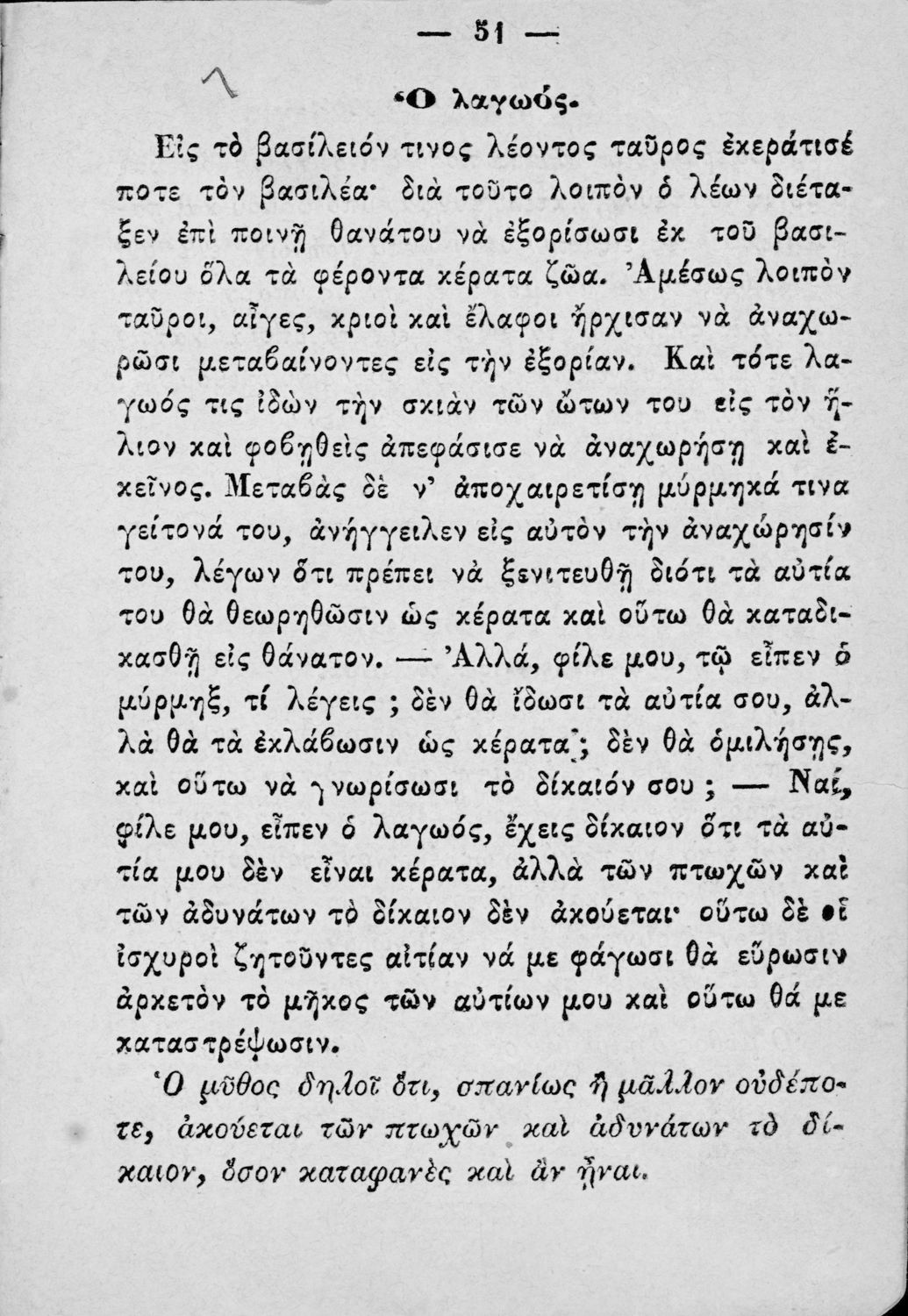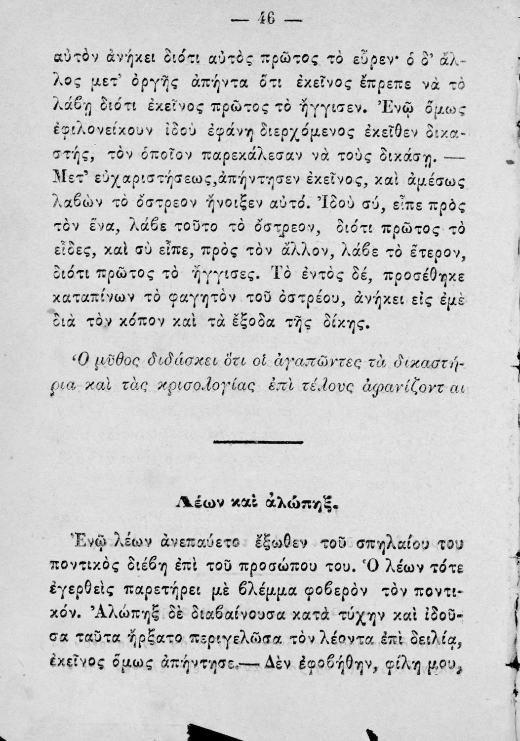 Βαθμίδα εκπαίδευσης: Πρωτοβάθμια Γλώσσα: Απλή καθαρεύουσα Παρουσίαση περιεχομένου: Μαθητικό βοήθημα Δημοτικού που περιλαμβάνει μύθους με ηθικά διδάγματα. |