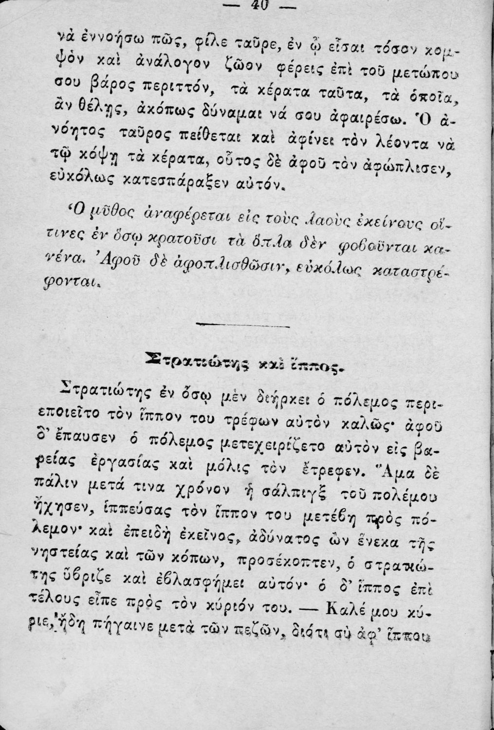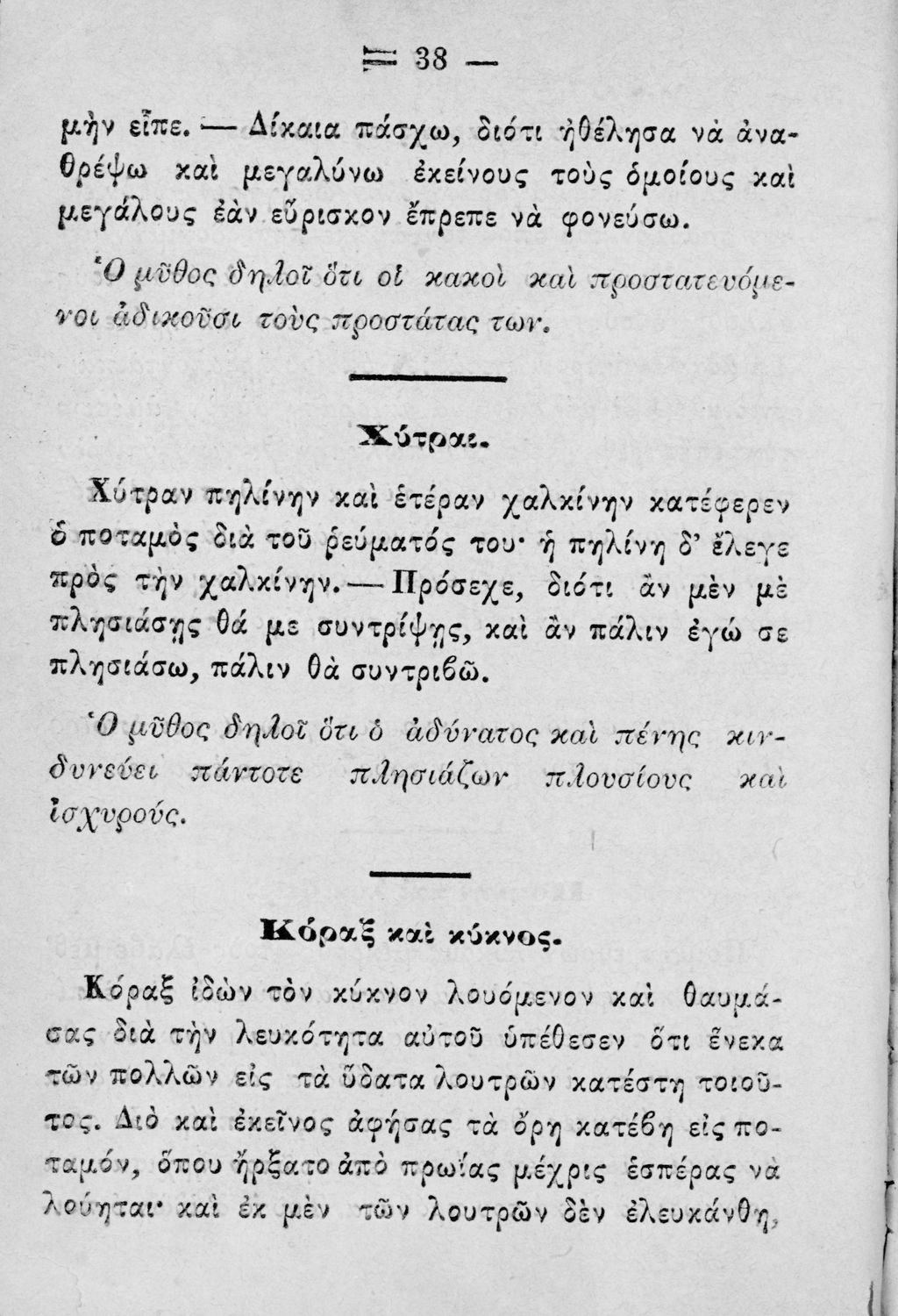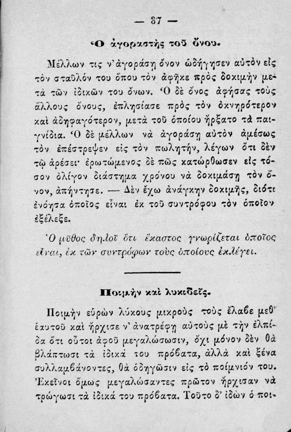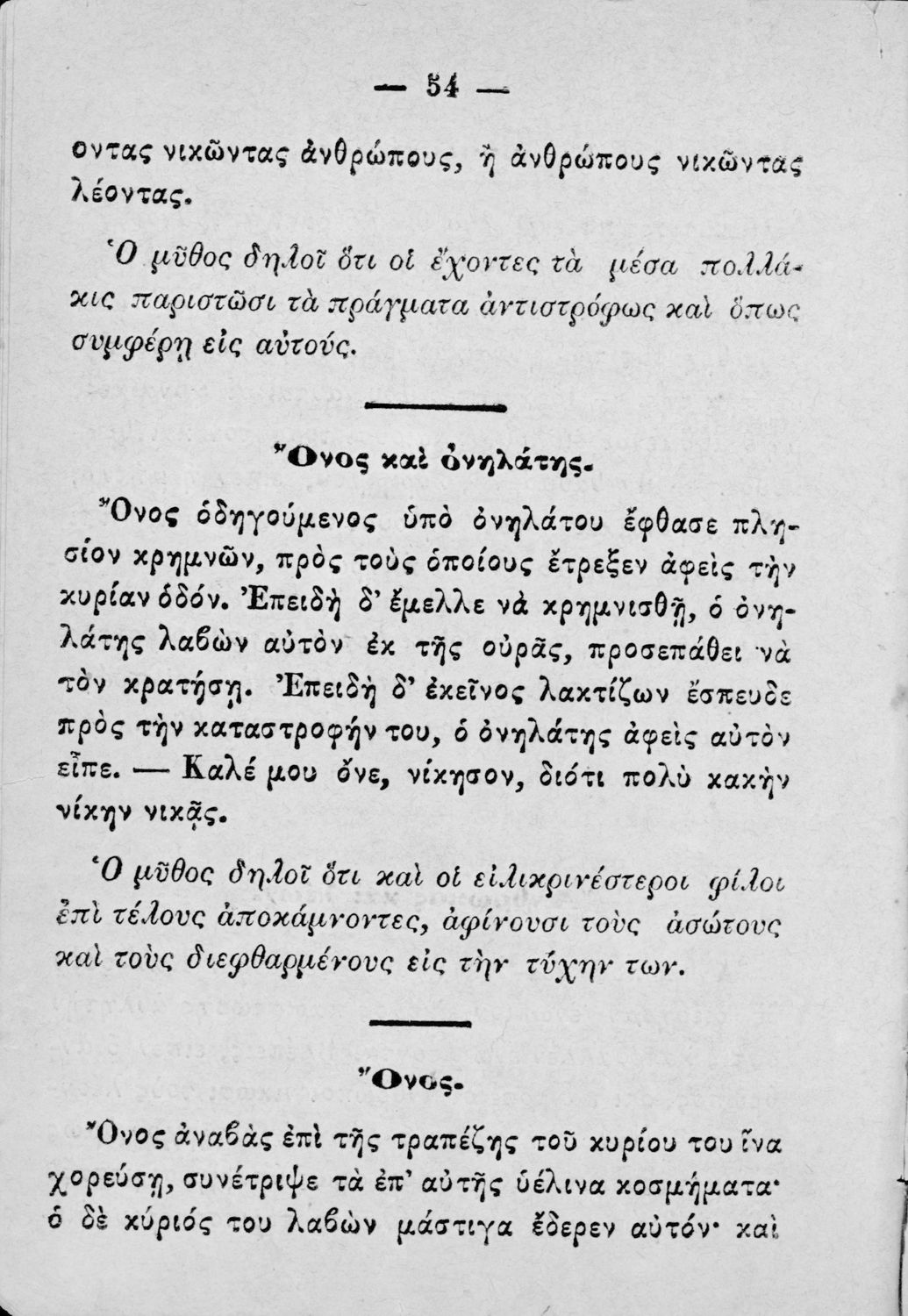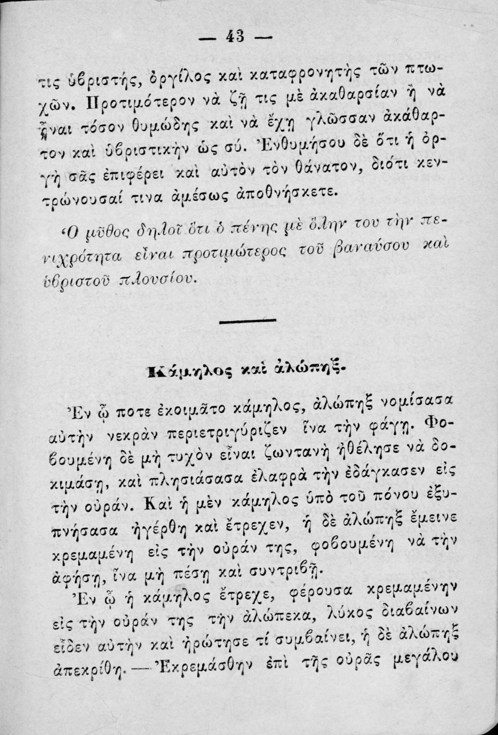 Βαθμίδα εκπαίδευσης: Πρωτοβάθμια Γλώσσα: Απλή καθαρεύουσα Παρουσίαση περιεχομένου: Μαθητικό βοήθημα Δημοτικού που περιλαμβάνει μύθους με ηθικά διδάγματα. |
