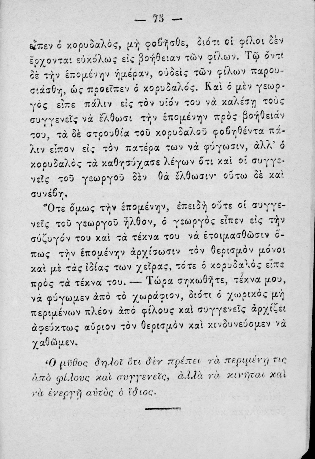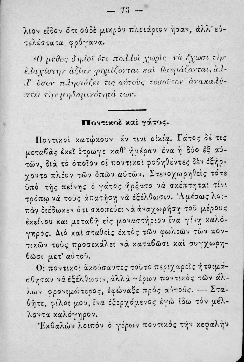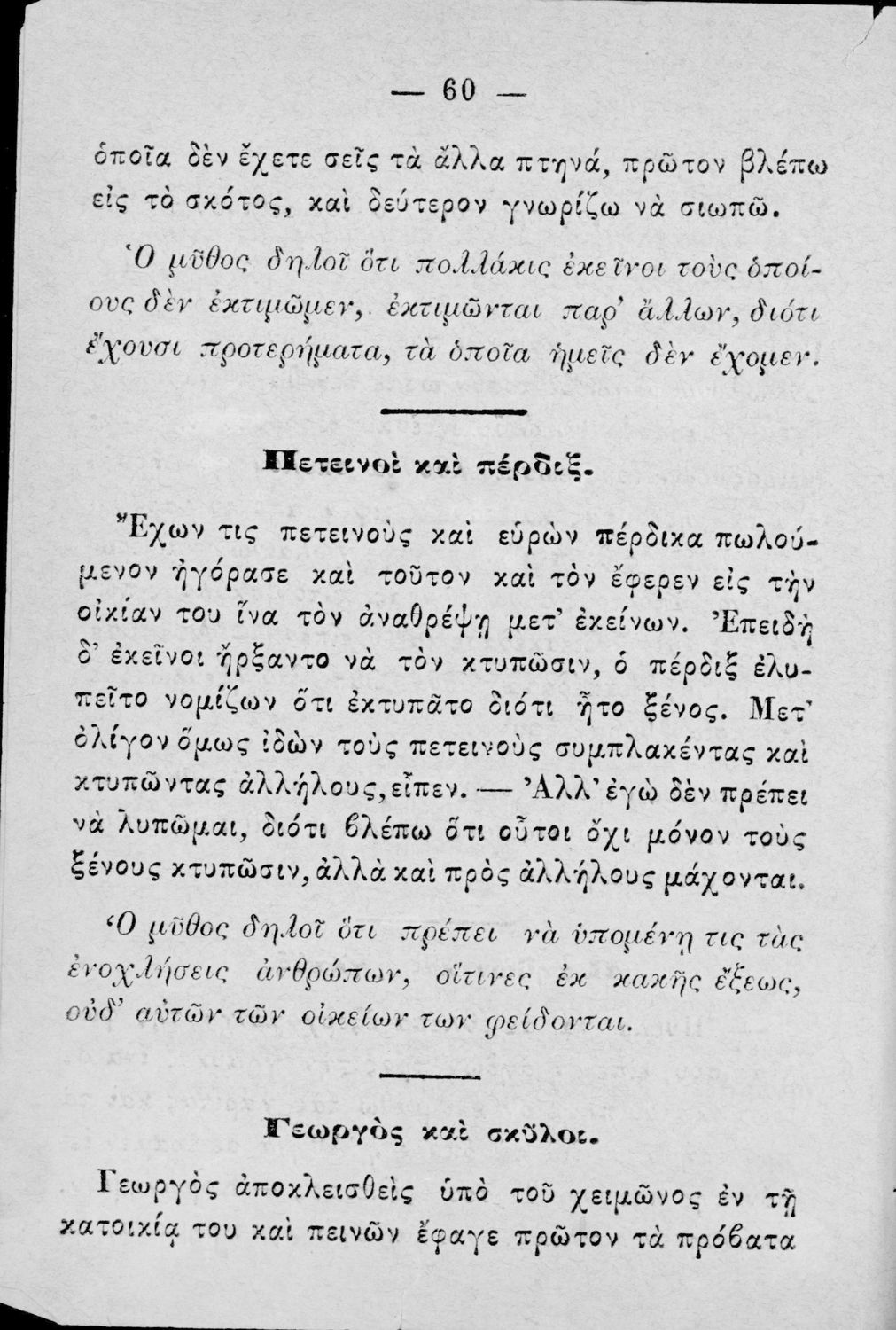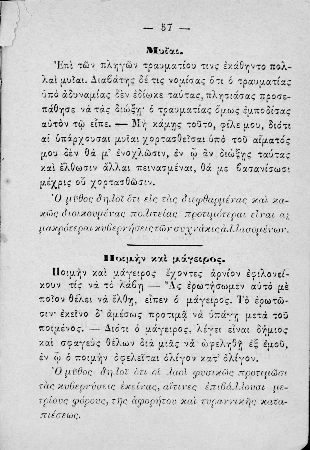 Βαθμίδα εκπαίδευσης: Πρωτοβάθμια Γλώσσα: Απλή καθαρεύουσα Παρουσίαση περιεχομένου: Μαθητικό βοήθημα Δημοτικού που περιλαμβάνει μύθους με ηθικά διδάγματα. |