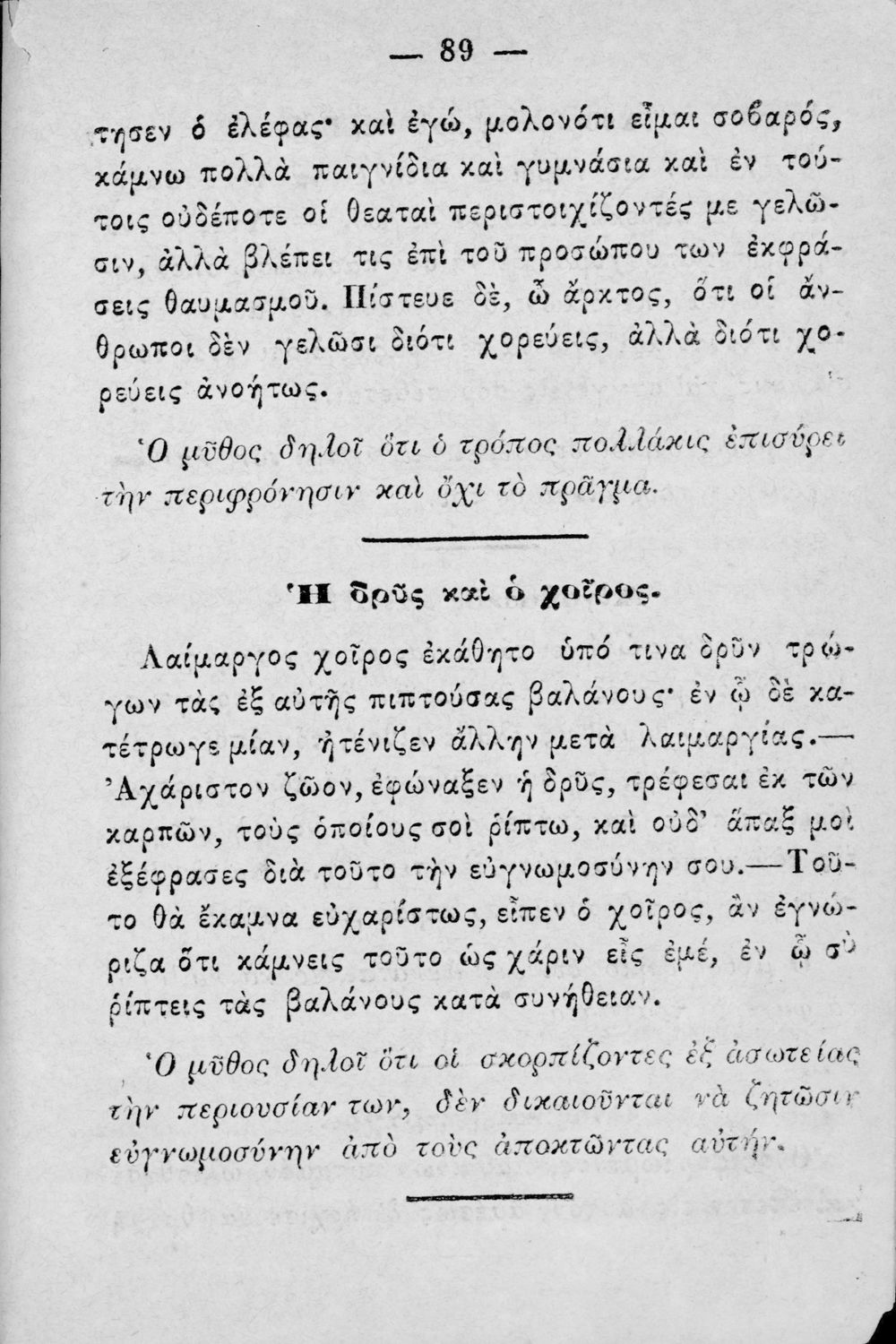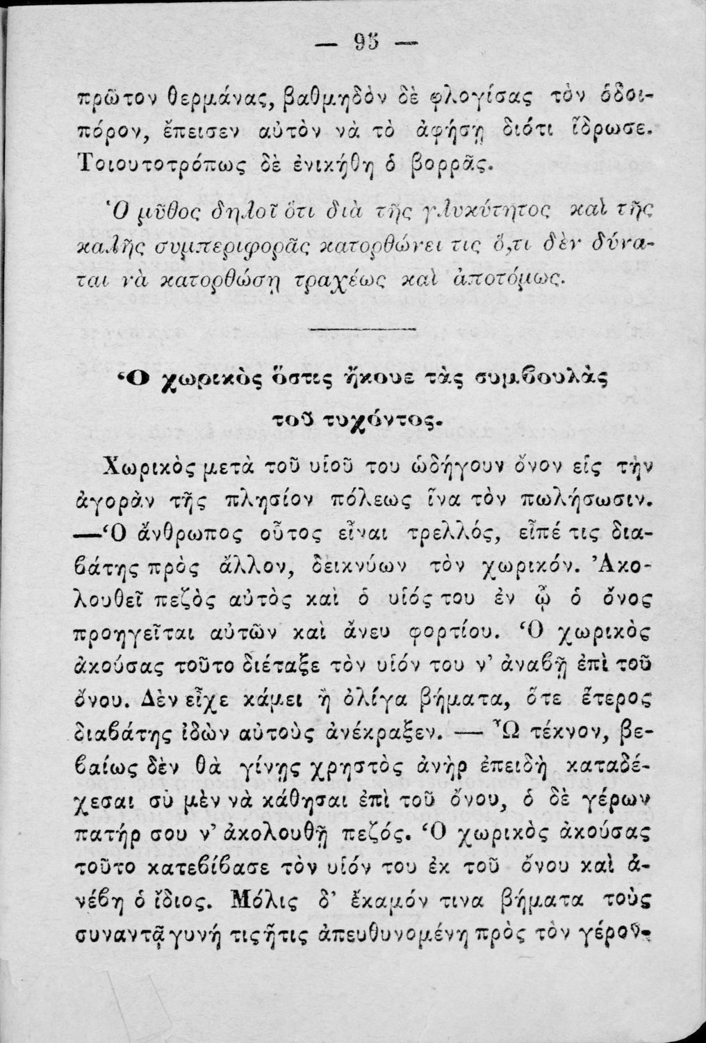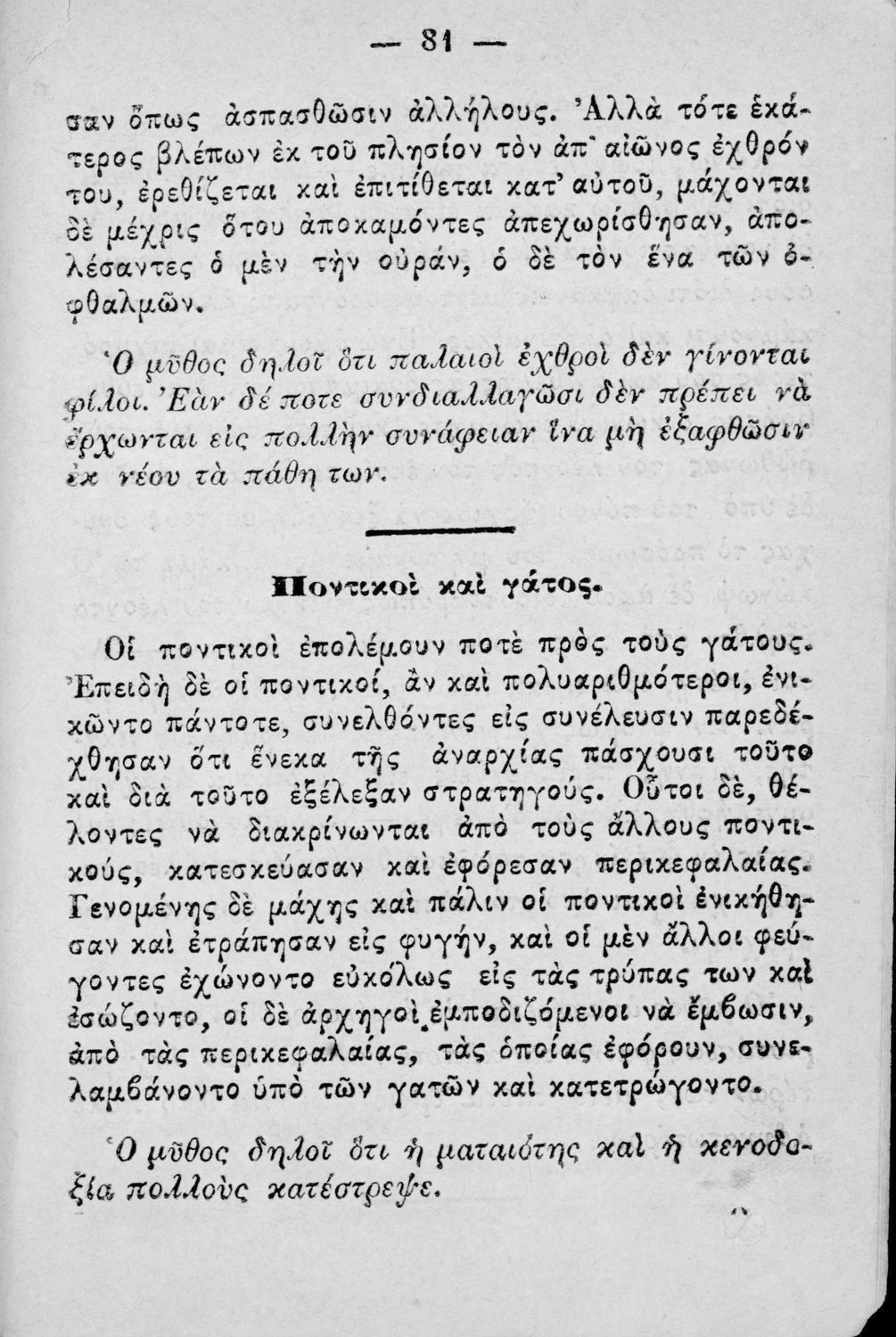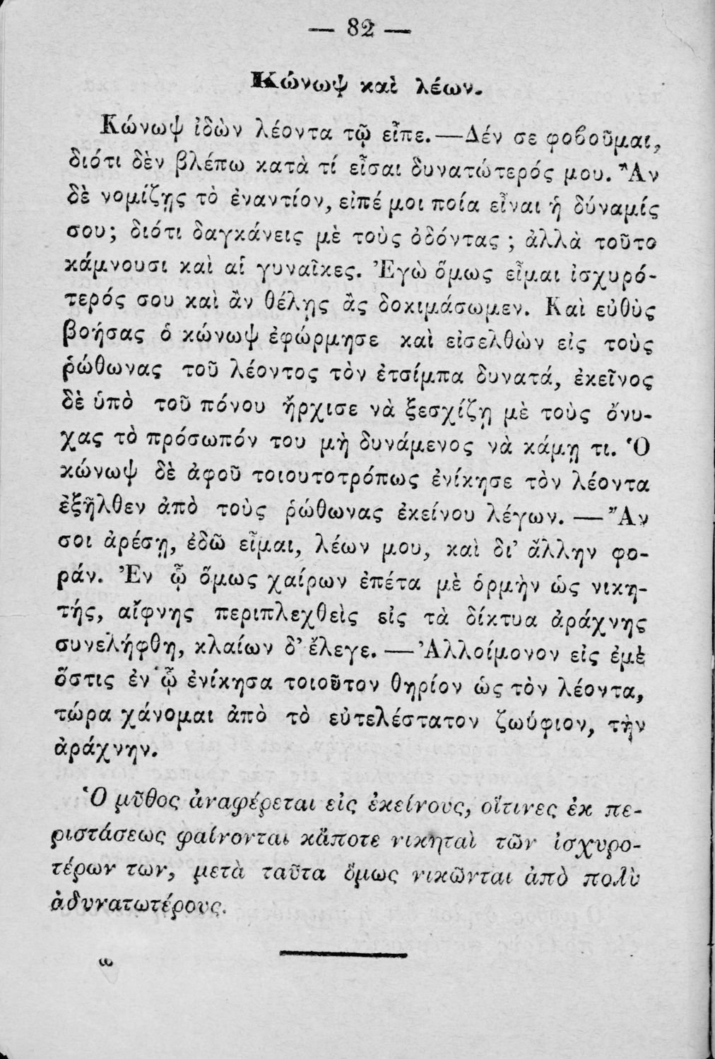 Βαθμίδα εκπαίδευσης: Πρωτοβάθμια Γλώσσα: Απλή καθαρεύουσα Παρουσίαση περιεχομένου: Μαθητικό βοήθημα Δημοτικού που περιλαμβάνει μύθους με ηθικά διδάγματα. |