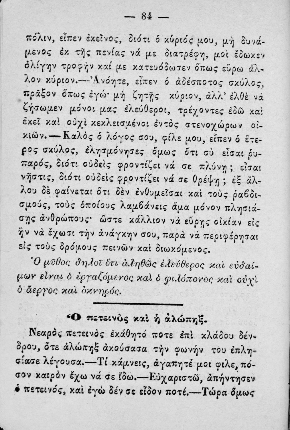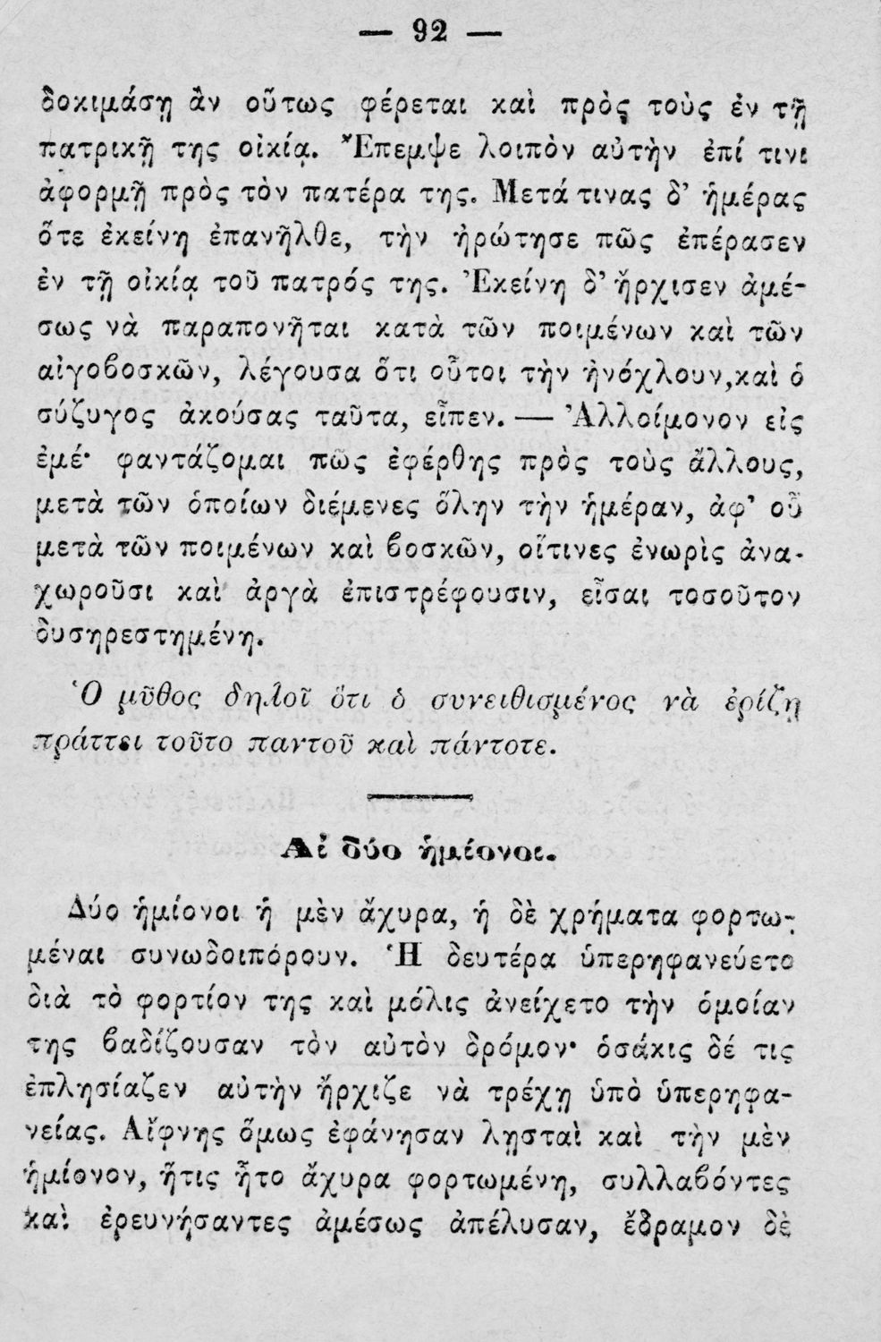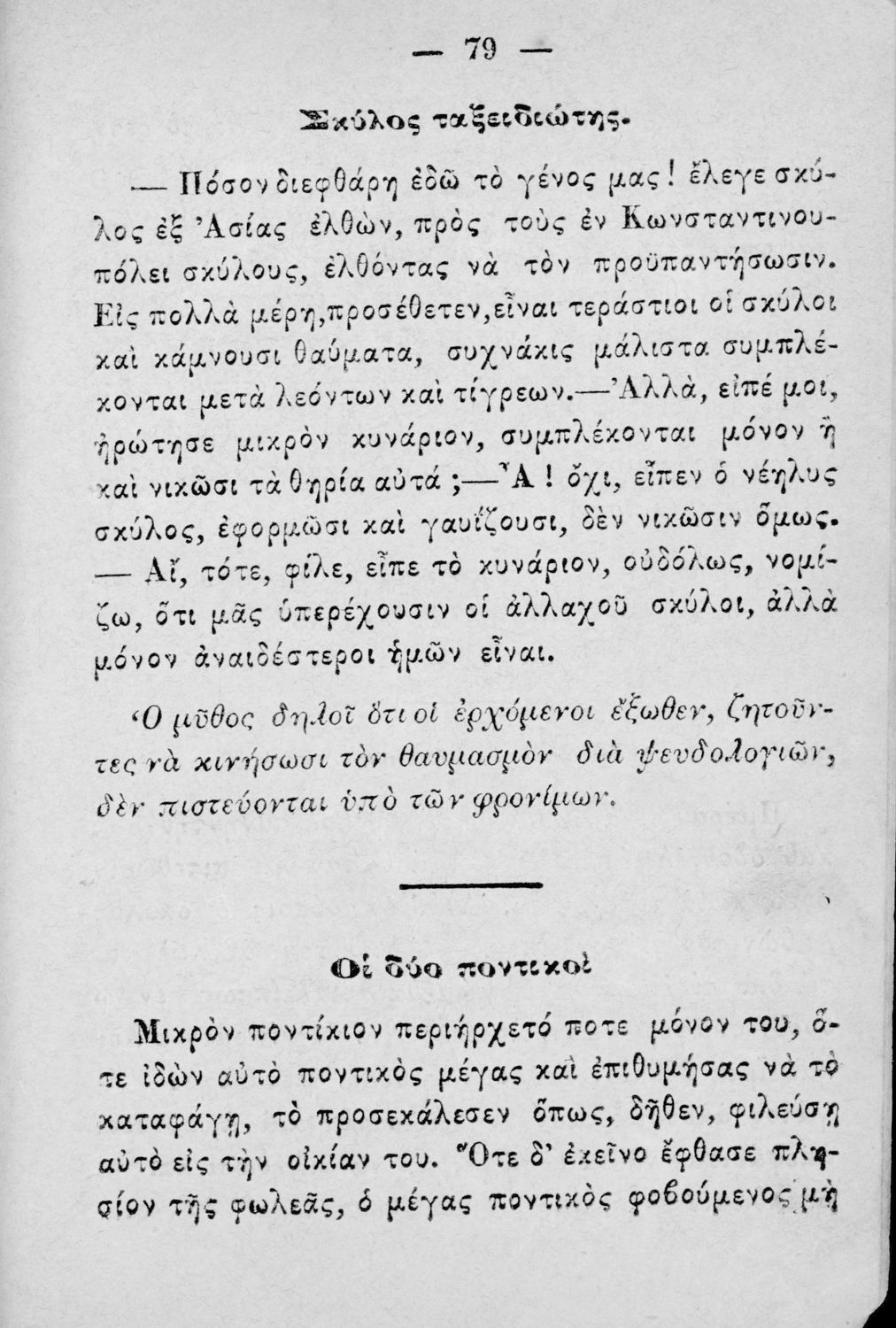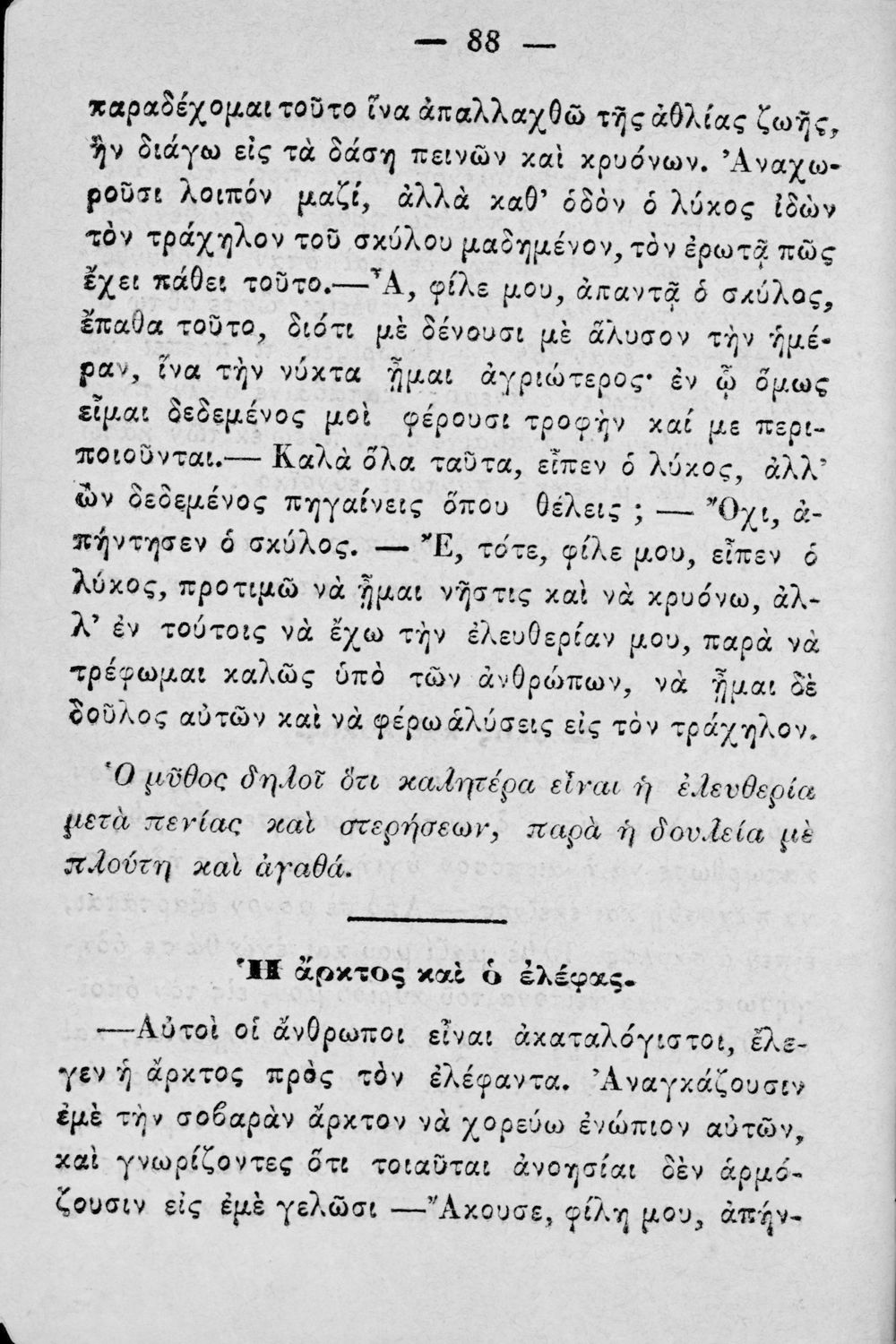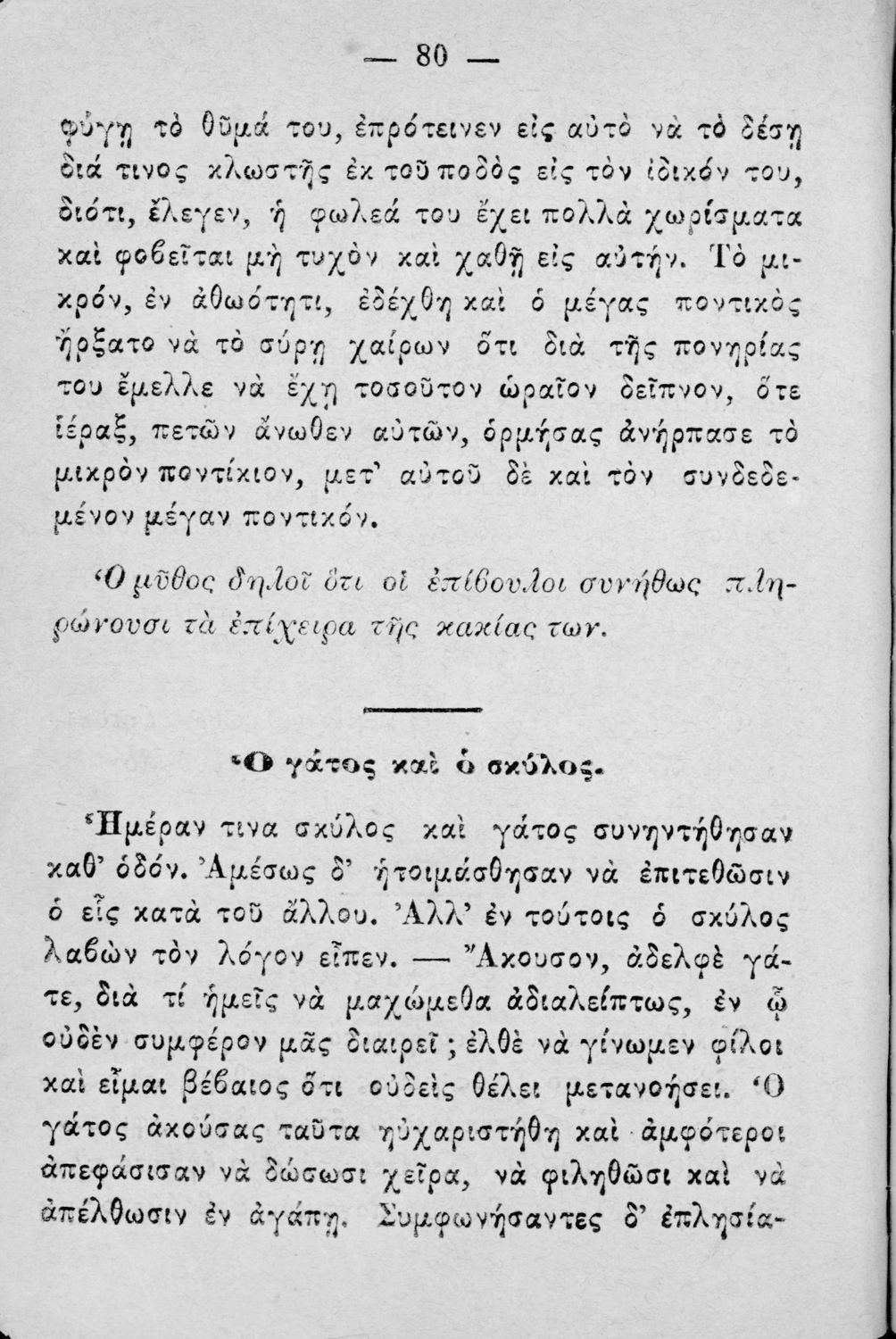 Βαθμίδα εκπαίδευσης: Πρωτοβάθμια Γλώσσα: Απλή καθαρεύουσα Παρουσίαση περιεχομένου: Μαθητικό βοήθημα Δημοτικού που περιλαμβάνει μύθους με ηθικά διδάγματα. |