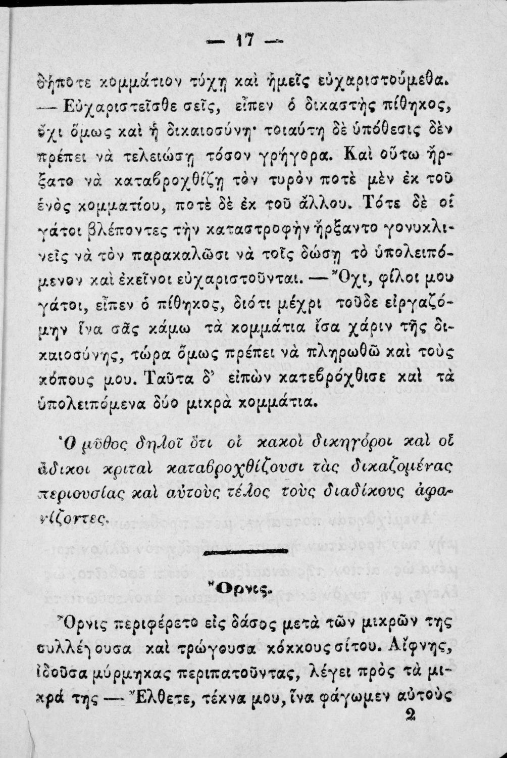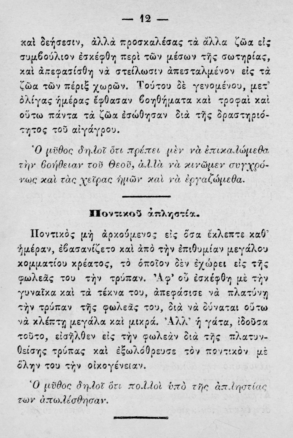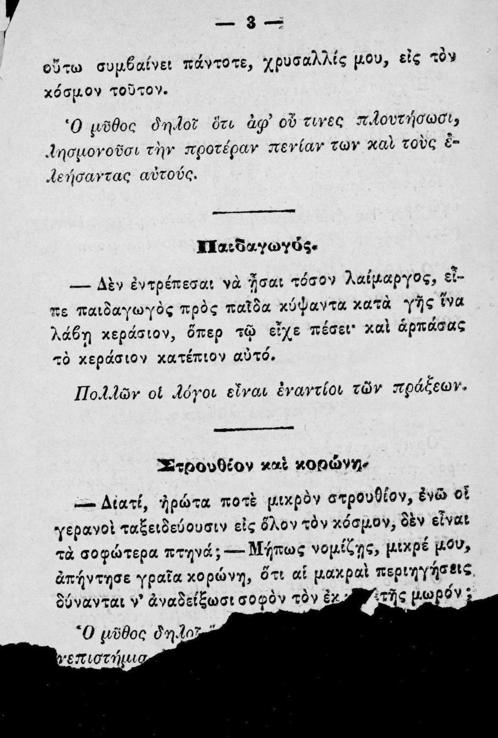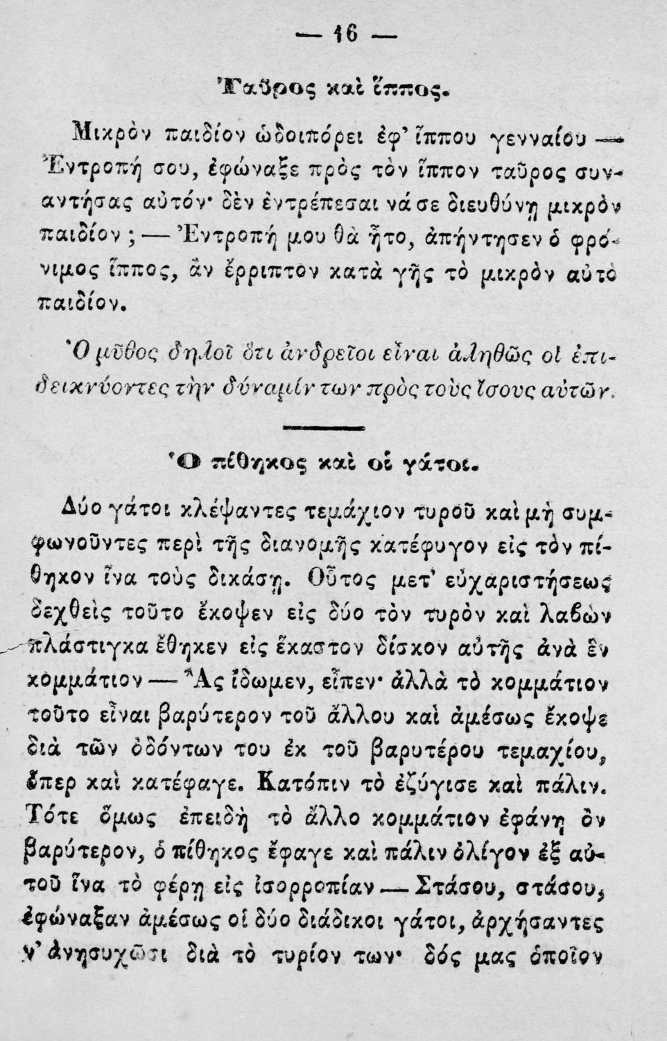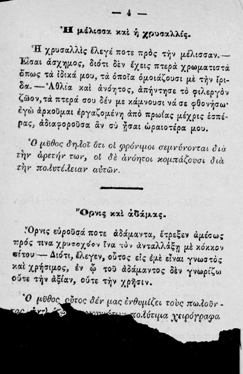 Βαθμίδα εκπαίδευσης: Πρωτοβάθμια Γλώσσα: Απλή καθαρεύουσα Παρουσίαση περιεχομένου: Μαθητικό βοήθημα Δημοτικού που περιλαμβάνει μύθους με ηθικά διδάγματα. |