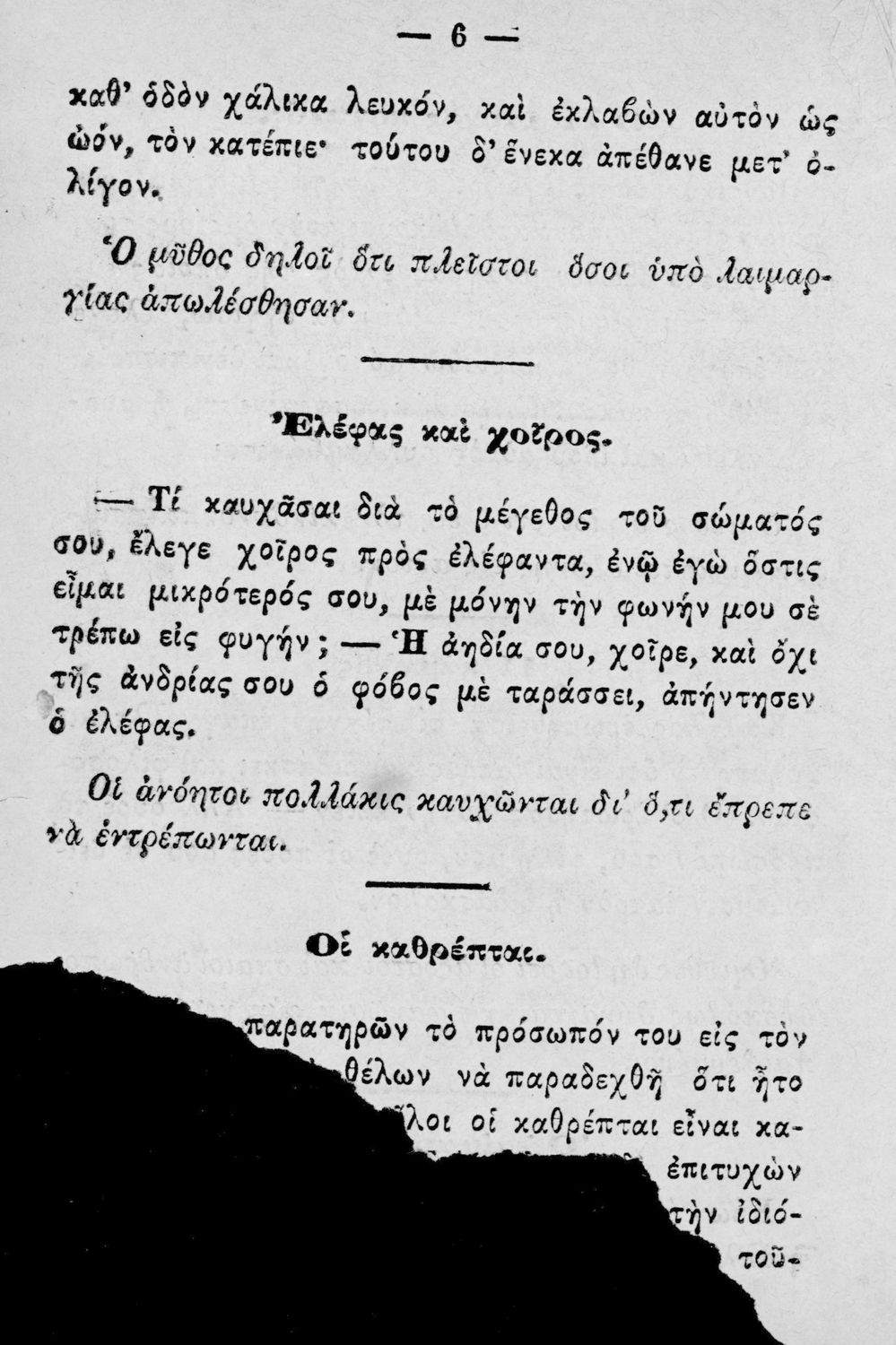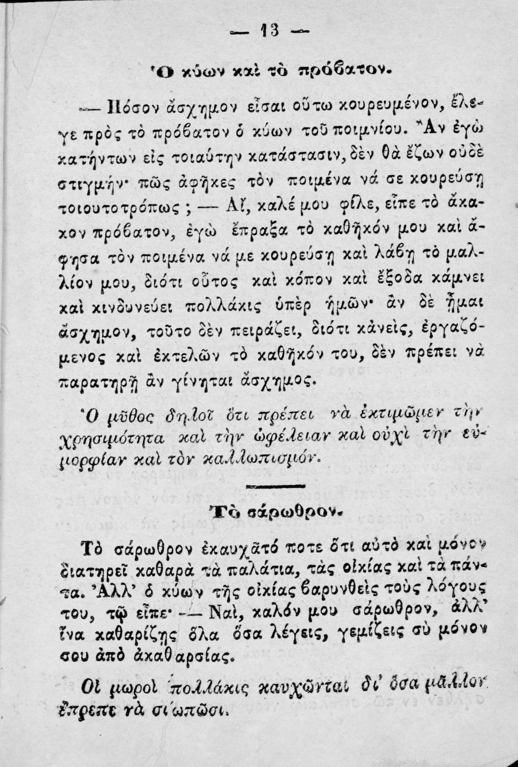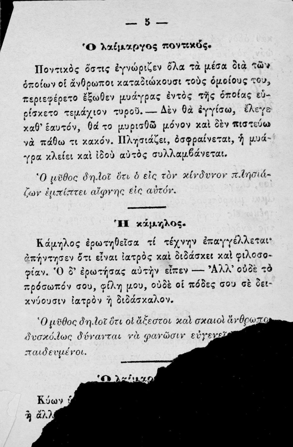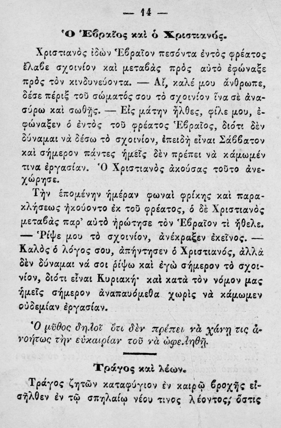 Βαθμίδα εκπαίδευσης: Πρωτοβάθμια Γλώσσα: Απλή καθαρεύουσα Παρουσίαση περιεχομένου: Μαθητικό βοήθημα Δημοτικού που περιλαμβάνει μύθους με ηθικά διδάγματα. |