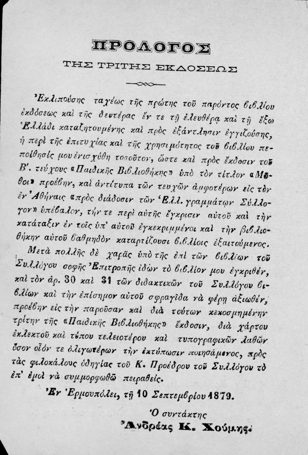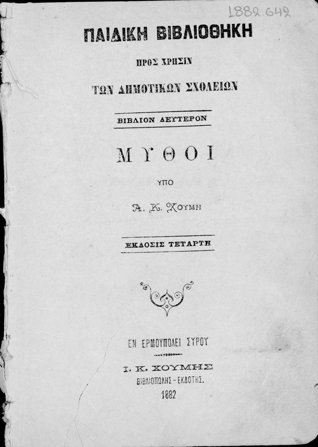 Εκδότης: Ι. Κ. Χούμης Έτος έκδοσης: 1882 Τόπος έκδοσης: Ερμούπολη - Σύρος |