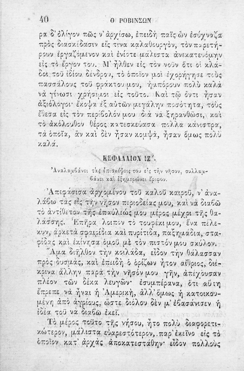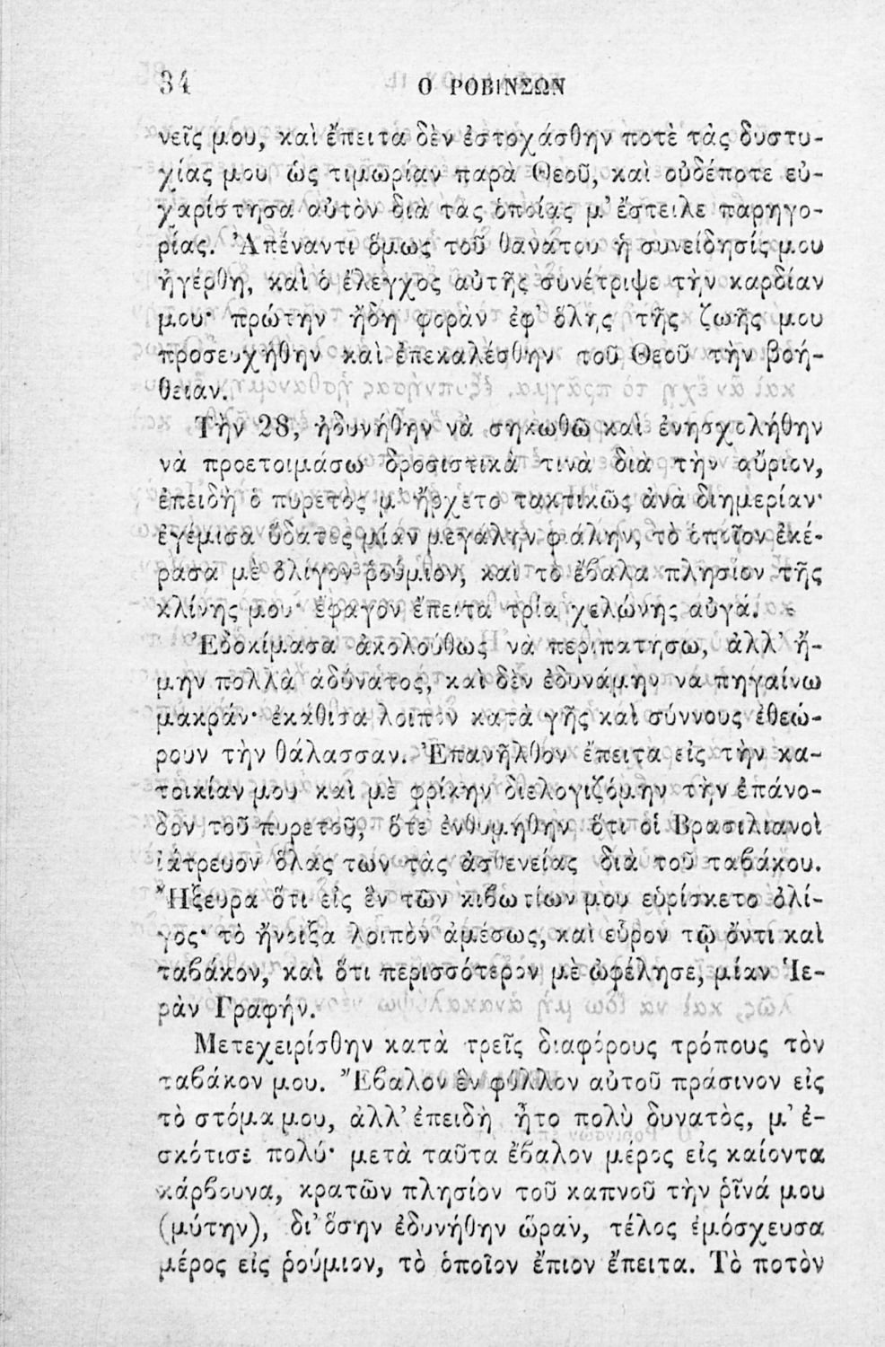 Τίτλος: Ο Ροβινσών εν τη νήσω του, μετά πολλών και ποικίλων εικόνων εκ της γαλλικής, προς χρήσιν των Δημοτικών σχολείων