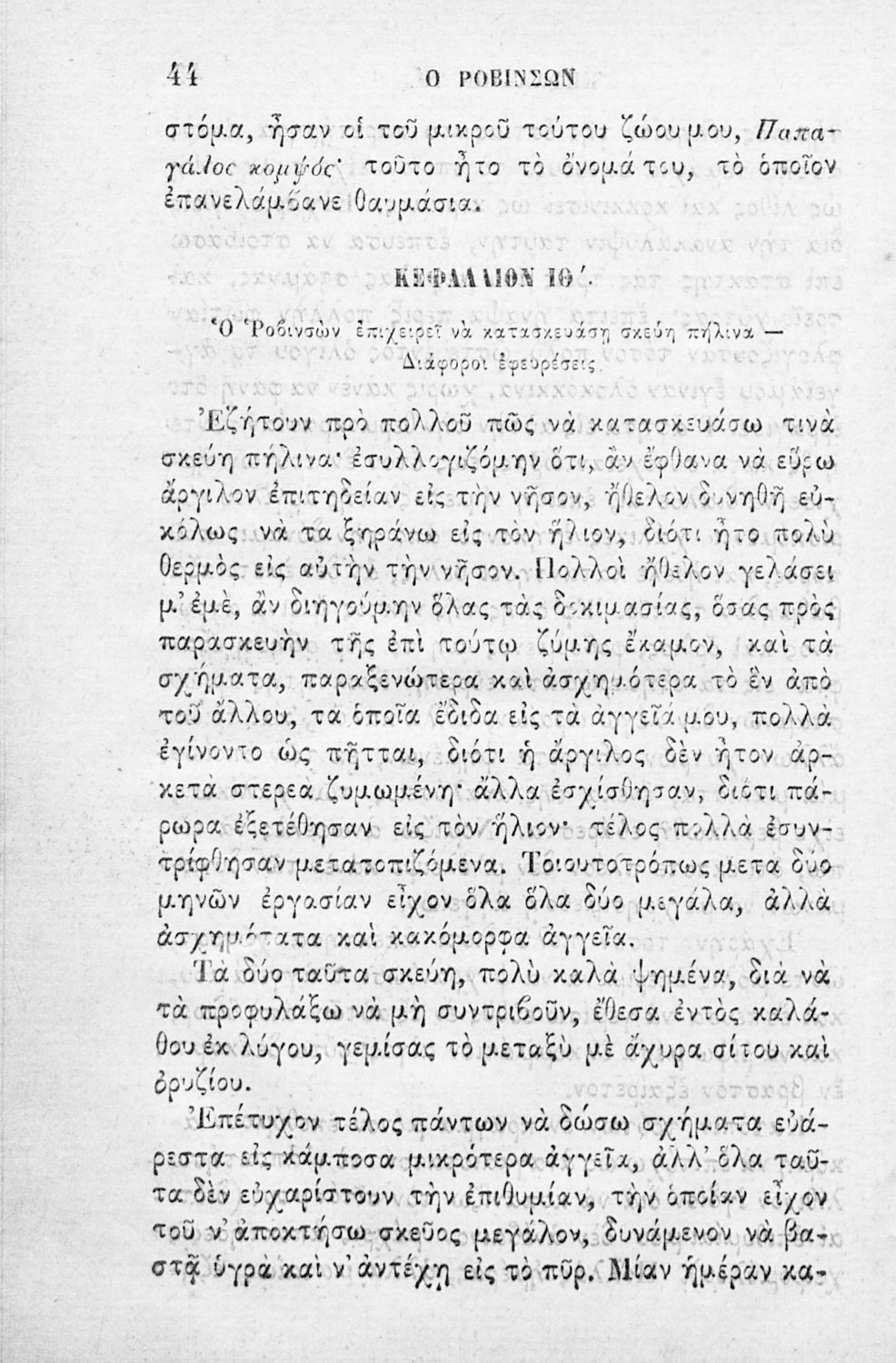 Τίτλος: Ο Ροβινσών εν τη νήσω του, μετά πολλών και ποικίλων εικόνων εκ της γαλλικής, προς χρήσιν των Δημοτικών σχολείων