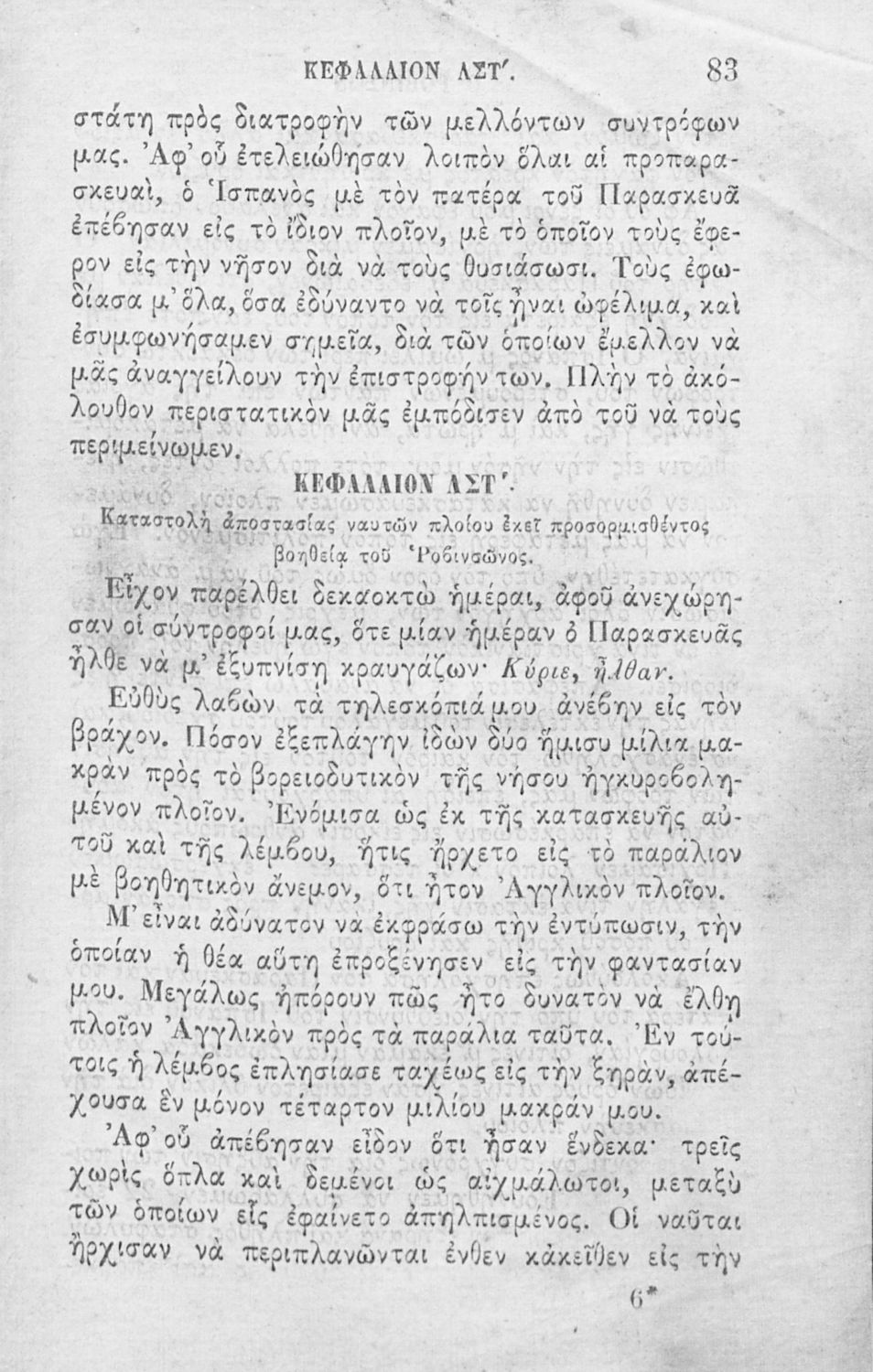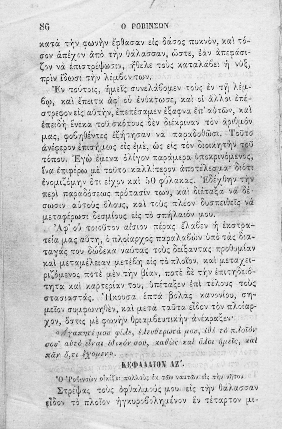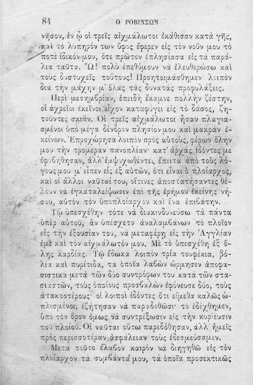 Τίτλος: Ο Ροβινσών εν τη νήσω του, μετά πολλών και ποικίλων εικόνων εκ της γαλλικής, προς χρήσιν των Δημοτικών σχολείων
