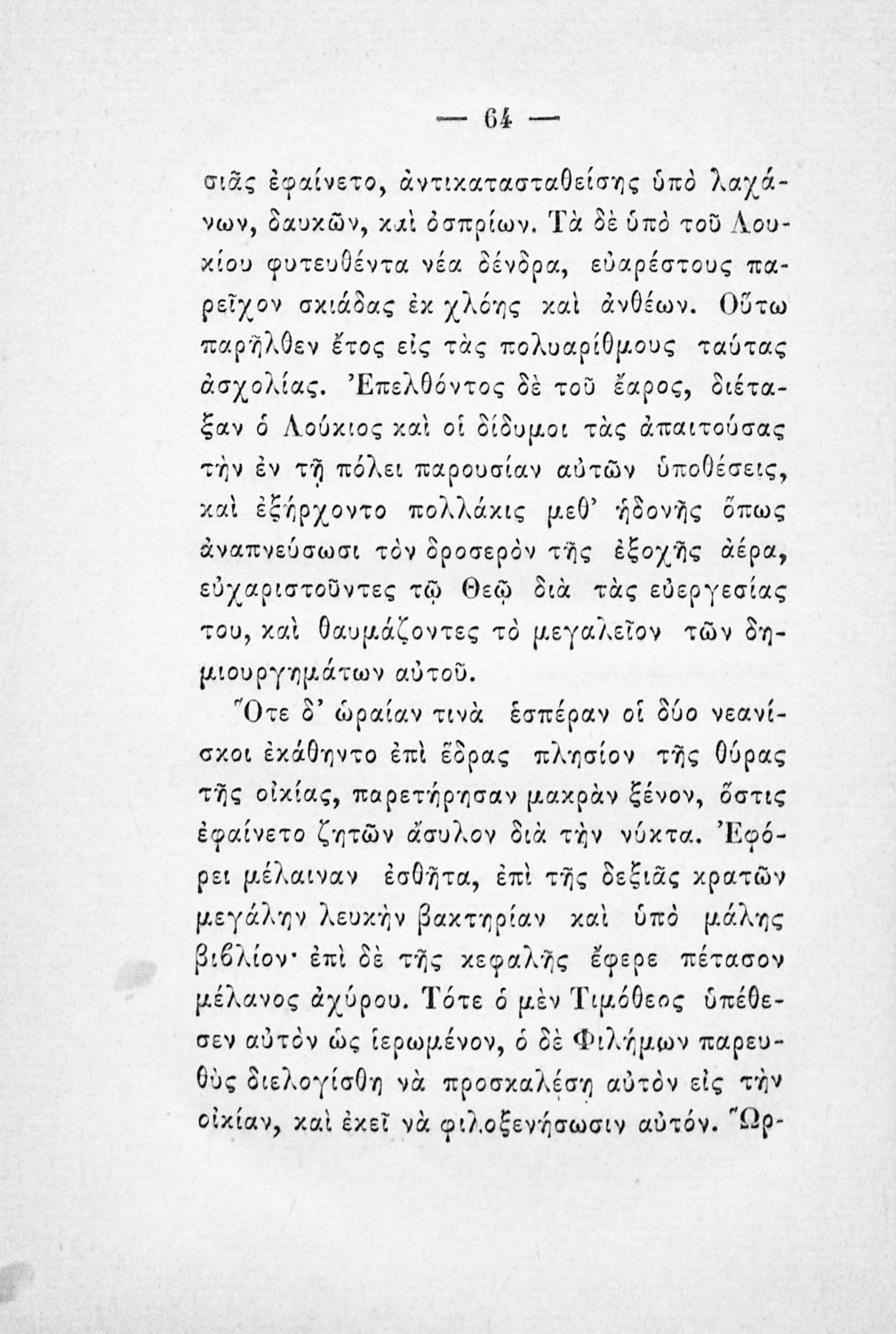Τίτλος: Ο Τιμόθεος και ο Φιλήμων, ιστορία διδύμων χριστιανών Ηθικόν διήγημα, προς χρήσιν των Δημοτικών Σχολείων εκ του γαλλικού