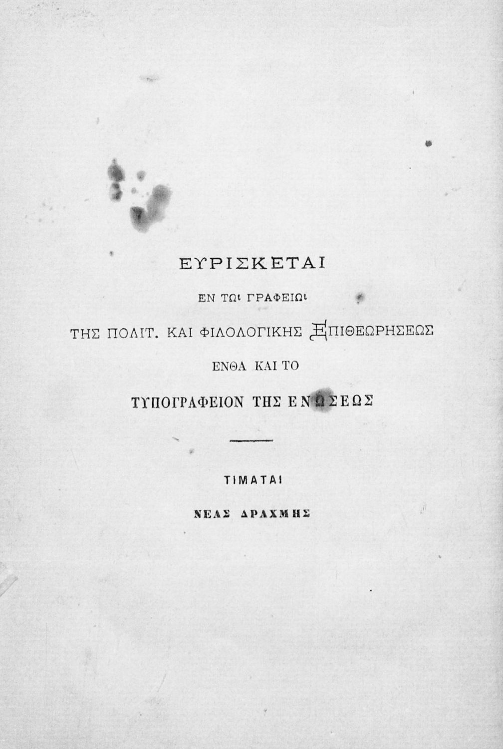 Εκδότης: Τυπογραφείο ΄ Ένωσις΄
