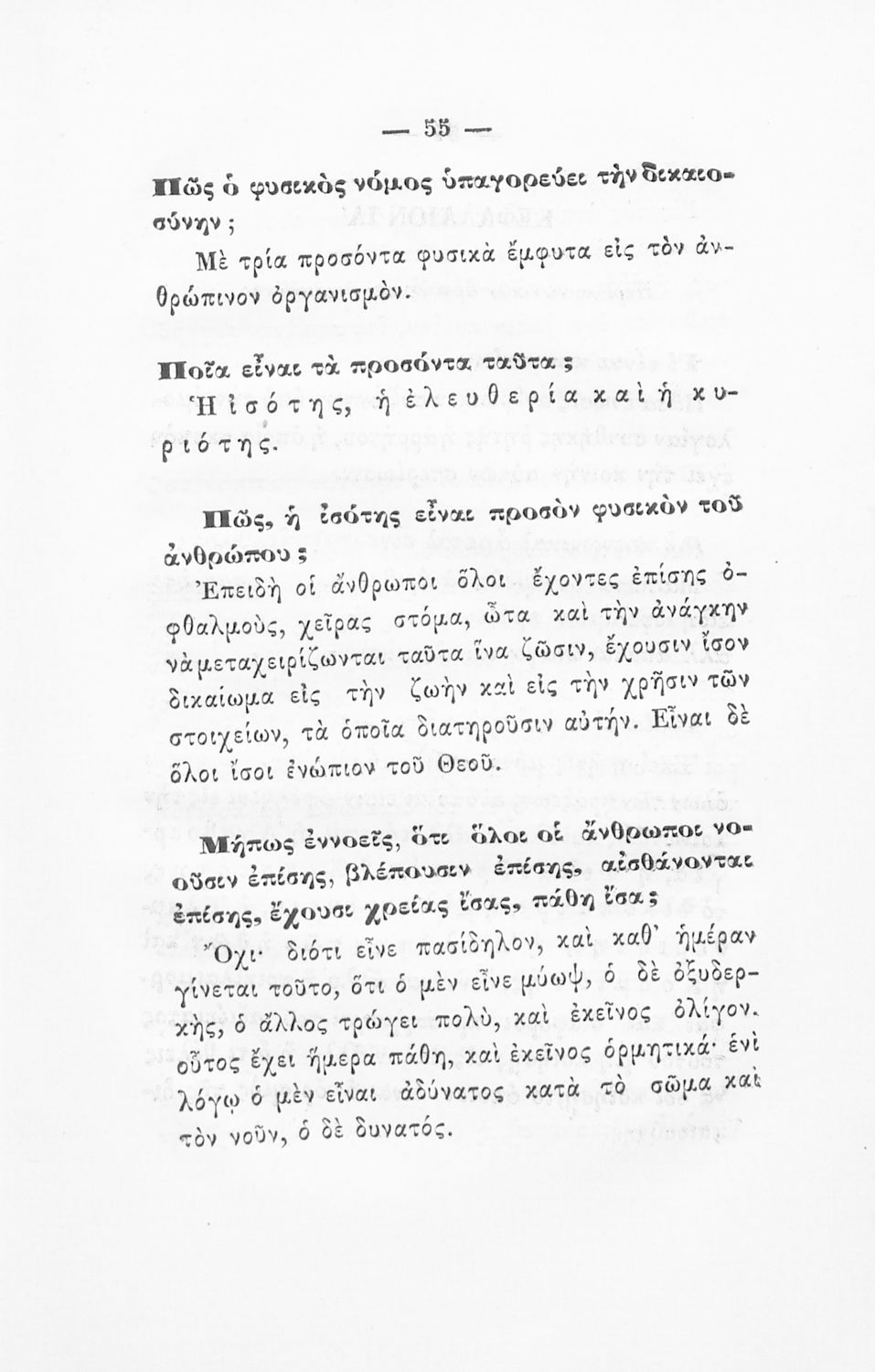 Τίτλος: Στοιχεία ηθικής ή Φυσικός νόμος, εγκρίσει του Υπουργείου της Παιδείας προς χρήσιν των σχολείων