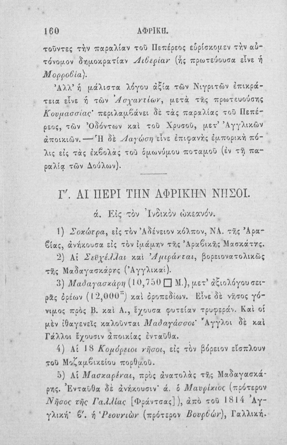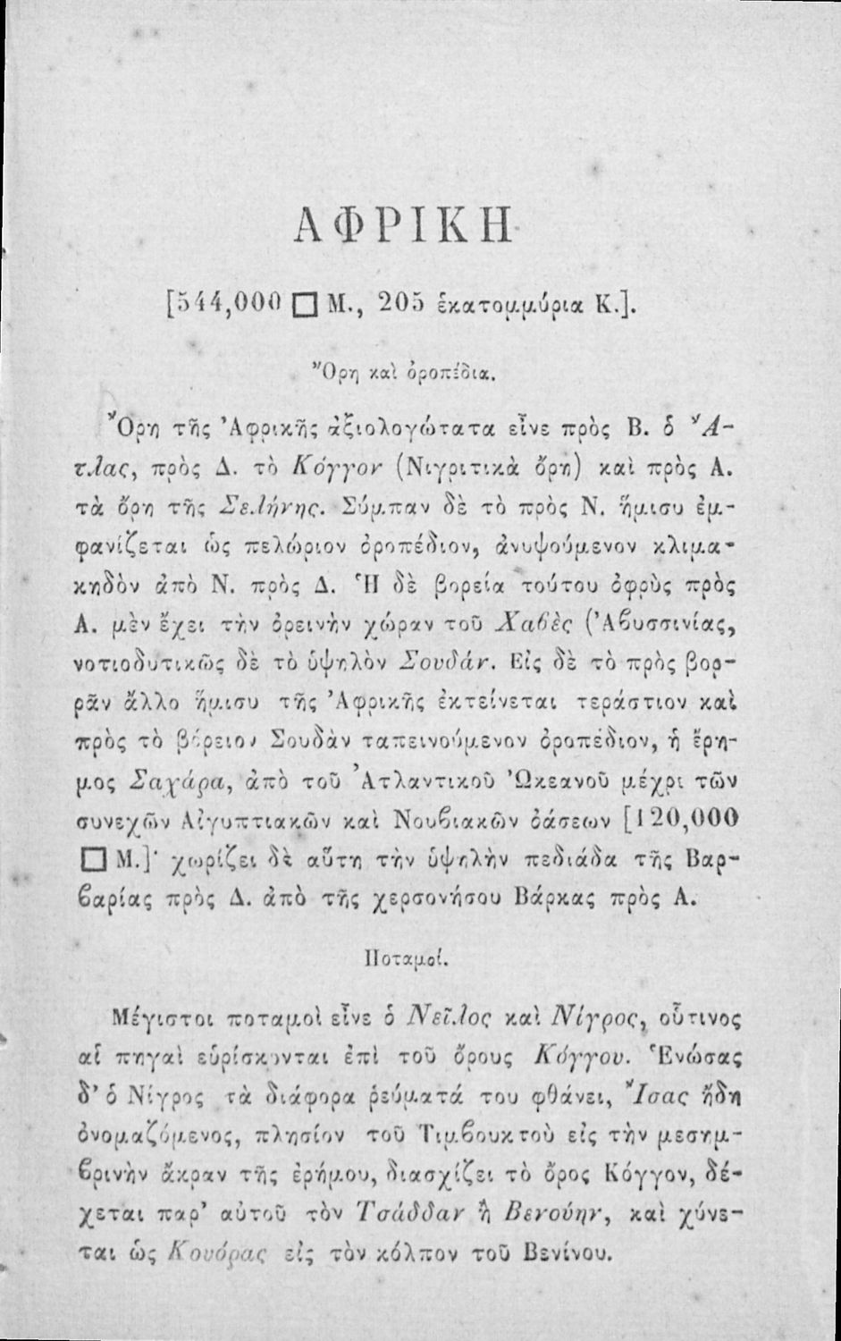 Σχολικό εγχειρίδιο Γεωγραφίας για τα Ελληνικά Σχολεία που περιλαμβάνει εισαγωγή στις βασικές έννοιες και ορισμούς της επιστήμης, και στοιχεία μαθηματικής, φυσικής και πολιτικής γεωγραφίας των πέντε ηπείρων.