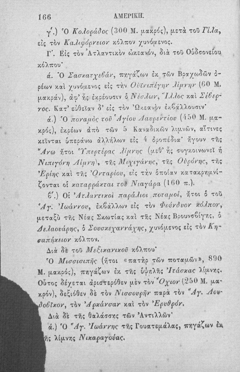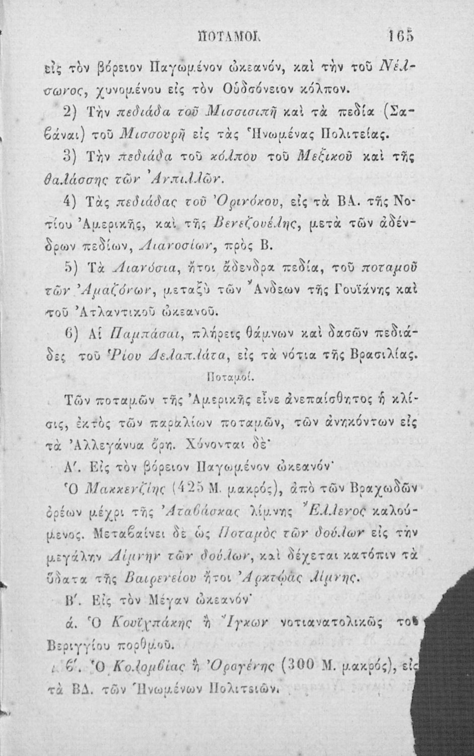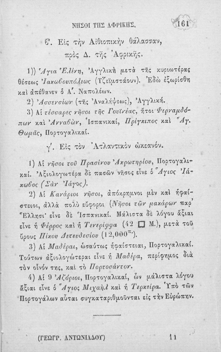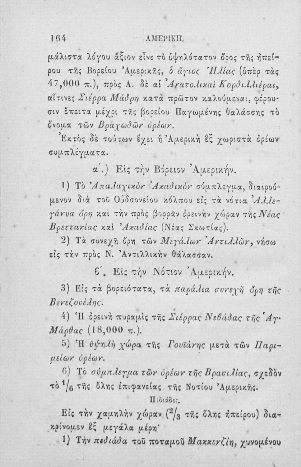Σχολικό εγχειρίδιο Γεωγραφίας για τα Ελληνικά Σχολεία που περιλαμβάνει εισαγωγή στις βασικές έννοιες και ορισμούς της επιστήμης, και στοιχεία μαθηματικής, φυσικής και πολιτικής γεωγραφίας των πέντε ηπείρων.