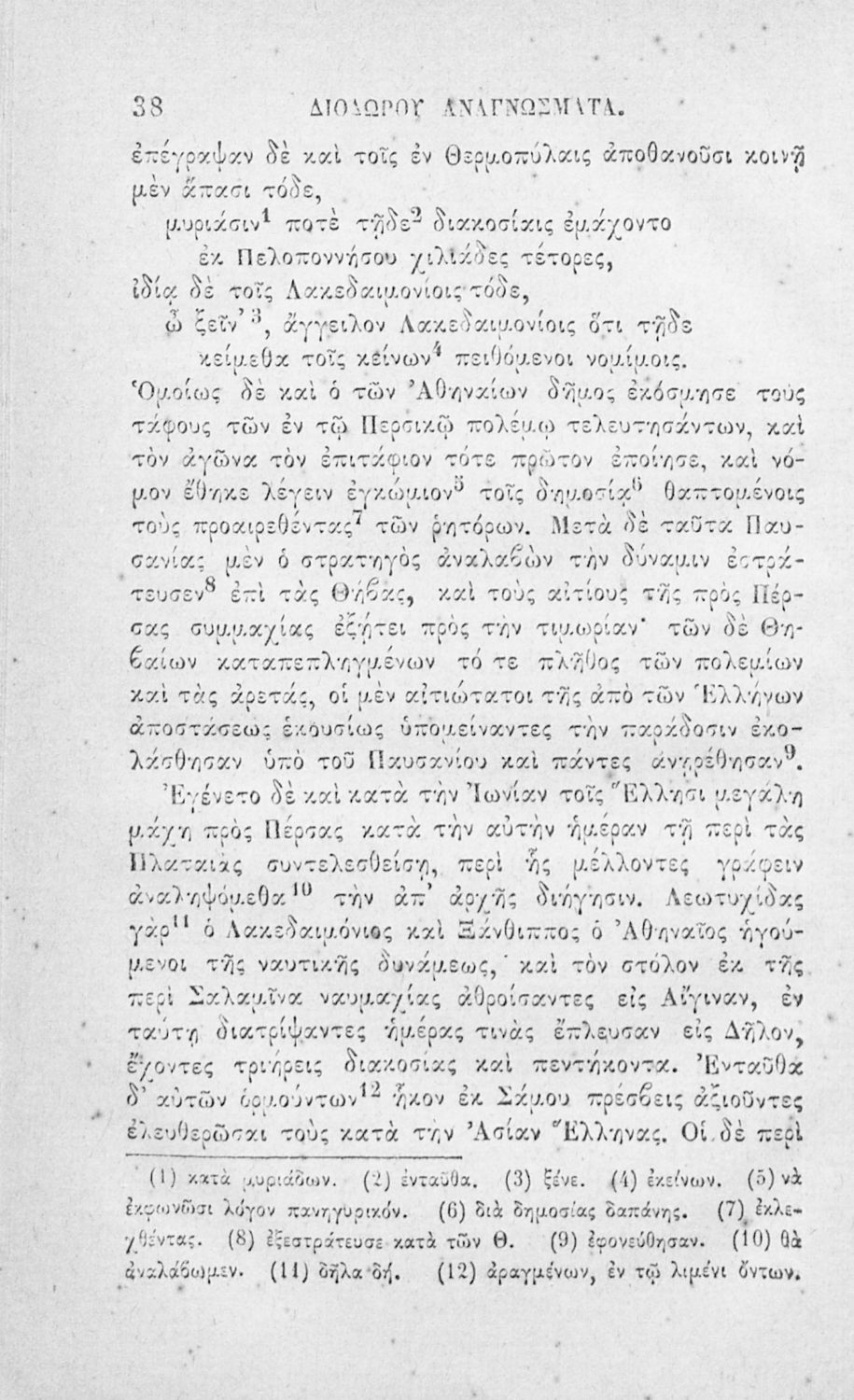 Αναγνώσματα εκ της Διοδώρου του Σικελιώτου βιβλιοθήκης ιστορικής κατά το πρόγραμμα του Υπουργείου των Εκκλησιαστικών και της Δημοσίας Εκπαιδεύσεως μετά ερμηνευτικών σημειώσεων τεύχος I