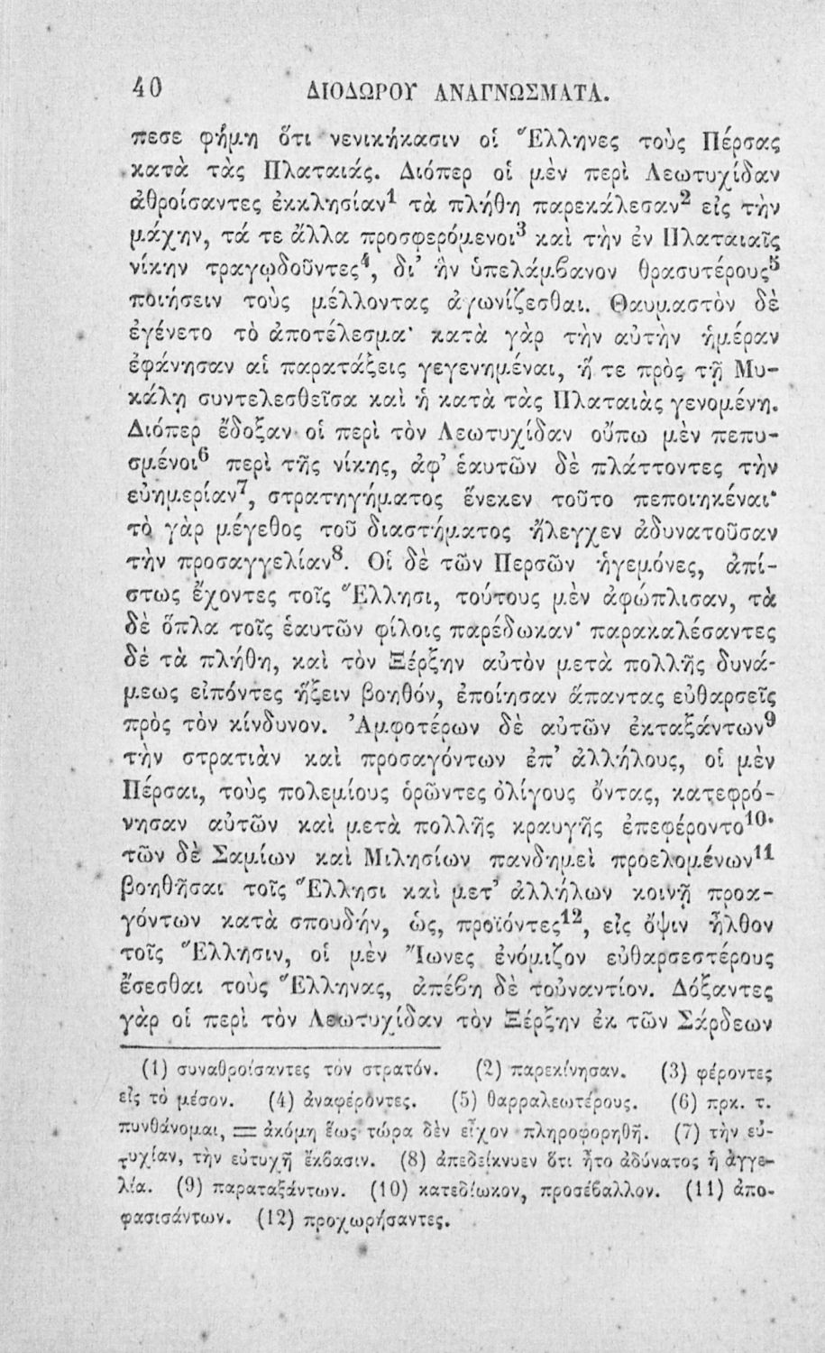 Παρουσίαση περιεχομένου: Σχολικό εγχειρίδιο Αρχαίων Ελληνικών που περιλαμβάνει αποσπάσματα από το έργο του Διόδωρου Σικελιώτη και ερμηνευτικά, λεξιλογικά και πραγματολογικά σχόλια.