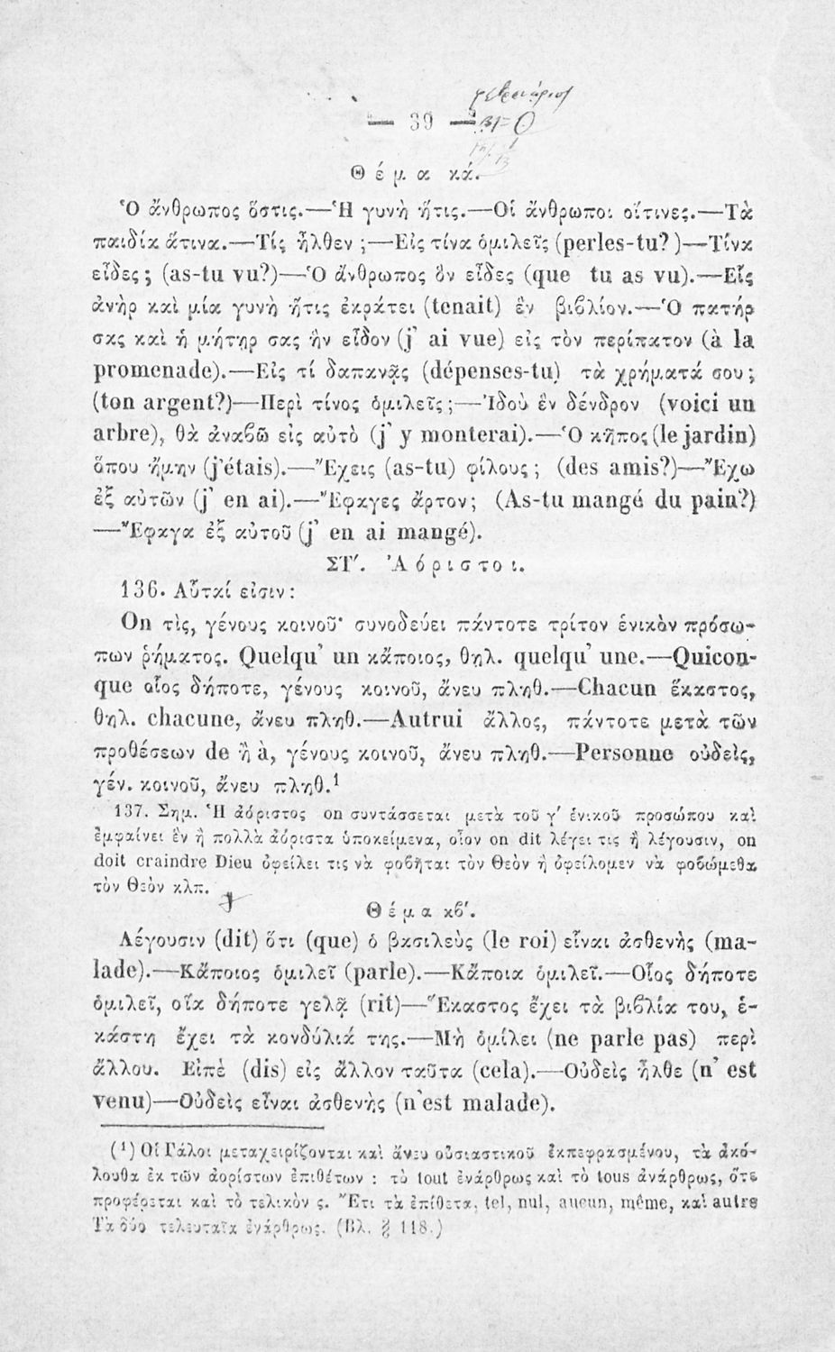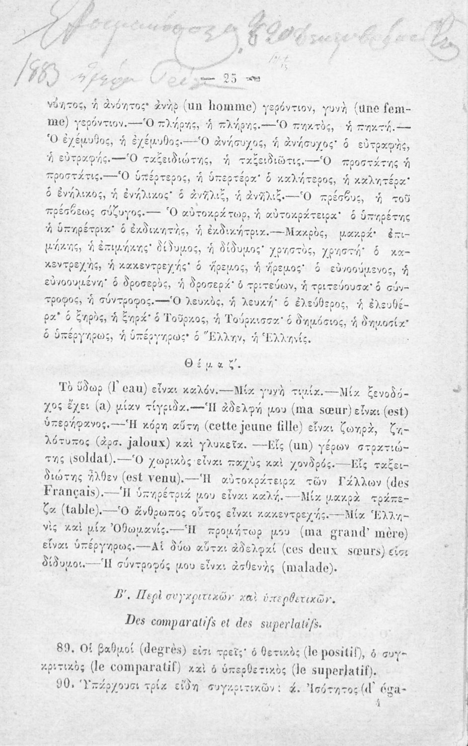 Στοιχειώδης γαλλική γραμματική θεωρητική και πρακτική, προς χρήσιν των Ελληνικών Σχολείων και των αρχαρίων, μετά θεμάτων και εκγυμνασμάτων