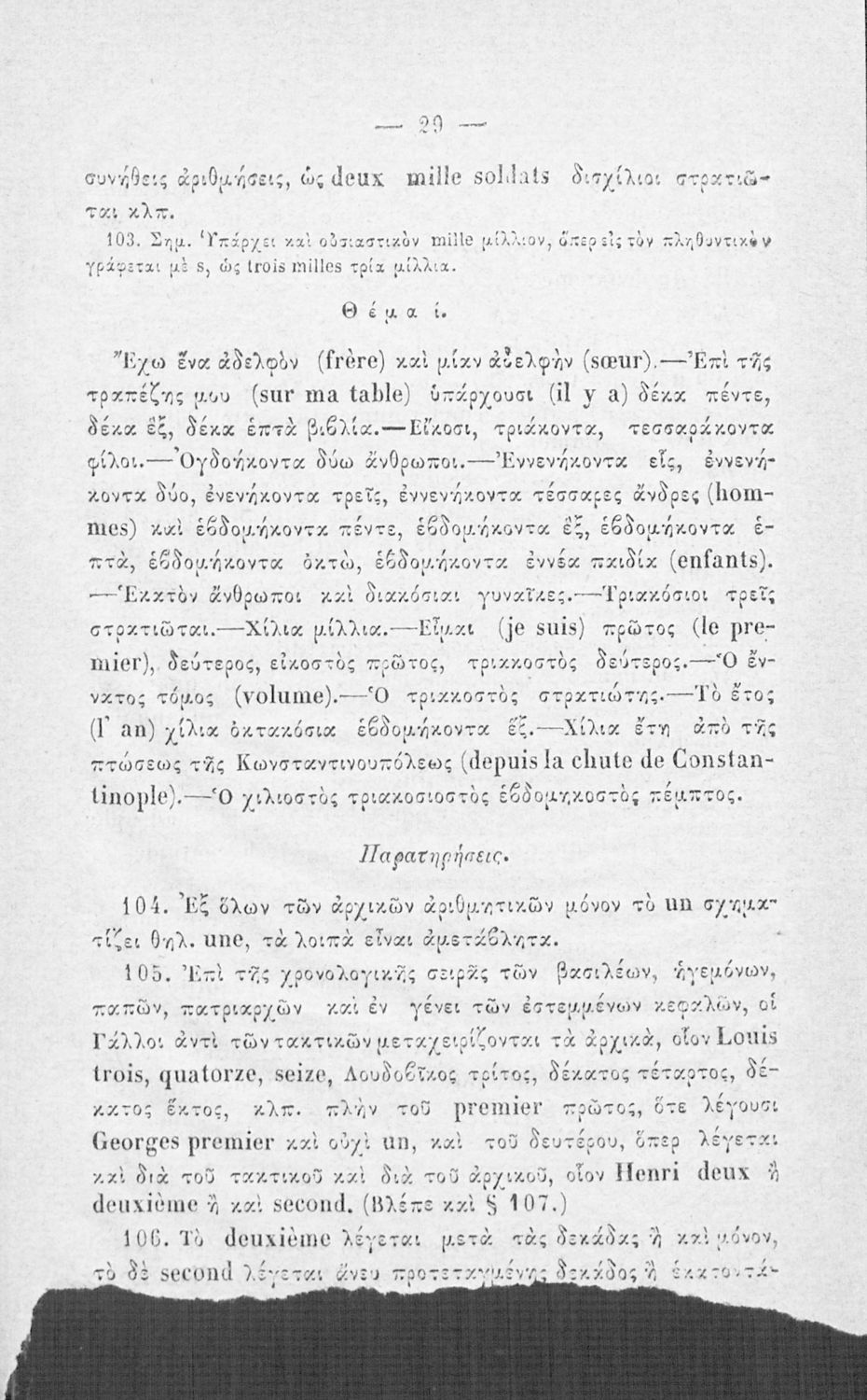 Σχολικό εγχειρίδιο για τα Ελληνικά Σχολεία και Παρθεναγωγεία περιλαμβάνει τους βασικούς κανόνες γραμματικής της γαλλικής γλώσσας.