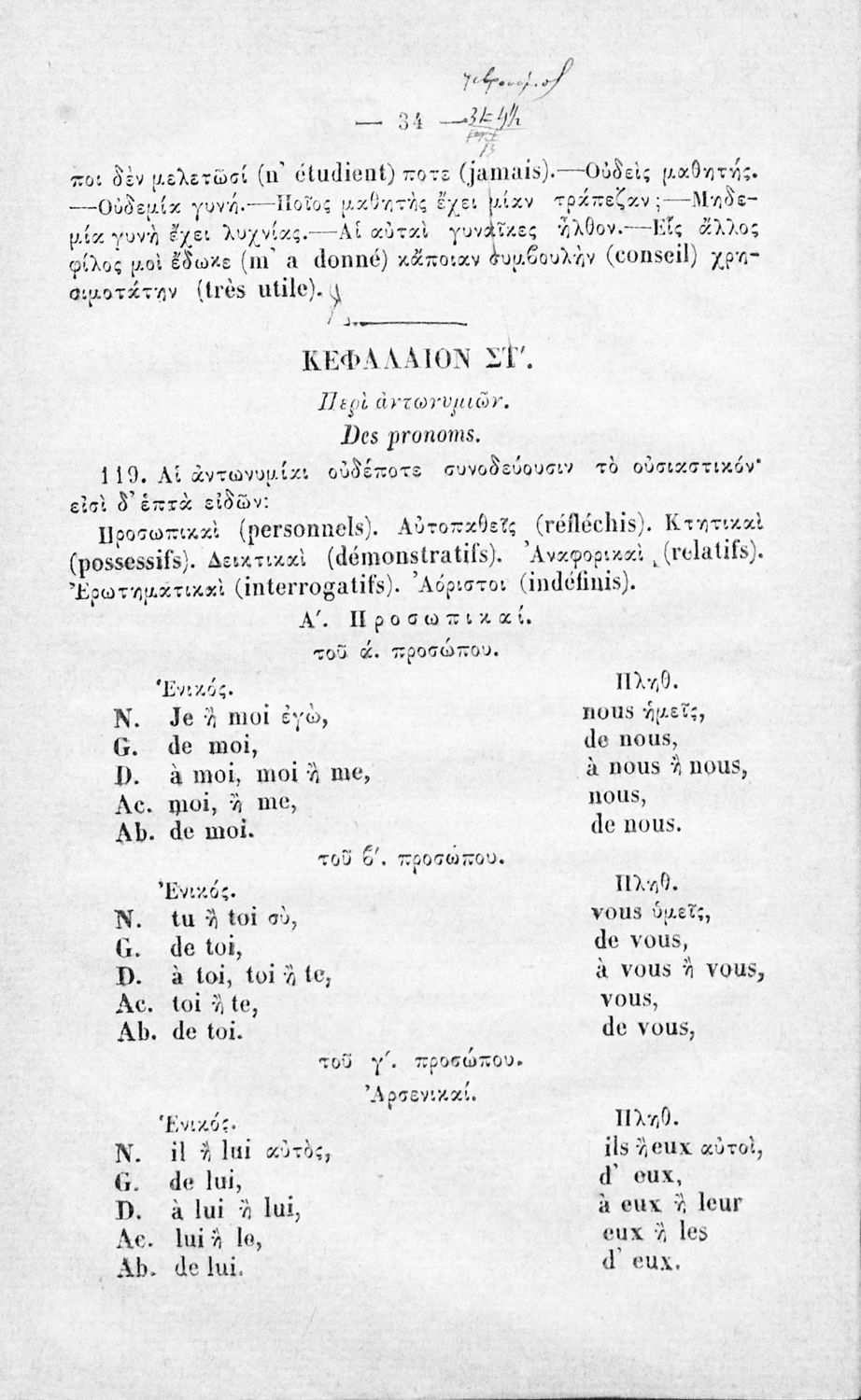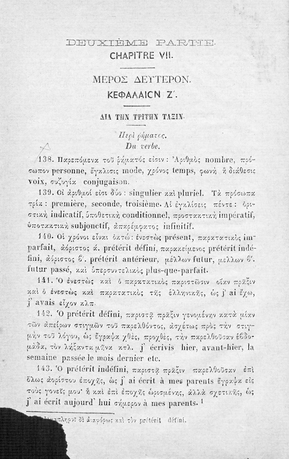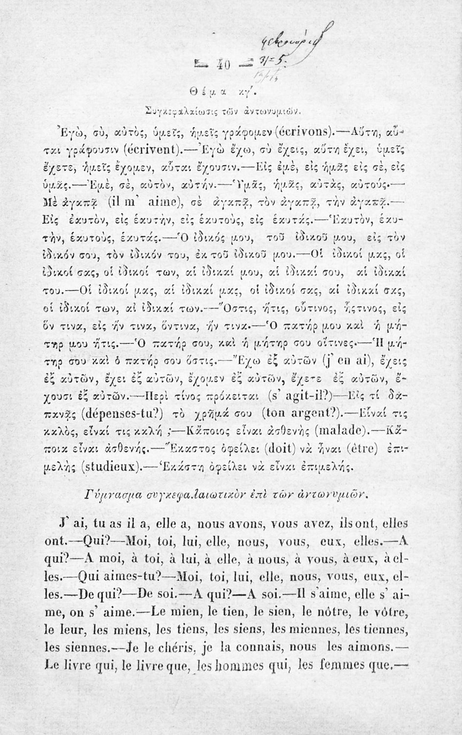 Τίτλος: Στοιχειώδης γαλλική γραμματική θεωρητική και πρακτική, προς χρήσιν των Ελληνικών Σχολείων και των αρχαρίων, μετά θεμάτων και εκγυμνασμάτων