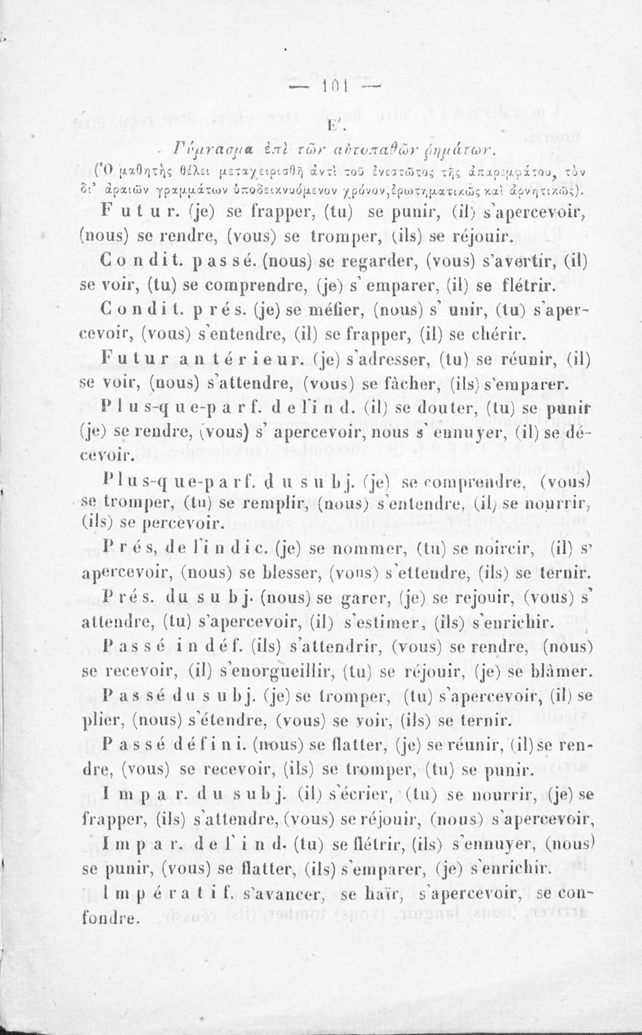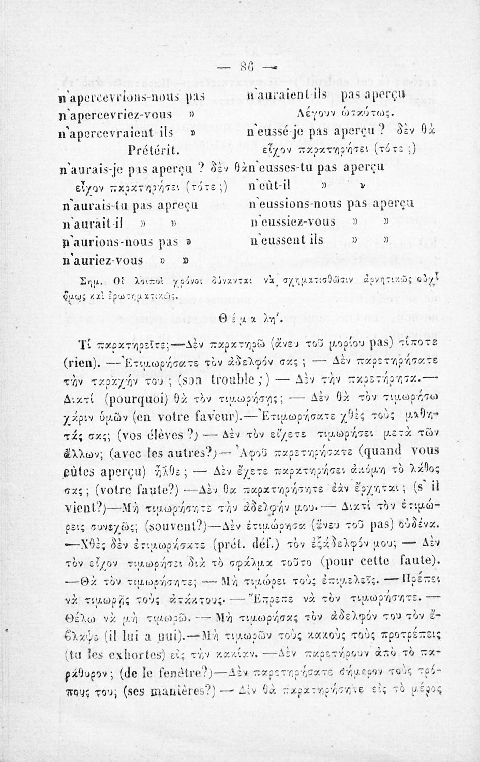Βαθμίδα εκπαίδευσης: Δευτεροβάθμια Τάξη: Ελληνικό Σχολείο Μάθημα: Γαλλικά Γλώσσα: Καθαρεύουσα Παρουσίαση περιεχομένου: Μαθητικό βοήθημα Γαλλικών των Ελληνικών Σχολείων ενισχυτικό της διδασκαλίας και κατανόησης του μαθήματος και συγκεκριμένα των γραμματικών κανόνων, θεωρητικών και πρακτικών, της Γαλλικής γλώσσας. |