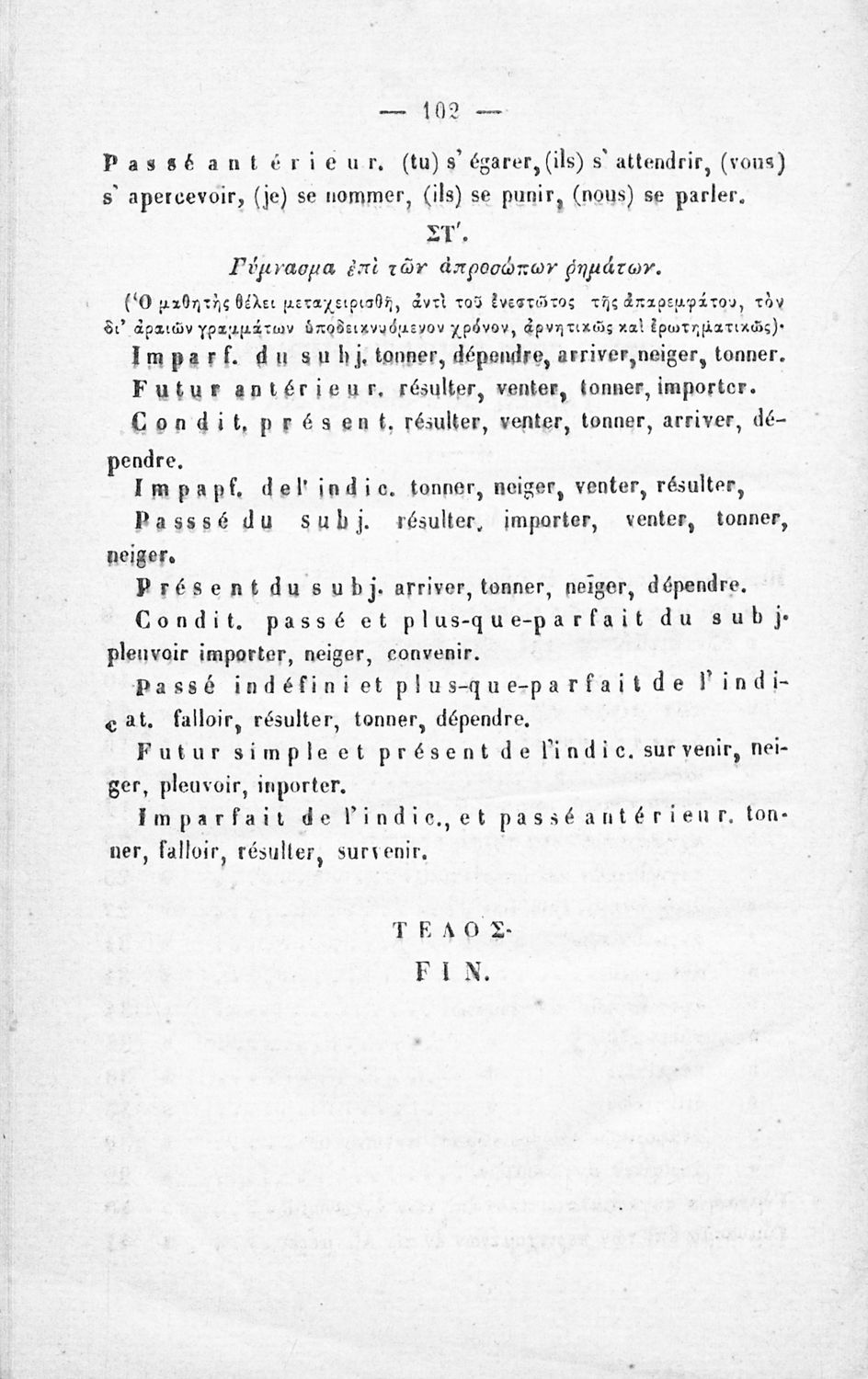 Κωδικός αναγνώρισης: 02-02677 Τίτλος: Στοιχειώδης γαλλική γραμματική θεωρητική και πρακτική, προς χρήσιν των Ελληνικών Σχολείων και των αρχαρίων, μετά θεμάτων και εκγυμνασμάτων Συγγραφέας: Γεώργιος Μ. Ζαδές Μέγεθος και υπόστρωμα: Σχολικό εγχειρίδιο, μαλακό εξώφυλλο, 106 σελίδες. |