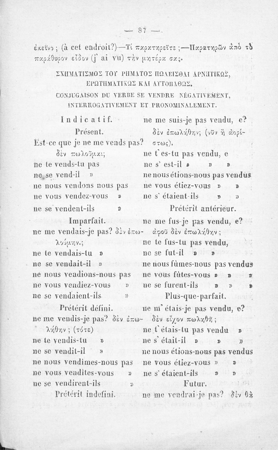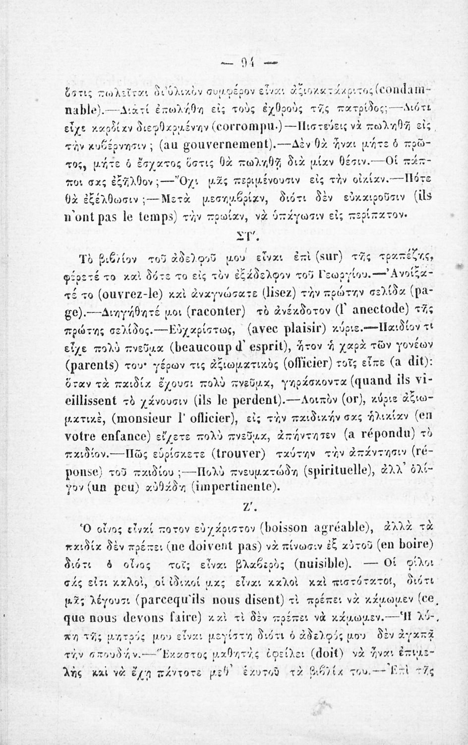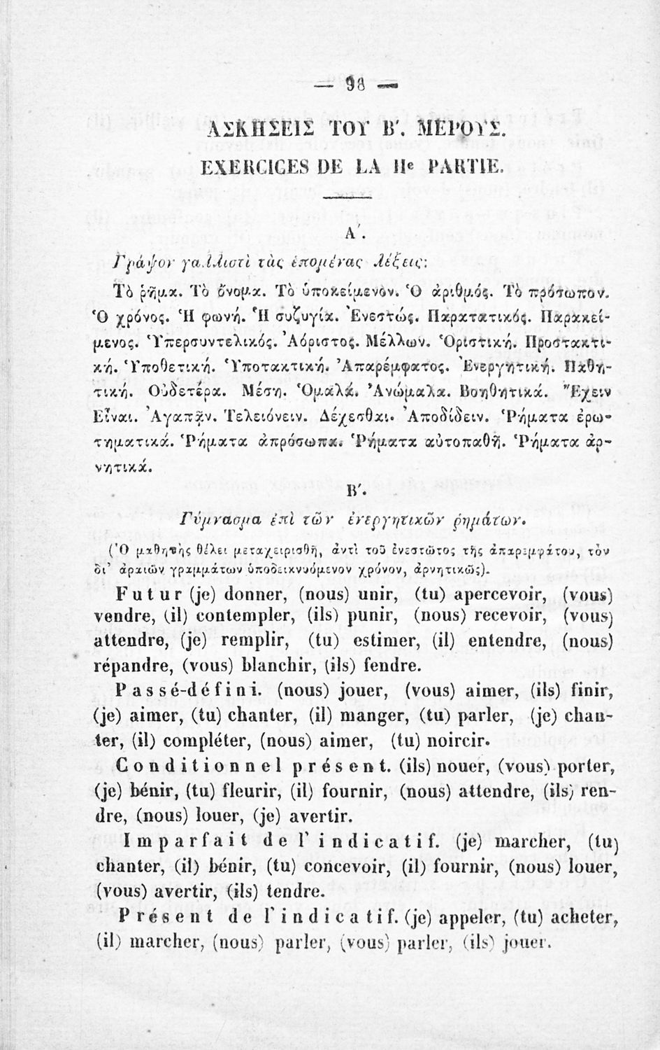 LDR 01269 2200217 4500 035 ## _a02-02677 040 ## _aΕλληνικό Λογοτεχνικό και Ιστορικό Αρχείο 041 ## _ael 100 ## _aΓεώργιος Μ. Ζαδές 110 ## _a1881.664 245 0# _aΣτοιχειώδης γαλλική γραμματική θεωρητική και πρακτική, προς χρήσιν των Ελληνικών Σχολείων και των αρχαρίων, μετά θεμάτων και εκγυμνασμάτων 250 ## _a7η Έκδοση 260 ## _aΠάτρα _bΒ. Σεκόπουλος _c1881 300 ## _a106 520 ## _aΜαθητικό βοήθημα Γαλλικών των Ελληνικών Σχολείων ενισχυτικό της διδασκαλίας και κατανόησης του μαθήματος και συγκεκριμένα των γραμματικών κανόνων, θεωρητικών και πρακτικών, της Γαλλικής γλώσσας. 521 ## _aΕλληνικό Σχολείο 522 ## _aΕλλάδα 546 ## _aΚαθαρεύουσα 563 ## _aΜαλακό Εξώφυλλο 583 ## _a4309/ 650 #4 _aΓράμματα _aΛέξεις _aΠροφορά _aΡήματα