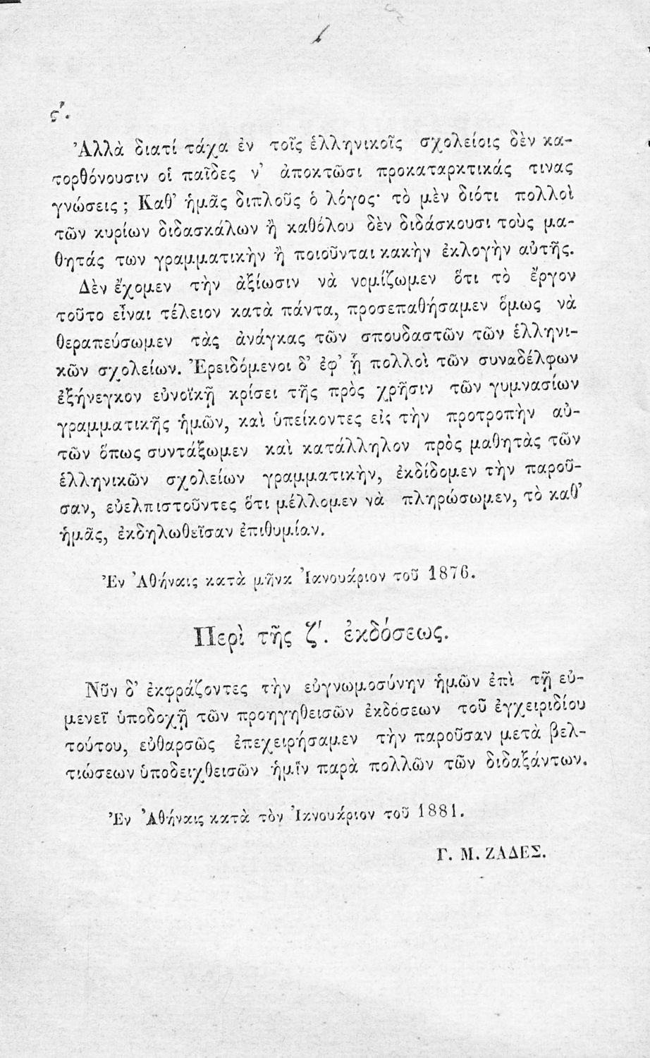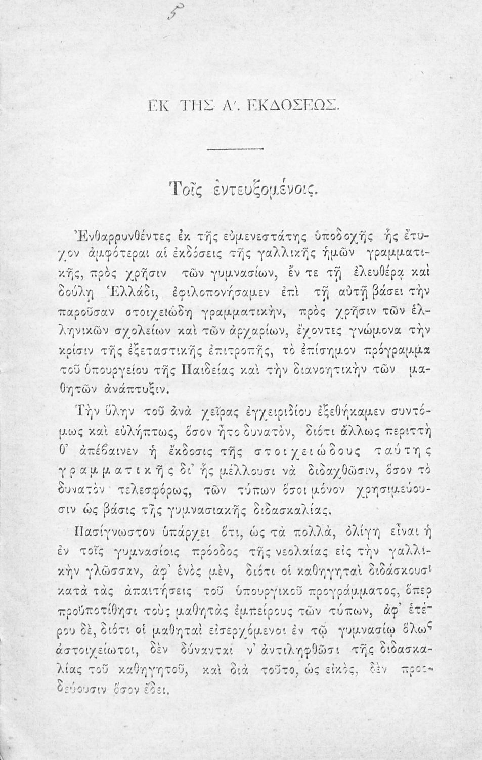 Τίτλος: Στοιχειώδης γαλλική γραμματική θεωρητική και πρακτική, προς χρήσιν των Ελληνικών Σχολείων και των αρχαρίων, μετά θεμάτων και εκγυμνασμάτων