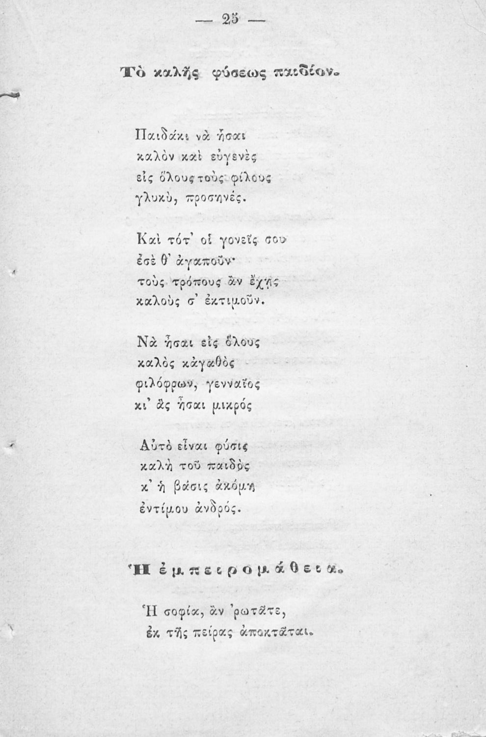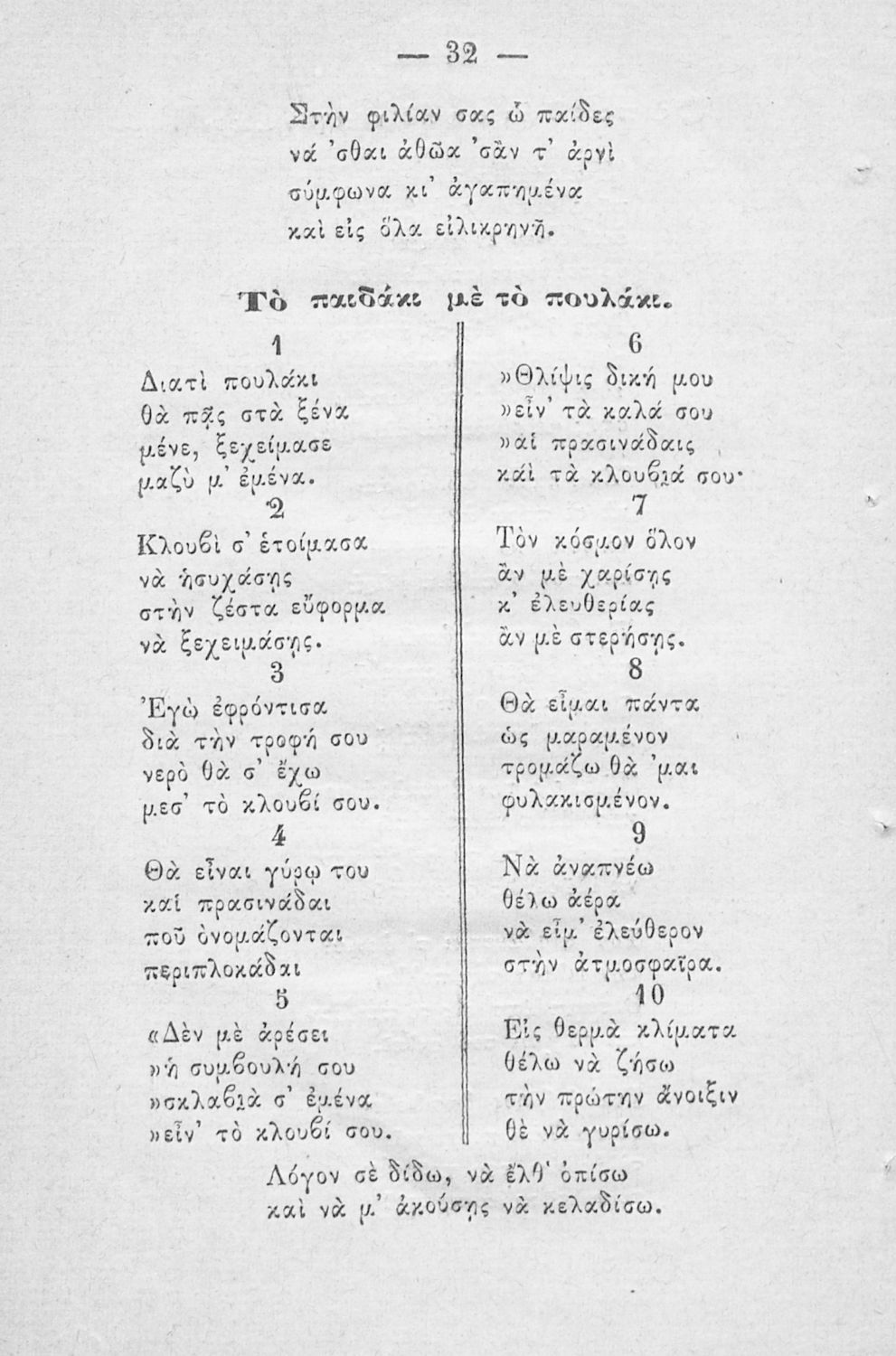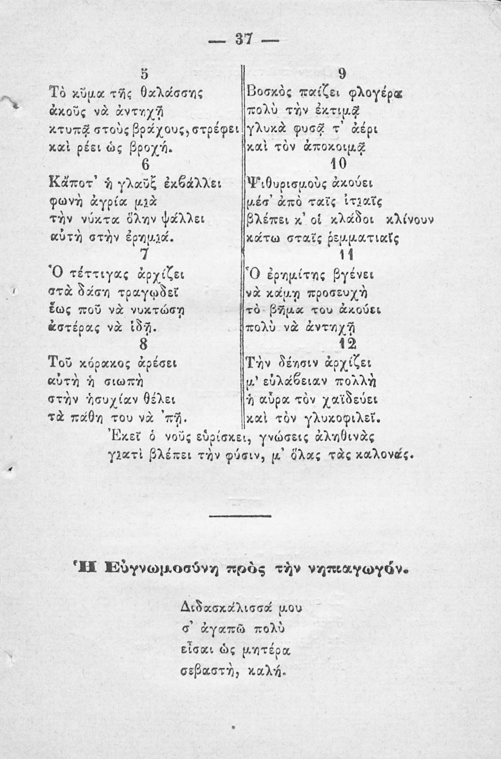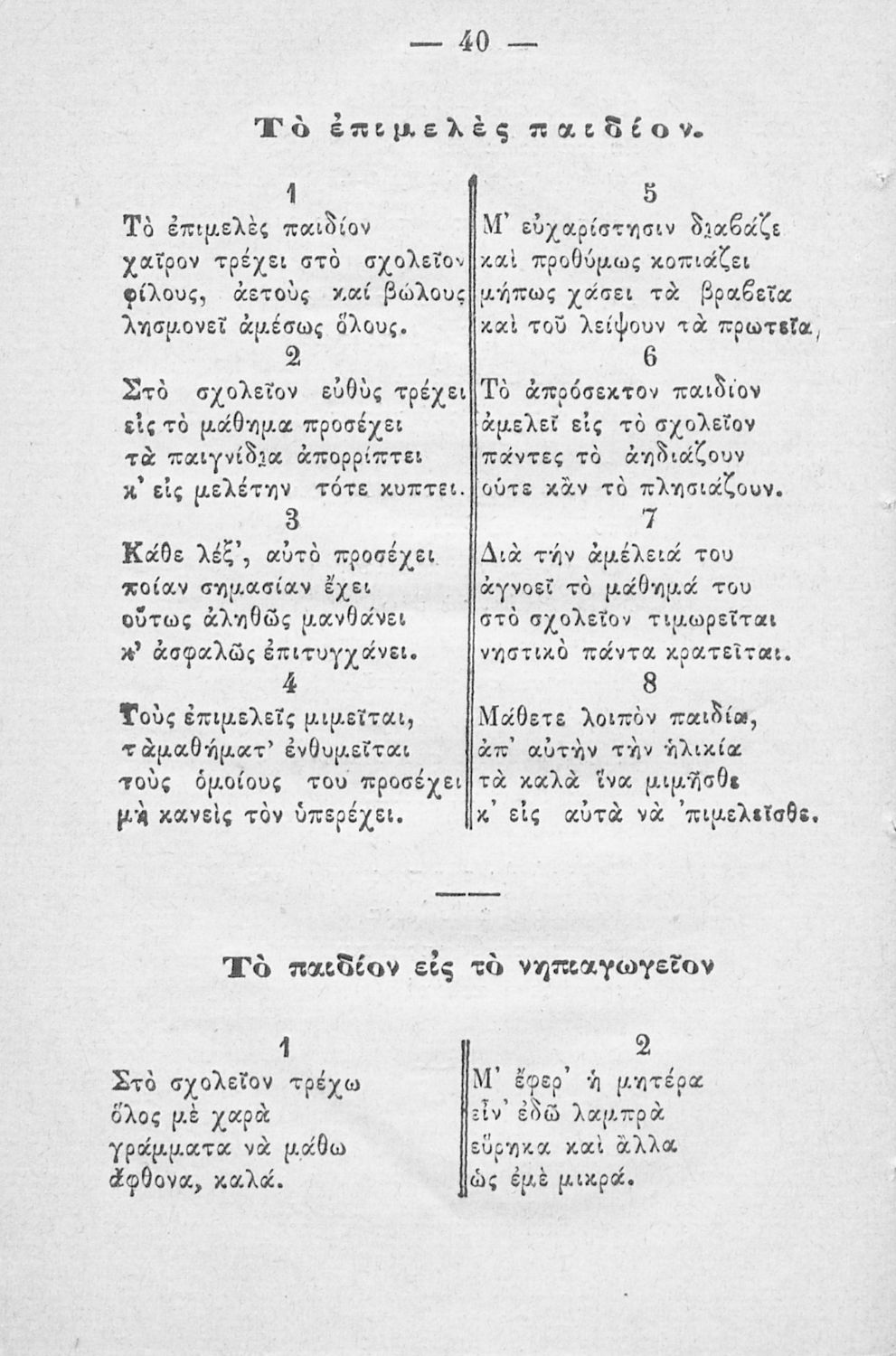 Παιδαγωγικά στιχουργήματα, εκδοθέντα προς χρήσιν των Νηπιαγωγείων και των Δημοτικών σχολείων