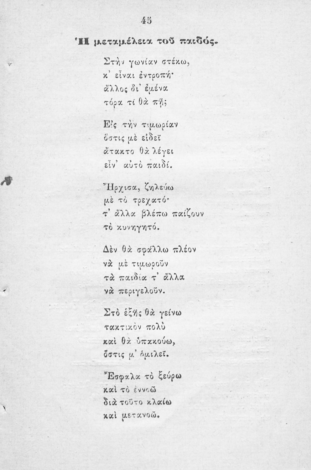 Αναγνωστικό για τους μαθητές του Δημοτικού και Νηπιαγωγείου το οποίο περιλαμβάνει σειρά παιδικών ποιημάτων εμπνευσμένα από τον οικογενειακό και κοινωνικό βίο.