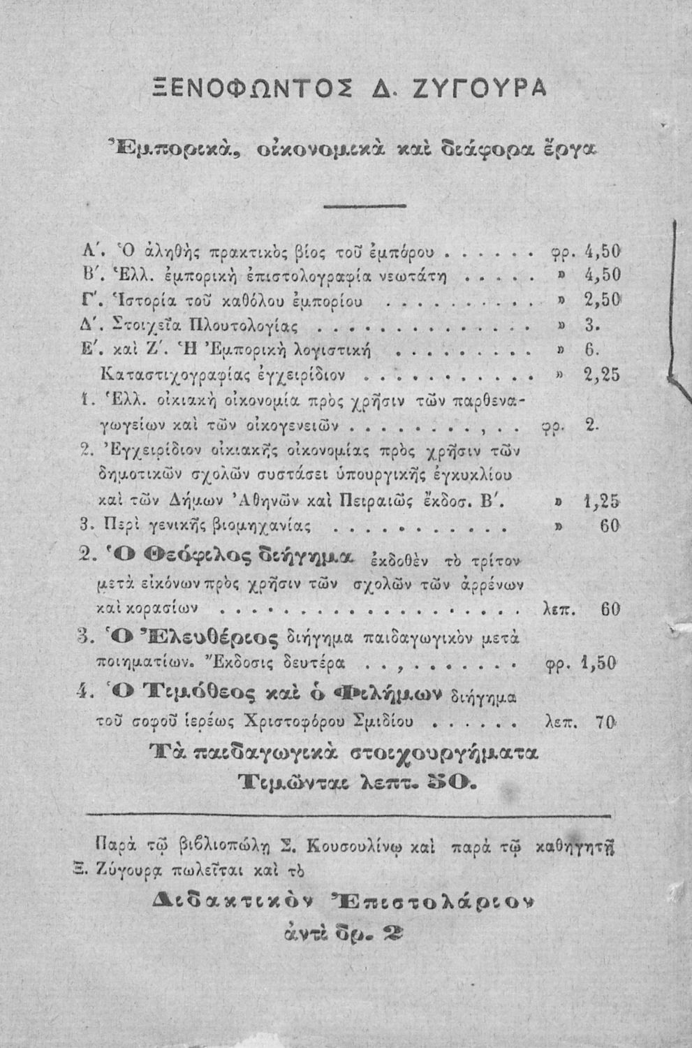 Εκδότης: Τυπογραφείο “Αυγή” Έτος έκδοσης: 1881 Τόπος έκδοσης: Αθήνα Έκδοση: 2η |