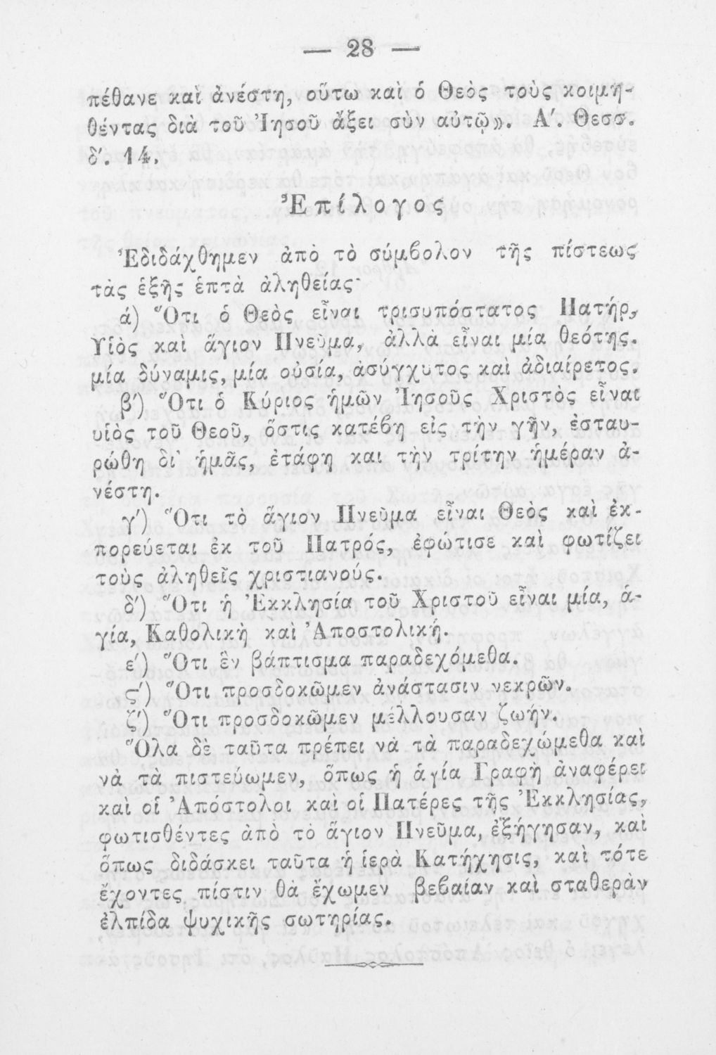 Σχολικό εγχειρίδιο Θρησκευτικών για τα Ελληνικά Σχολεία και Παρθεναγωγεία που περιλαμβάνει εισαγωγή στην Παλαιά και Καινή Διαθήκη και πραγματεύεται δογματικά και ηθικά ζητήματα της ορθόδοξης κατήχησης. Είχε ...